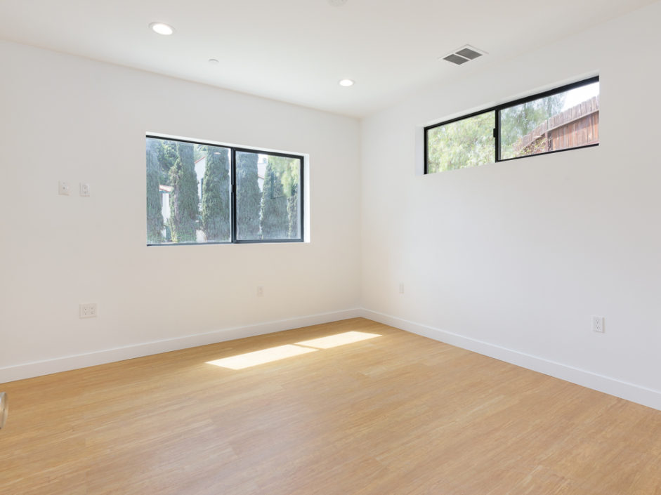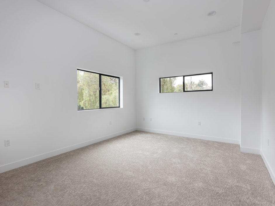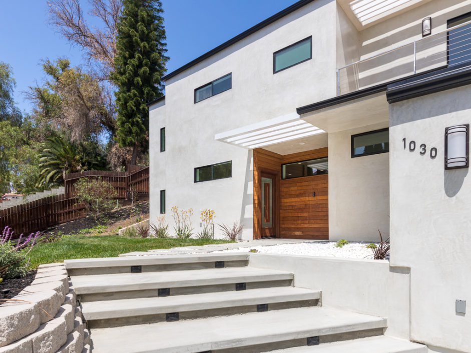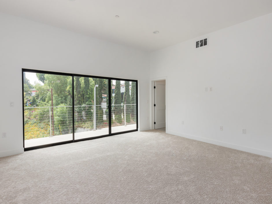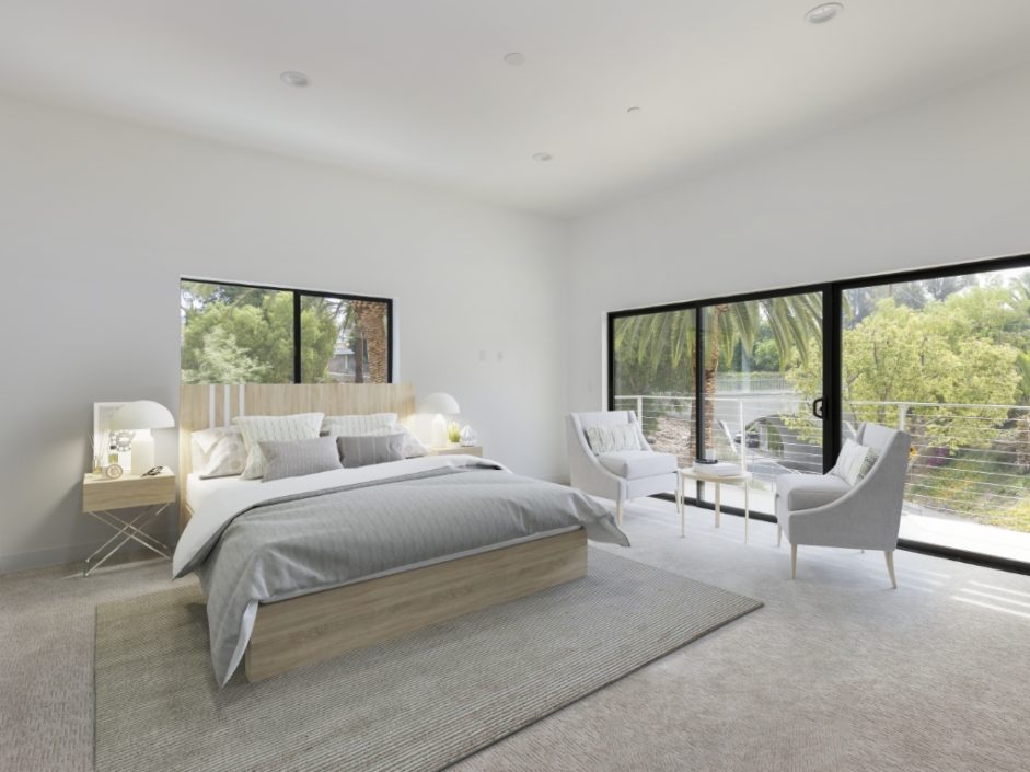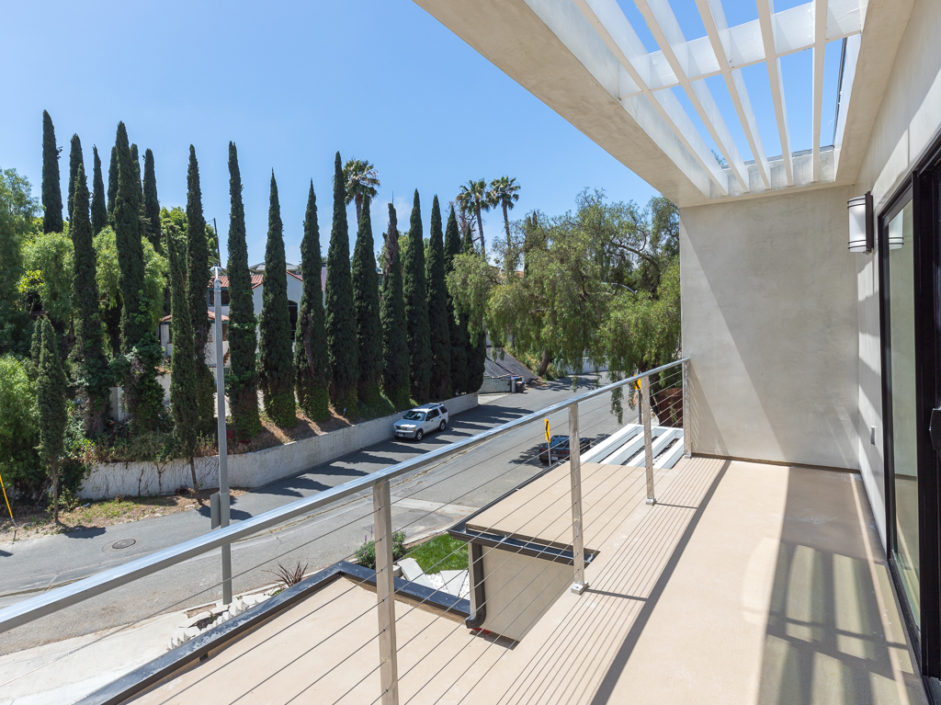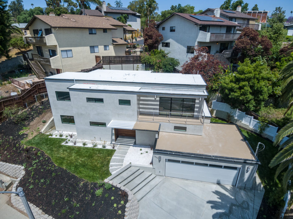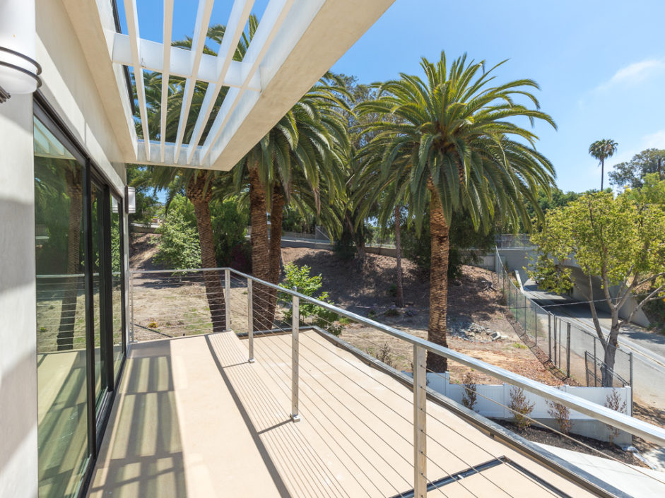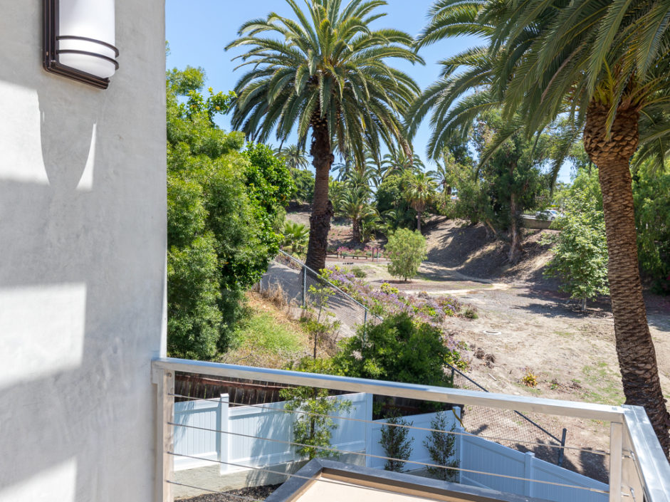 Modern new construction designed by Vitus Matare & Associates. The 3000 sq. ft. home boasts Tony Stark-level appointments, 10 foot high ceilings, open floor concept with minimal distractions and clean lines thru-out. Custom Teak wood embraces the front entrance and its massive front door sets the tone. The flexible floor plan enjoys an entry level bedroom and full bath. The culinary kitchen is anchored by a Caesarstone Island with additional seating, soft touch cabinets and drawers, subway tiled backsplash, stainless steel appliances and wireless remote ventilation system. Barn door pantry and dutch door access to the exterior complete the experience. Stainless railings transition to the upstairs gallery which doubles as a family room with TV and Cat5 inputs ready for usage. The grand master suite is huge with spa infused bath with separate soaking tub and shower with dual shower heads. The suite opens to a private balcony with expansive views of the natural open grounds adjacent to the property. Additional bedrooms are spacious and are prewired for TV and internet. Separate laundry room and storage is also conveniently located in the upstairs bedroom wing. The home also enjoys A/C, 2 car plus sized garage with Bluetooth side mounted access opener, Ring doorbell, grassy rear yard and patio. The private, quite location surrounded by mature palm trees creates the ultimate modern masterpiece.
