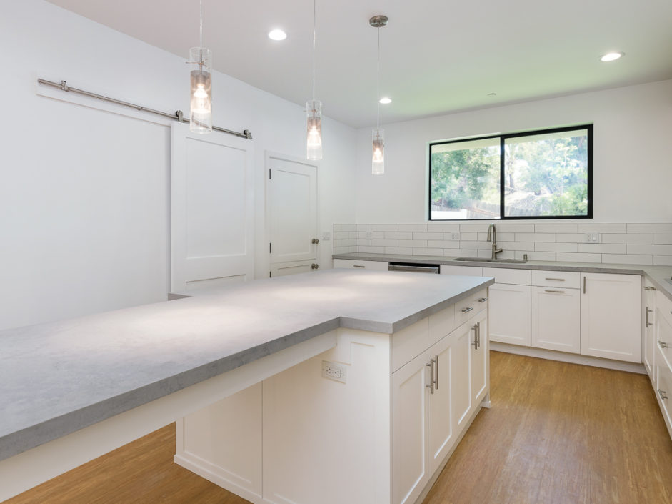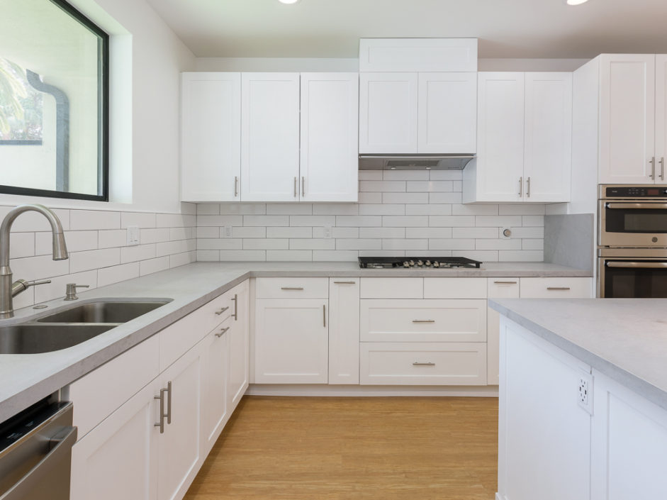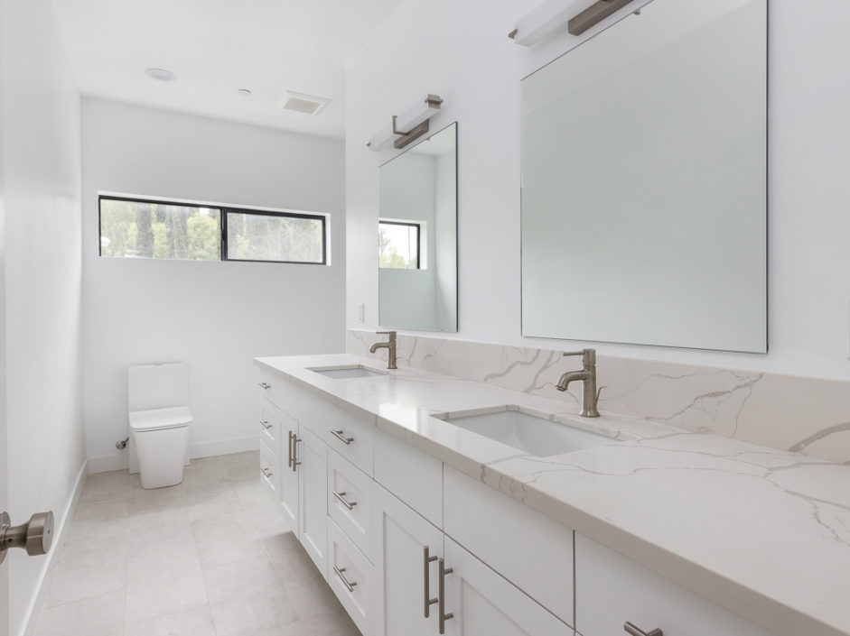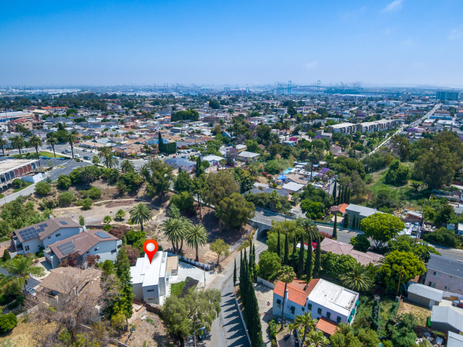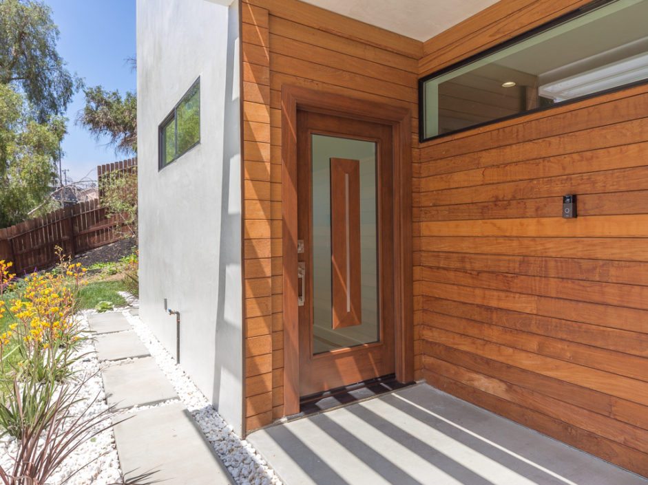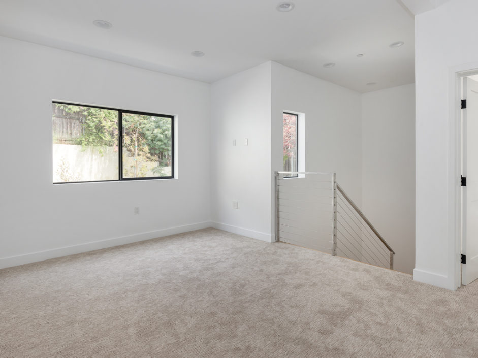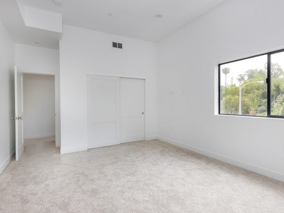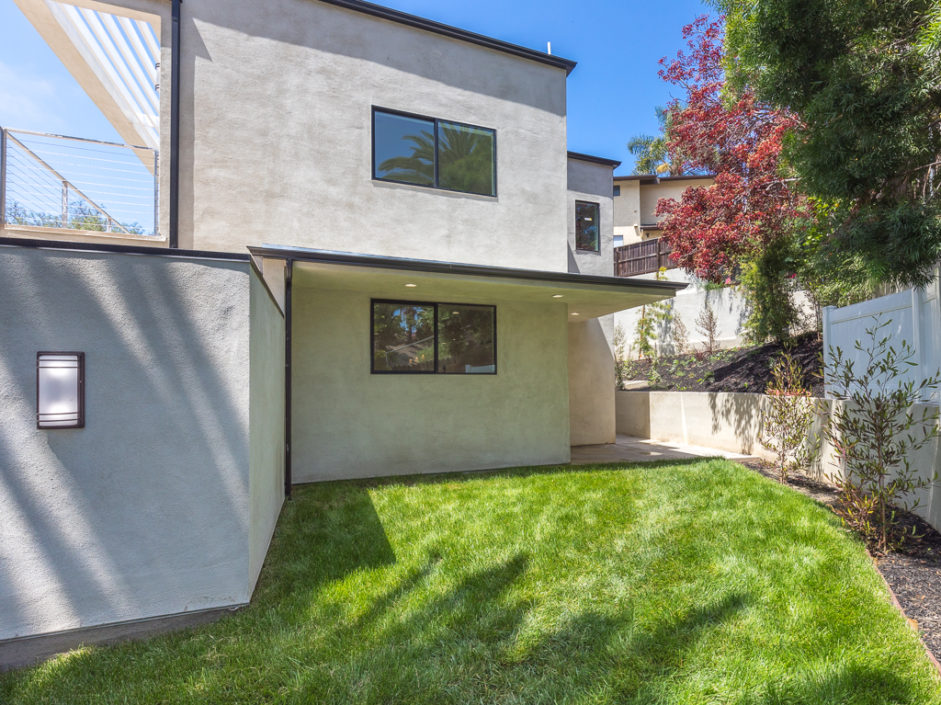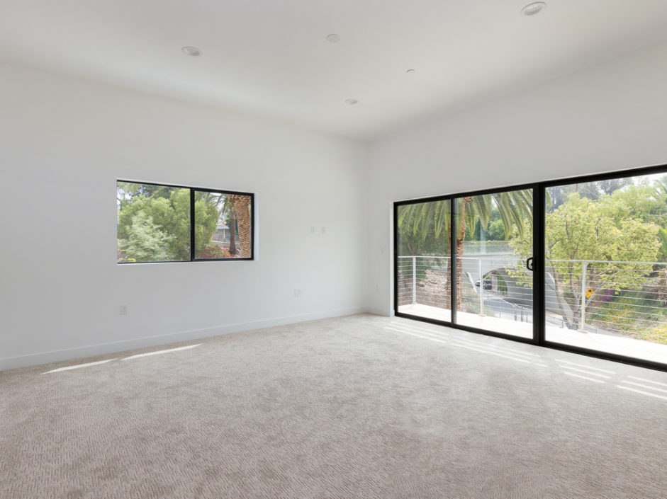 Modern new construction designed by Vitus Matare & Associates. The 3000 sq. ft. home boasts Tony Stark-level appointments, 10 foot high ceilings, open floor concept with minimal distractions and clean lines thru-out. Custom Teak wood embraces the front entrance and its massive front door sets the tone. The flexible floor plan enjoys an entry level bedroom and full bath. The culinary kitchen is anchored by a Caesarstone Island with additional seating, soft touch cabinets and drawers, subway tiled backsplash, stainless steel appliances and wireless remote ventilation system. Barn door pantry and dutch door access to the exterior complete the experience. Stainless railings transition to the upstairs gallery which doubles as a family room with TV and Cat5 inputs ready for usage. The grand master suite is huge with spa infused bath with separate soaking tub and shower with dual shower heads. The suite opens to a private balcony with expansive views of the natural open grounds adjacent to the property. Additional bedrooms are spacious and are prewired for TV and internet. Separate laundry room and storage is also conveniently located in the upstairs bedroom wing. The home also enjoys A/C, 2 car plus sized garage with Bluetooth side mounted access opener, Ring doorbell, grassy rear yard and patio. The private, quite location surrounded by mature palm trees creates the ultimate modern masterpiece.