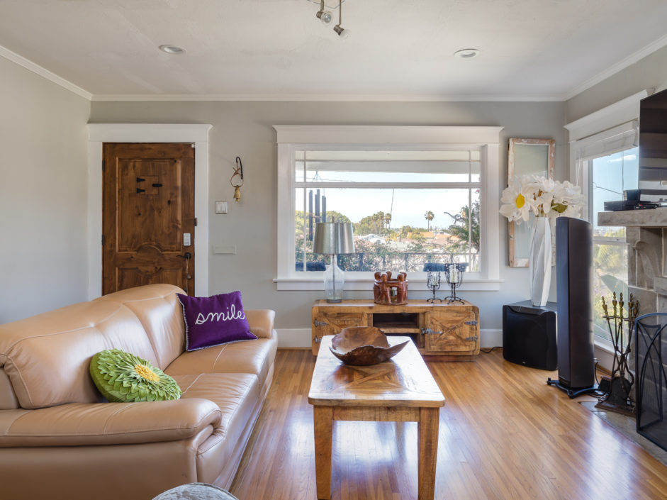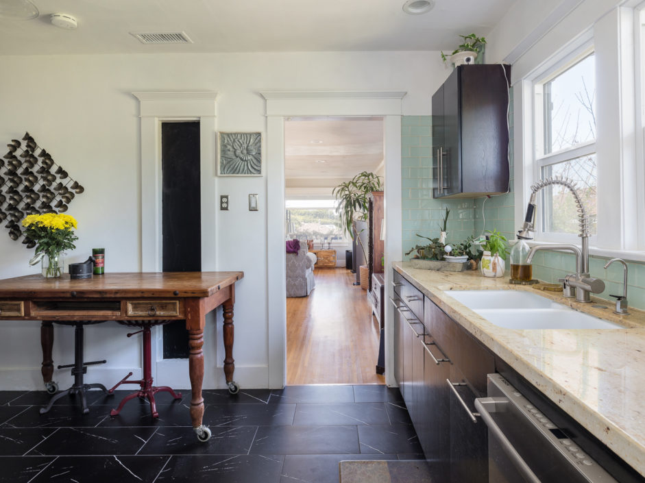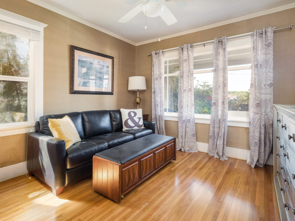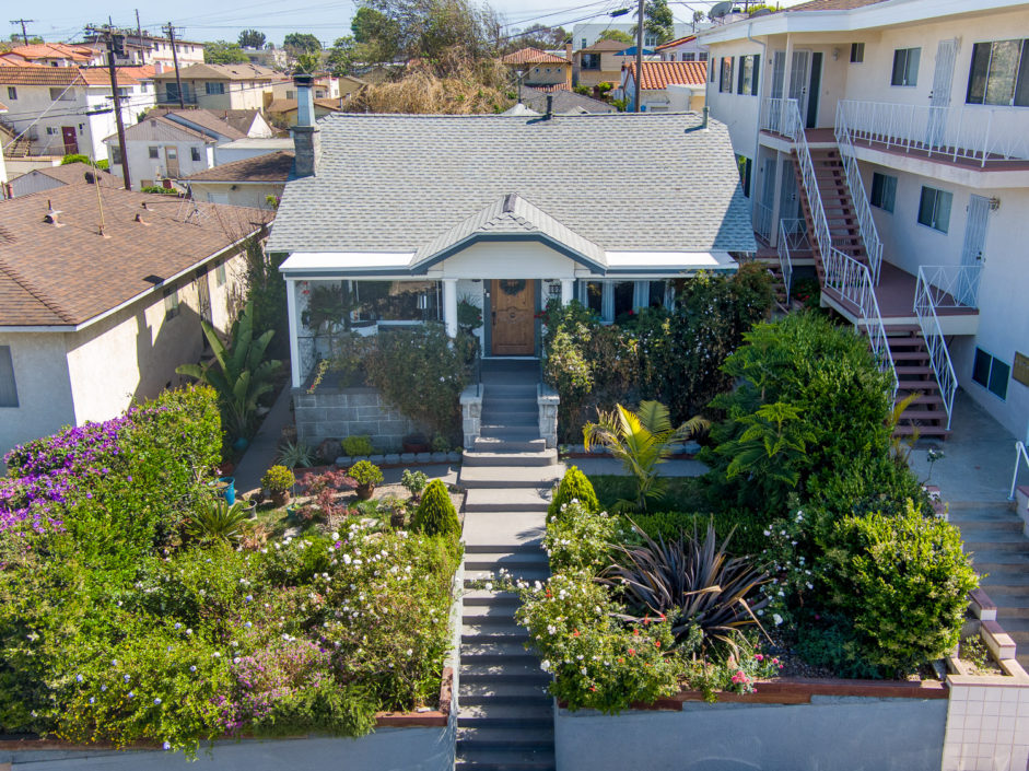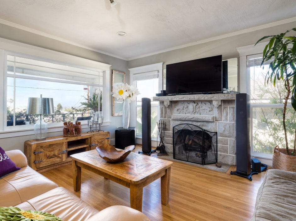 Classic 1923 Craftsman bungalow with a large stone porch and a view of the bridges, harbor and city lights. As you enter through the oversized front door you are greeted with beautiful hardwood floors, a gorgeous original fireplace that is updated for gas and wood, large picture window boasting a great view of the bridges and back harbor. All windows have been upgraded in the house except the 2 large original picture windows maintaining the classic look. The dining room is spacious and functional as well as period with the original built in china hutch. The gourmet kitchen has just been upgraded with striking cabinets engulfed in stone counters and subway tile back splash creating the ultimate first impression. Industrial range, matching stainless hood, and Bosch dishwasher finish off this culinary delight. Laundry room with full bath bathroom with soaking tub and separate sink and storage cabinets. The main bathroom is upgraded with oversized glass double sized shower and rain shower fixtures plus an original built in vanity. A new roof was installed a couple of years ago and they just put in a new forced heating system. The backyard is private and secluded with orange, lemon, grapefruit trees. A very comfortable patio. There is a one car garage that is accessed from the alley and leads into your own yard and back door with no stairs. The front and backyard have timed sprinklers. The back yard is your private sanctuary with mature shade trees and fruit trees, orange, lemon, peach.