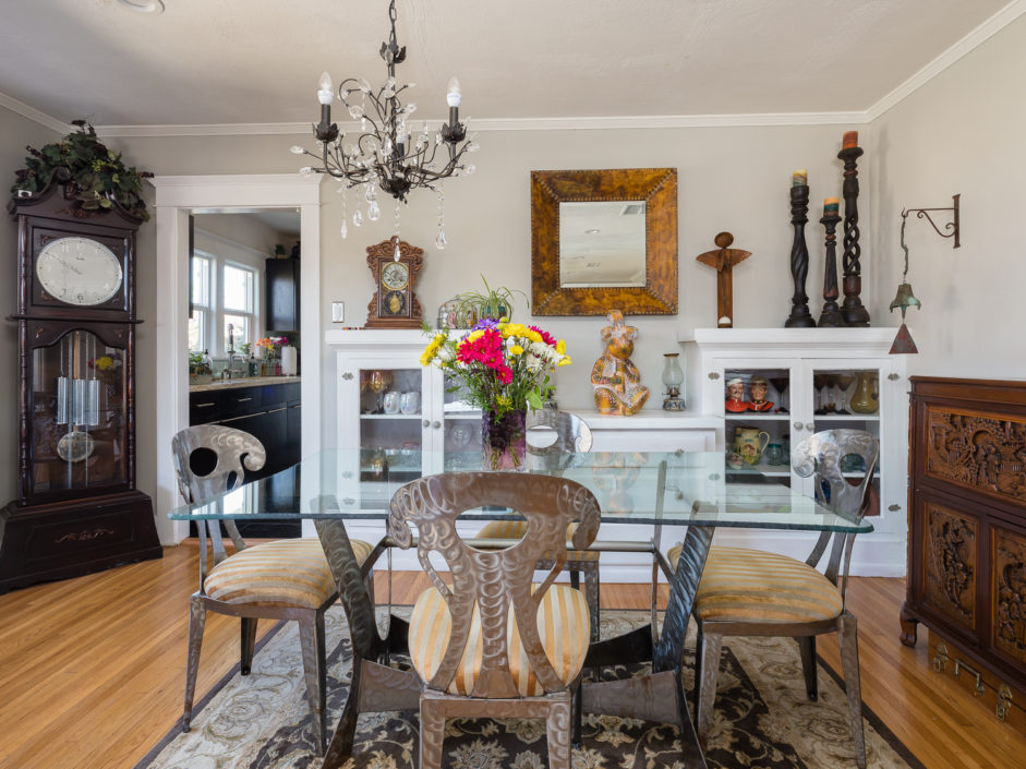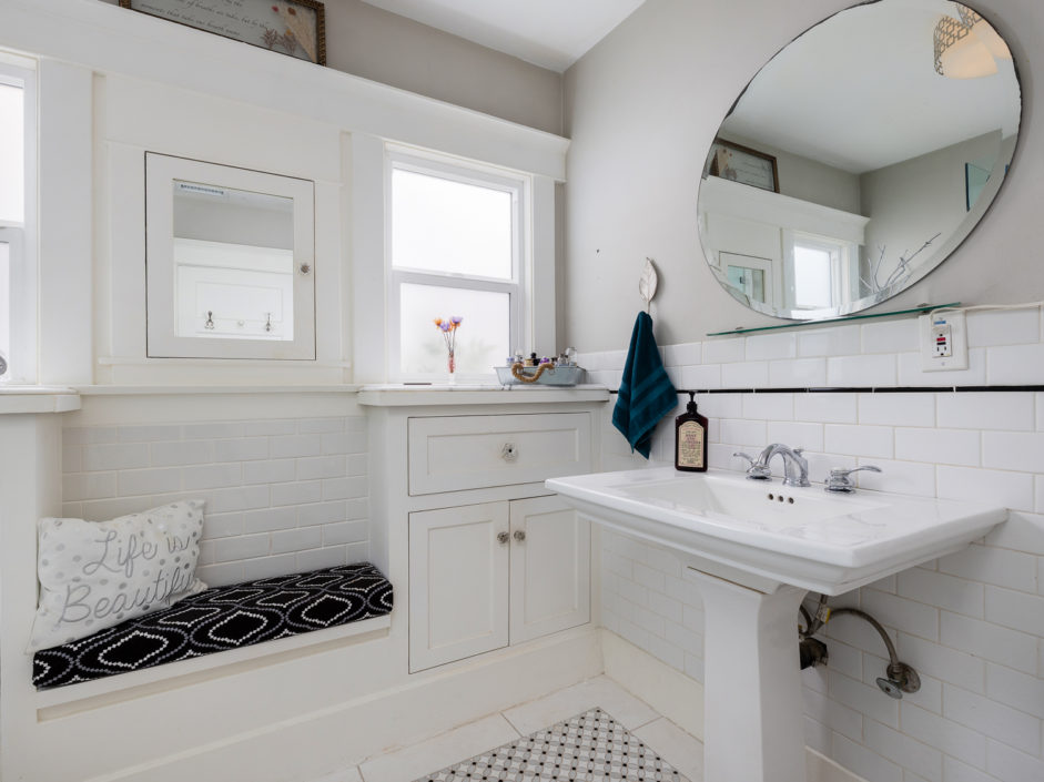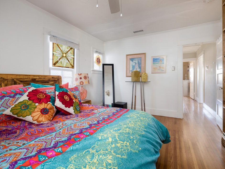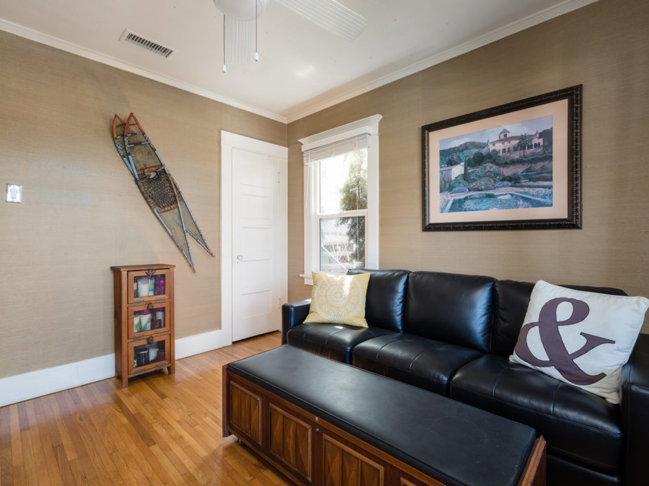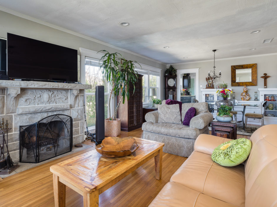 Classic 1923 Craftsman bungalow with a large stone porch and a view of the bridges, harbor and city lights. As you enter through the oversized front door you are greeted with beautiful hardwood floors, a gorgeous original fireplace that is updated for gas and wood, large picture window boasting a great view of the bridges and back harbor. All windows have been upgraded in the house except the 2 large original picture windows maintaining the classic look. The dining room is spacious and functional as well as period with the original built in china hutch. The gourmet kitchen has just been upgraded with striking cabinets engulfed in stone counters and subway tile back splash creating the ultimate first impression. Industrial range, matching stainless hood, and Bosch dishwasher finish off this culinary delight. Laundry room with full bath bathroom with soaking tub and separate sink and storage cabinets. The main bathroom is upgraded with oversized glass double sized shower and rain shower fixtures plus an original built in vanity. A new roof was installed a couple of years ago and they just put in a new forced heating system. The backyard is private and secluded with orange, lemon, grapefruit trees. A very comfortable patio. There is a one car garage that is accessed from the alley and leads into your own yard and back door with no stairs. The front and backyard have timed sprinklers. The back yard is your private sanctuary with mature shade trees and fruit trees, orange, lemon, peach.
