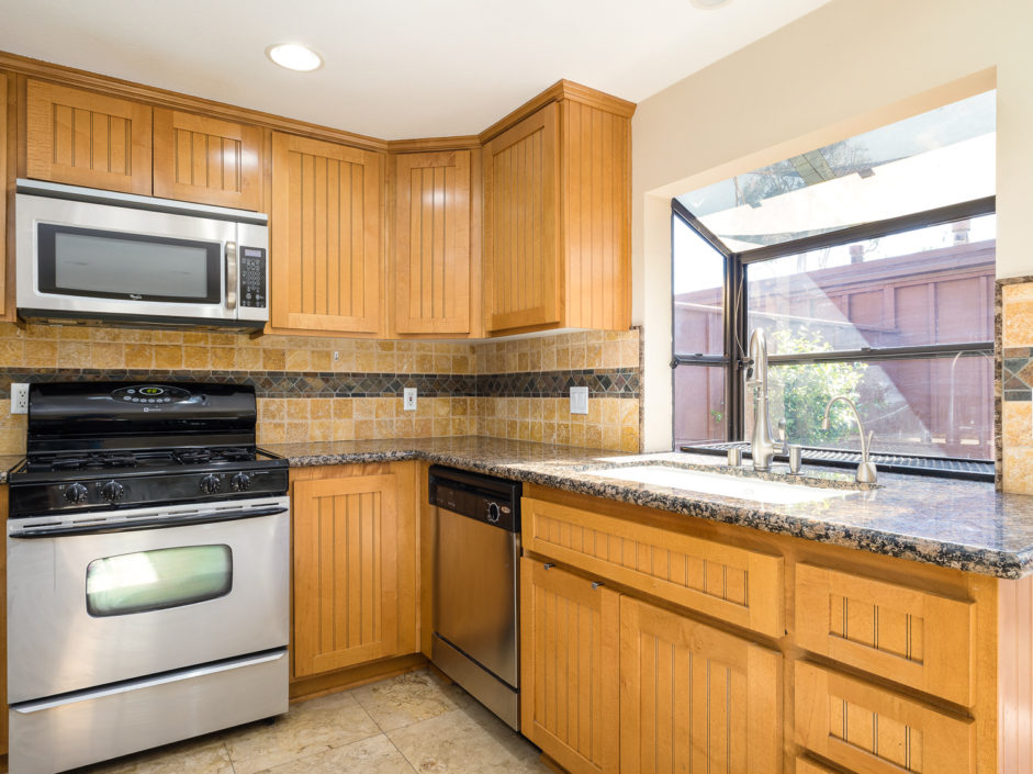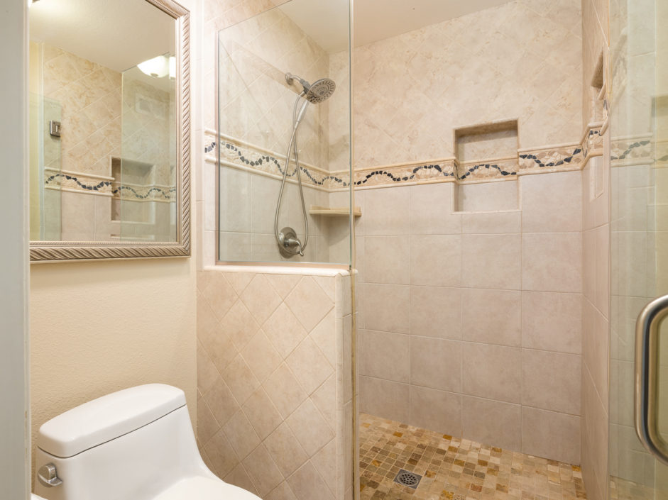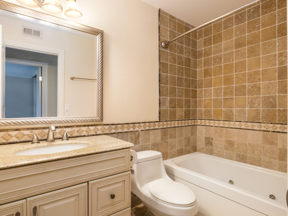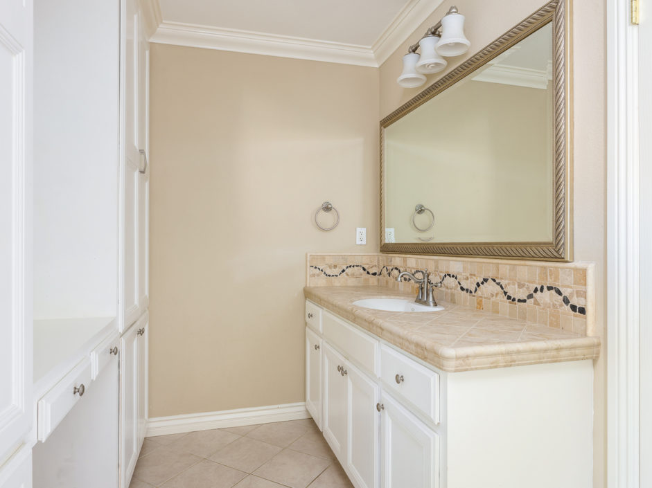 Wonderful home at The Gardens. Newer remodel with craftsman cabinets, tile floors, crown molding, newer windows with duel pane, A/C, and attention to detail throughout the entirety of the home. Brick laid backyard with astroturf for ease of upkeep and walk way towards the two car garage. The property is facing down a corridor pathway that breathes in tremendous natural light and depth of views that the manicured grounds offer.