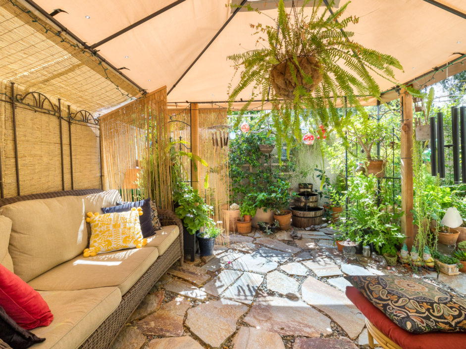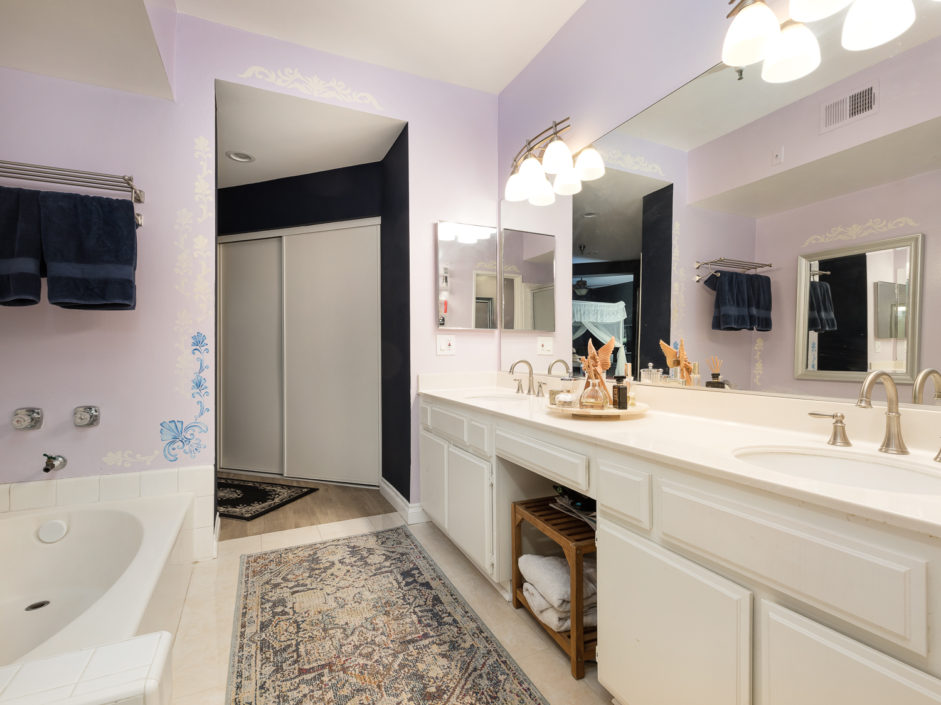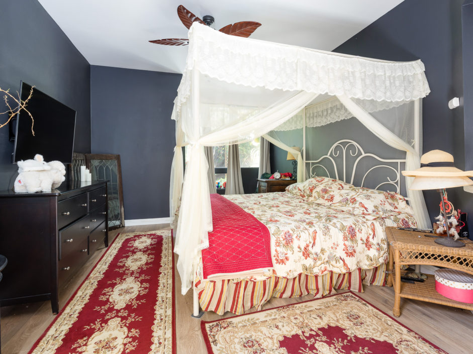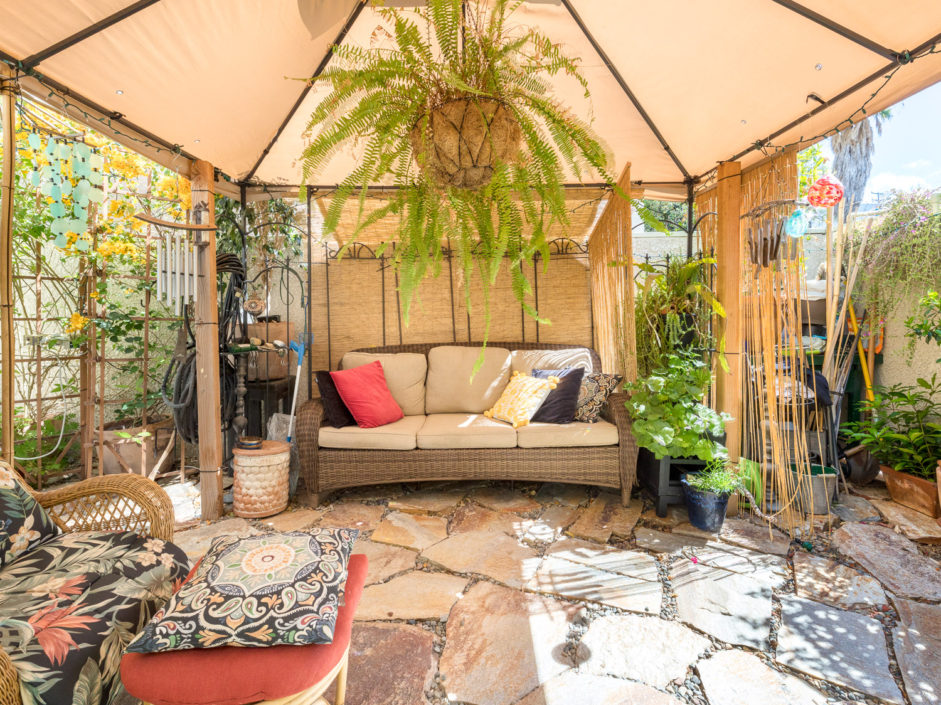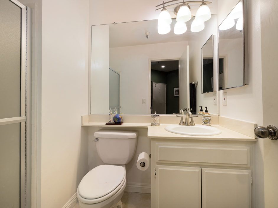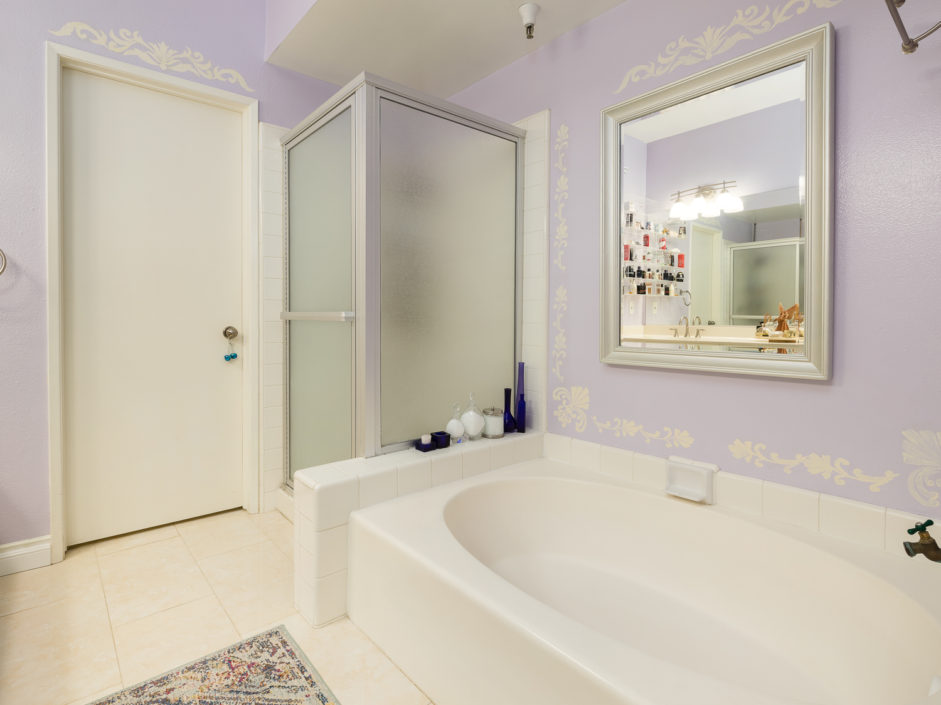 Rarely on the market this first floor unit has it all. The single level home has 1491 sq. ft. of living space and enjoys a ground level patio/yard. This remodeled up- scale unit boasts a great open floor plan with two spacious bedrooms, a huge liv- ing room, separate dining room and fireplace. Hardwood rustic floors are found throughout and create a warm feel as you enjoy all the upgrades. The attractive granite kitchen enjoys a new stainless steel appliance package including stove, microwave and double door frig with ice and water on the door. The adjoining breakfast room is sunny and spacious. The huge master bedroom with double door entry enjoys a spacious master bath with two sinks, separate shower and tub, double closets and private access to the rear yard. Not many units have the special feature of a rear yard. The yard is lushly landscaped, has stone flooring and covered patio. It’s a special place to relax after a long day. Additional features include, air conditioning, designer colors, ceiling fan, tiled entry, recessed lighting. This small 38-unit complex offers pool, spa, recreation room and exercise room. The home includes 2 parking spaces in a secured subterranean garage at the end of a quiet, tree lined cul-de-sac. Outstanding arterial access and conveniently located to exemplary shopping, theaters and numerous outstanding restaurants!