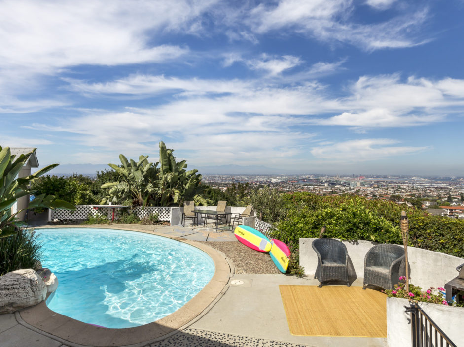 Fabulous upper South Shores with awe inspiring views 180 degrees ++ of the city, mountains, bridge, harbor, ocean and the sunrise! This one level mid century custom built home features 4 bedrooms, 3 baths, oversized living room with picture windows, stone fireplace and beaming wood flooring. Master with his/her baths & sitting room. Wonderful architectural details. Great Room has stone fireplace which includes waterfall to outside pool. LivingRm/DRm is beautifully extended by broad terraces as the ultimate entertainer’s home. Private guest house with 1 bedroom and bath accessed from backyard and perfect for guests, teenager or in-laws. Kitchen adjoins delightful family room. Outstanding pool with full view and built-in patio areas. Spacious & spectacular on mainly one-level living.