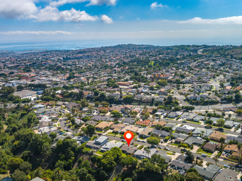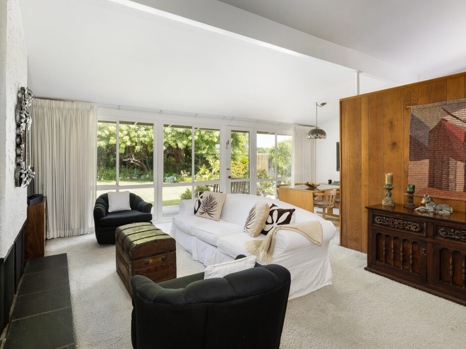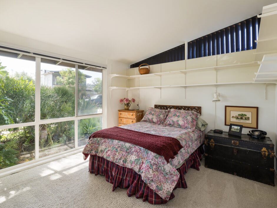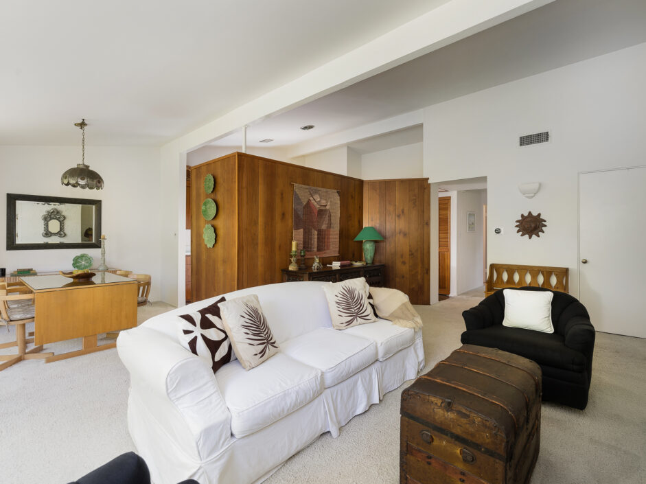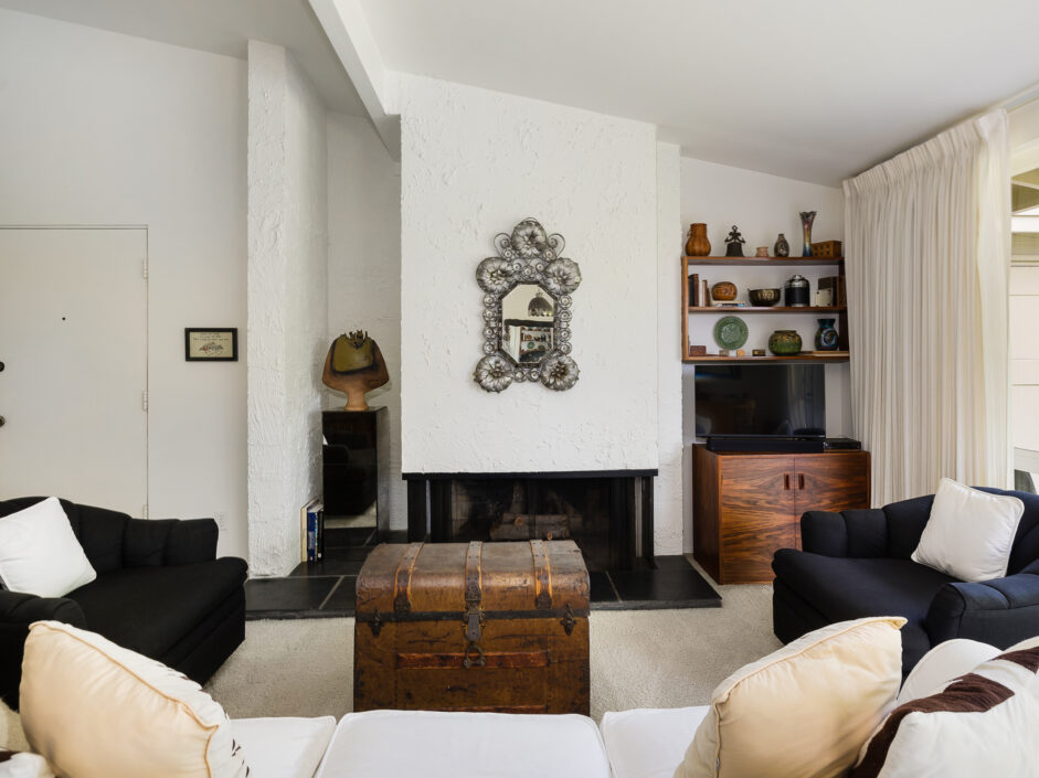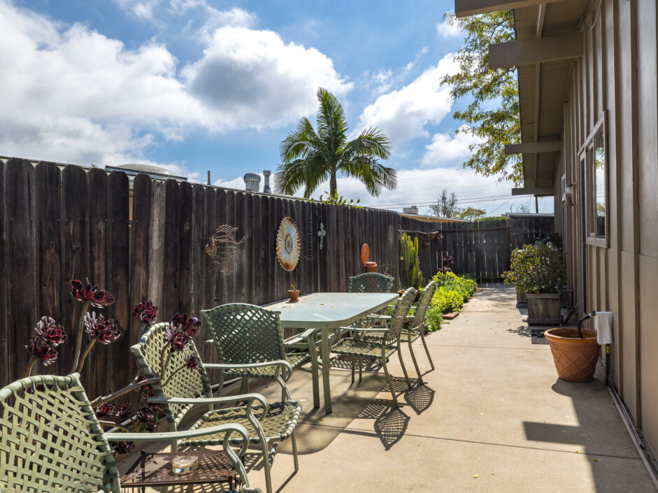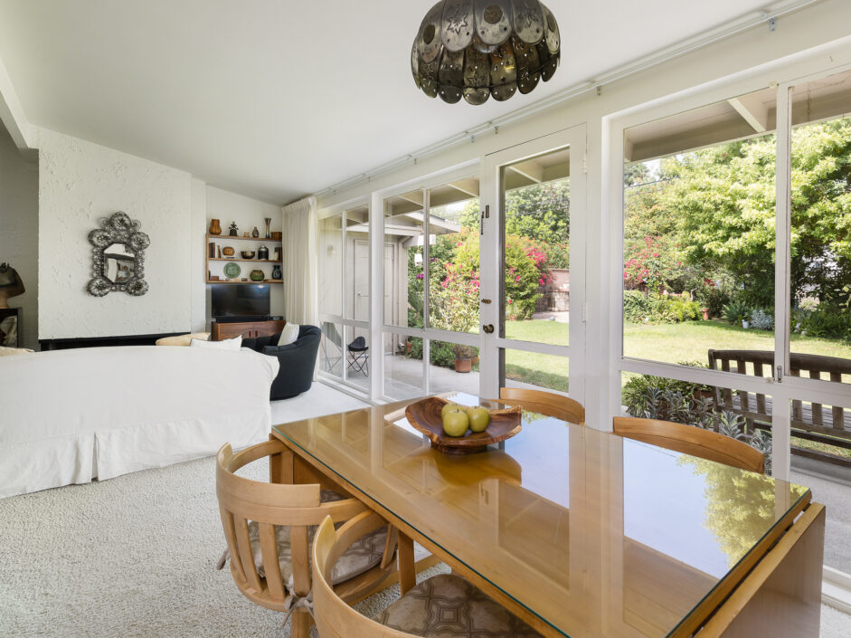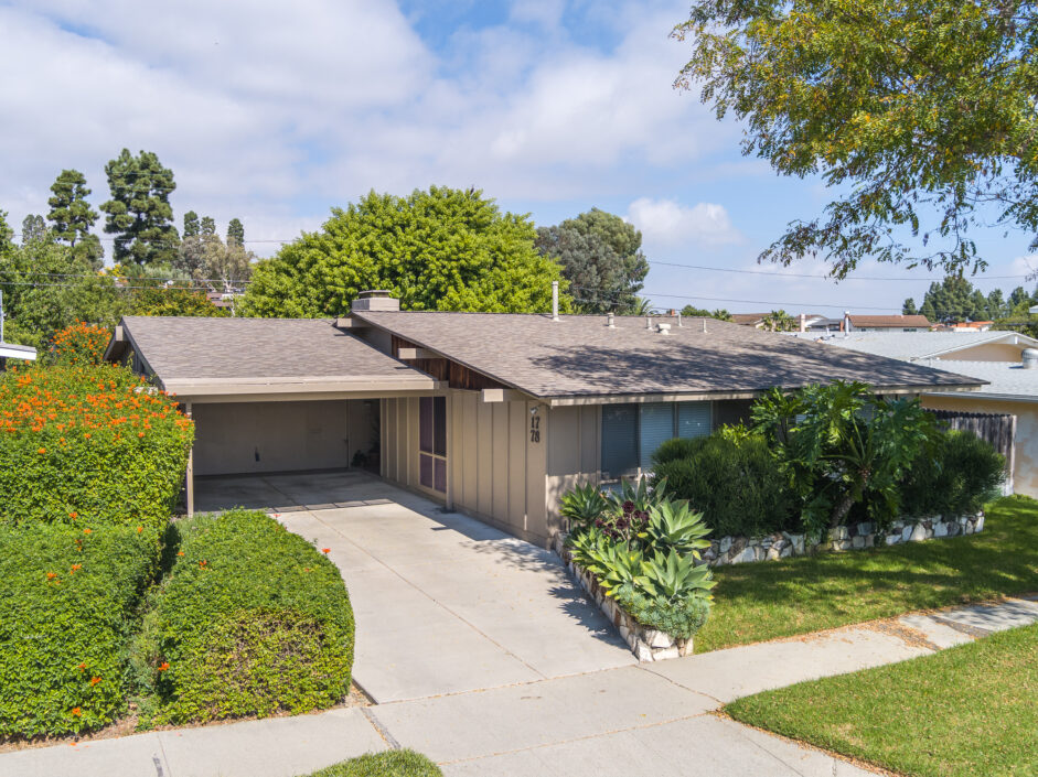 Designed by renowned architect Edward Fickett, this mid-century home emulates simple lines and angles that create a feeling of simplicity and yet a true sense of functionality. The sought after layout with sweeping roof line sets the tone the moment you walk through the front door. A period perfect fireplace anchors the open floor plan and is complimented by a wall of glass allowing the exterior to engulf the home creating a sense of serenity. The large open space living room is accented by a large wood wall. The kitchen enjoys solid walnut wood cabinetry and white counters. The dining room is a perfect area to enjoy countless gatherings. The master suite with large window includes a private full bathroom. Meticulously maintained rear grounds include a huge flat grassy yard and cozy stone fireplace sure to ensure that friends and family always want to return. This unique home is move-in ready and positioned on a quiet tree-lined street in one of San Pedro’s sought after neighborhoods.