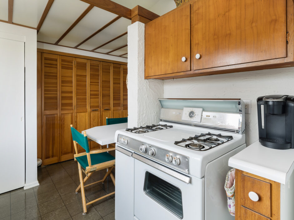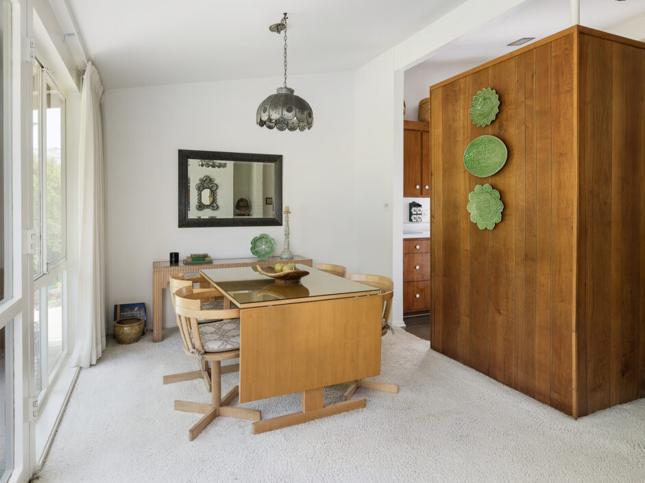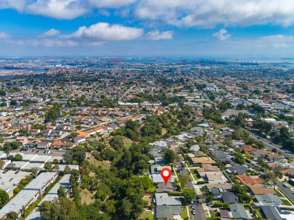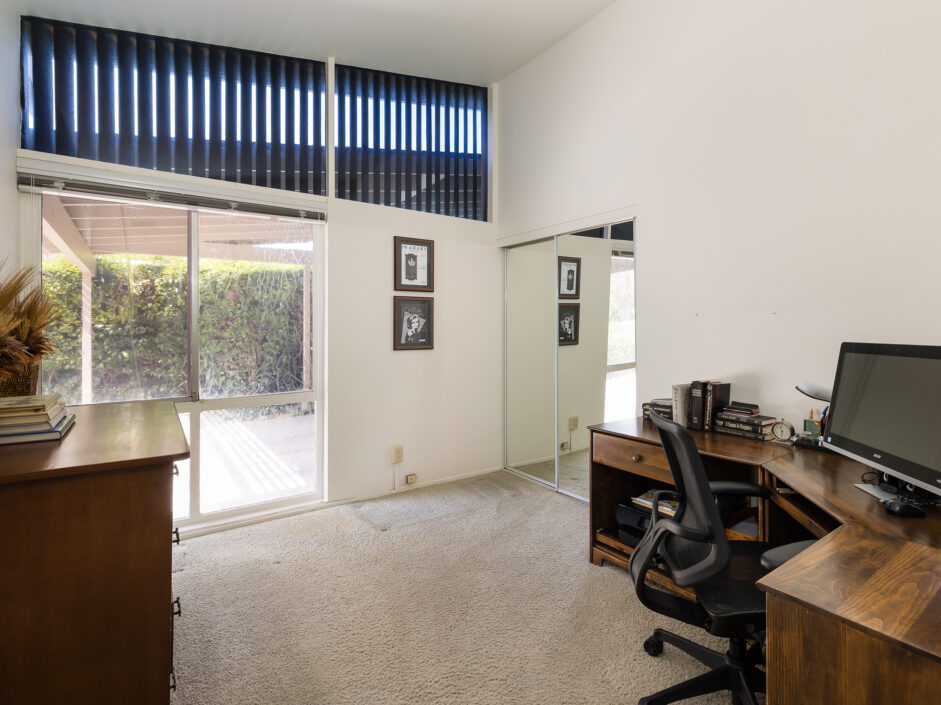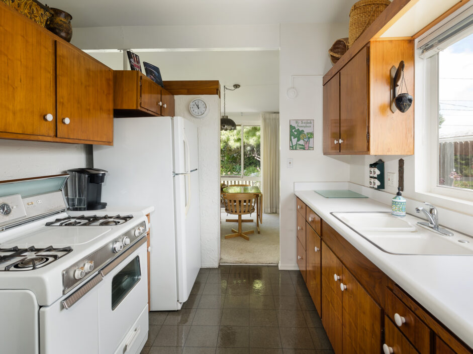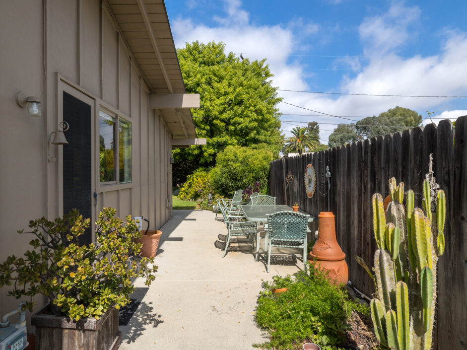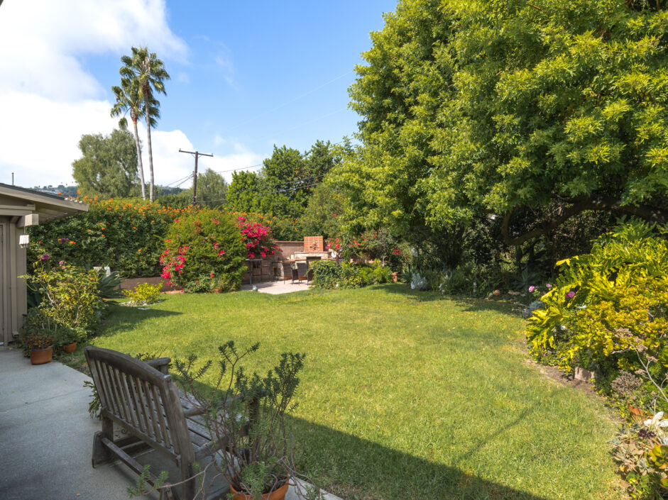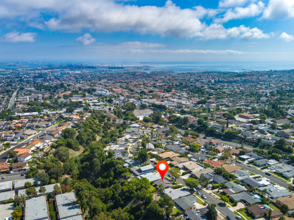 Designed by renowned architect Edward Fickett, this mid-century home emulates simple lines and angles that create a feeling of simplicity and yet a true sense of functionality. The sought after layout with sweeping roof line sets the tone the moment you walk through the front door. A period perfect fireplace anchors the open floor plan and is complimented by a wall of glass allowing the exterior to engulf the home creating a sense of serenity. The large open space living room is accented by a large wood wall. The kitchen enjoys solid walnut wood cabinetry and white counters. The dining room is a perfect area to enjoy countless gatherings. The master suite with large window includes a private full bathroom. Meticulously maintained rear grounds include a huge flat grassy yard and cozy stone fireplace sure to ensure that friends and family always want to return. This unique home is move-in ready and positioned on a quiet tree-lined street in one of San Pedro’s sought after neighborhoods.