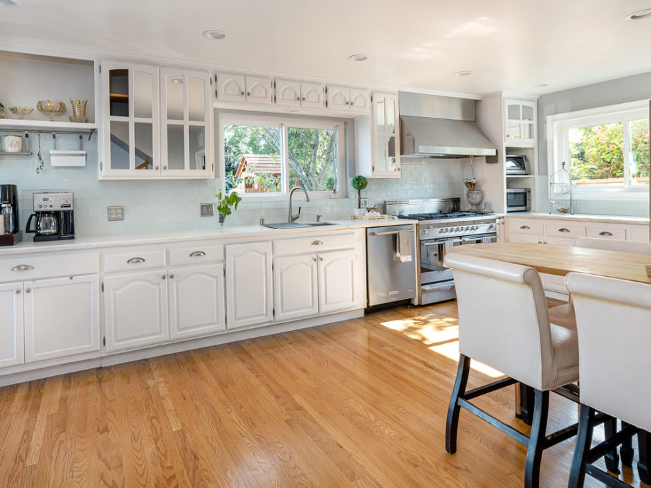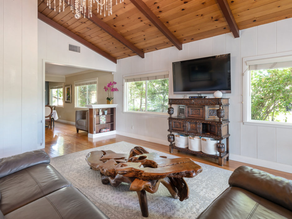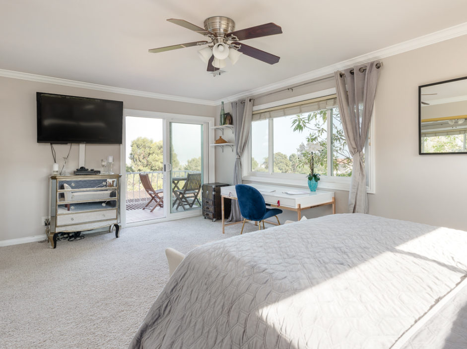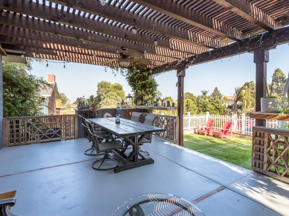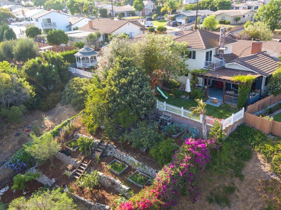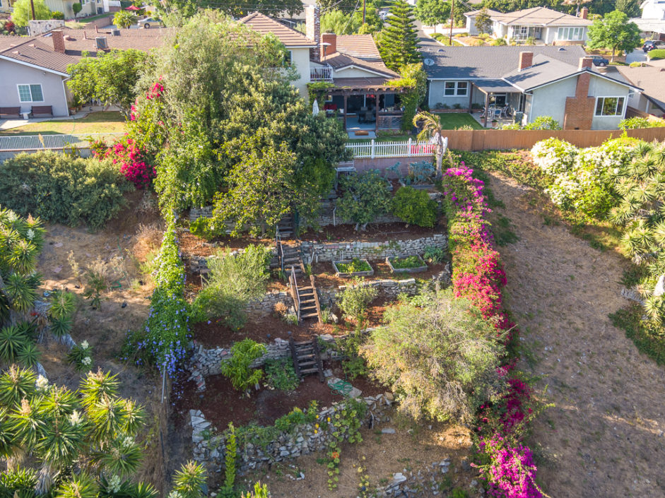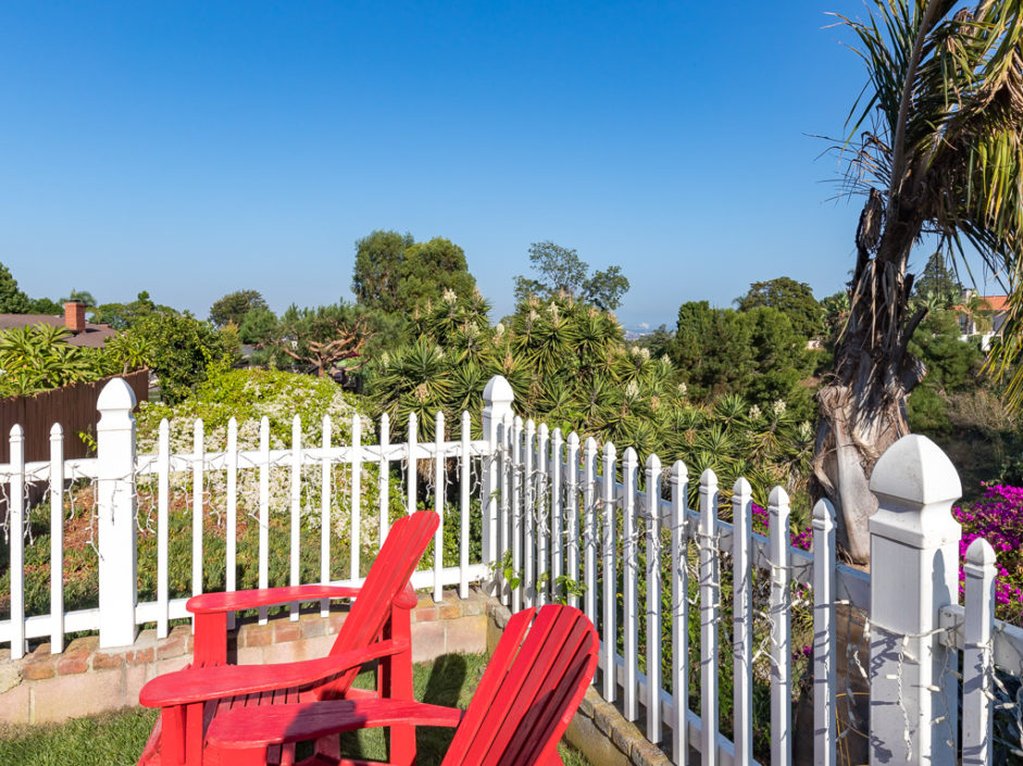Keep your hands busy and your heart full. Welcome To The Canyon Garden Home. The Tree Lined Street Introduces You to this Perfectly Situated Transitional Style Home with Partial Ocean Views and Mountain Views as far as Big Bear! Located On a Seasonal Creek with Usable Private Canyon, this 2,400 sq ft Home is Ideal for Entertaining, Raising a Family, Growing Your Own Food & Maintaining Privacy. With over 60 Trees and Lots of Windows this South Facing House is ideal for Solar and Illuminates Every Room with Natural Light. The Canyon Includes 8 terraces of usable, irrigated land that is entirely fenced(6 ft). Mature fruit producing trees include Persimmons, Lemons, Loquats, Figs, Grapefruits, Limes, Apples, Peaches, and more. One Entire Row is a Berry Patch! The Home has been extensively remodeled in 2018 with energy efficient windows, sliding doors and modern solid wood interior doors. There are 2 Fireplaces, Custom Bar Enclave with Wine Storage Shelves, and High Wood Beamed Ceilings Accent the Chandelier’s Grandeur and Beauty. Completely Remodeled Kitchen with Stainless Steel Appliances, Including a Commercial Grade Fisher Paykel 60″ Dual Oven Gas Range, Energy Efficient and Low Decibel Dishwasher and Smart Samsung Refrigerator with 24″ Screen. Large Pantry Cabinets for an abundance of food storage, including a root cellar tucked away under the stairs. The Private 2nd Master Suite with ensuite bathroom is full of views of the ocean and mountains as far as the eyes can see.