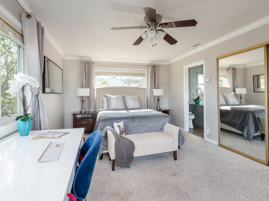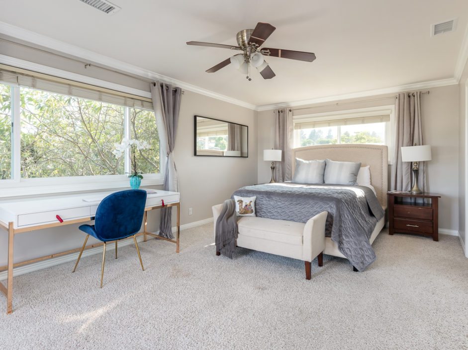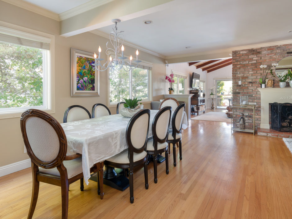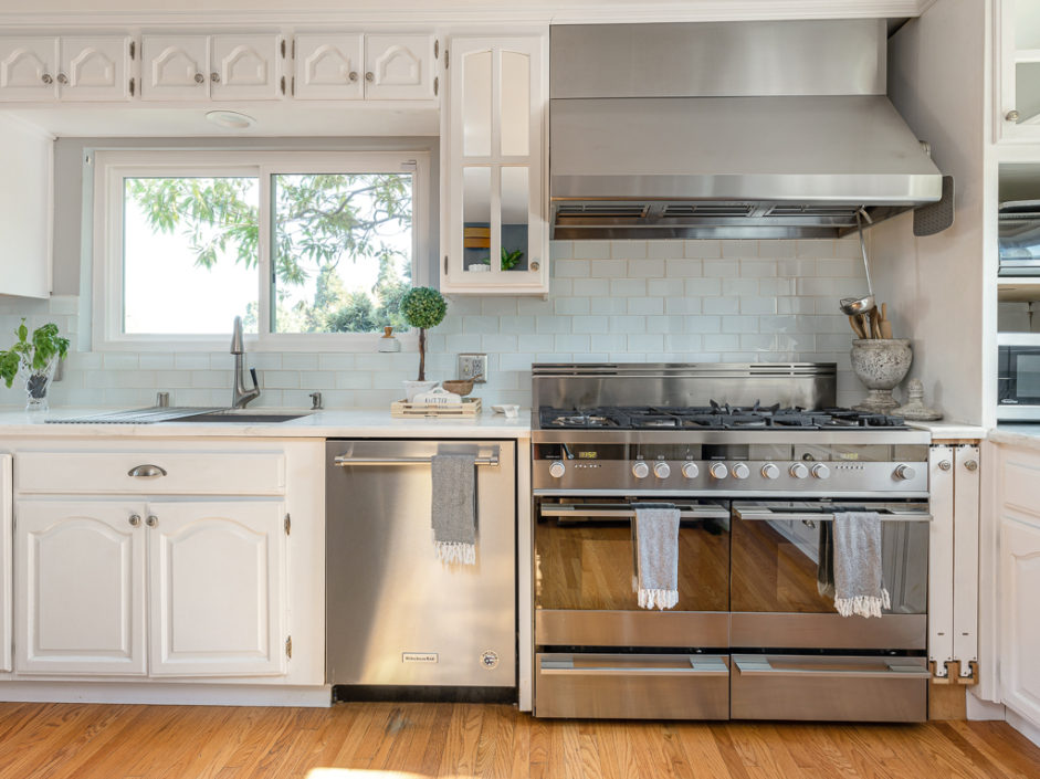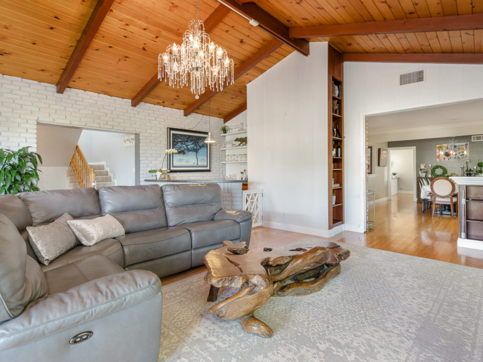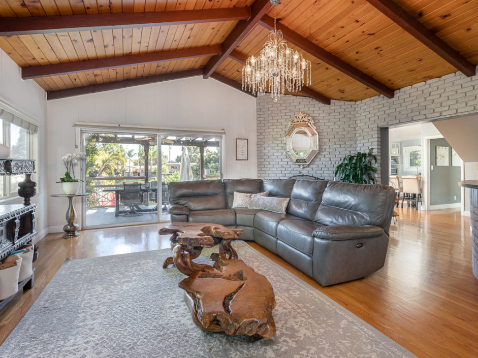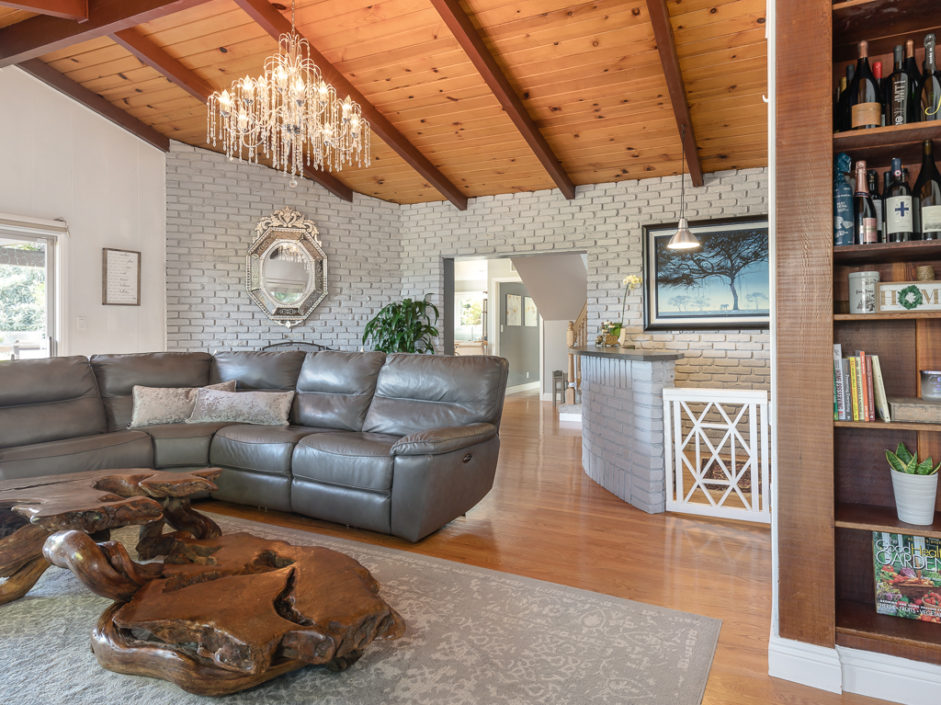 Keep your hands busy and your heart full. Welcome To The Canyon Garden Home. The Tree Lined Street Introduces You to this Perfectly Situated Transitional Style Home with Partial Ocean Views and Mountain Views as far as Big Bear! Located On a Seasonal Creek with Usable Private Canyon, this 2,400 sq ft Home is Ideal for Entertaining, Raising a Family, Growing Your Own Food & Maintaining Privacy. With over 60 Trees and Lots of Windows this South Facing House is ideal for Solar and Illuminates Every Room with Natural Light. The Canyon Includes 8 terraces of usable, irrigated land that is entirely fenced(6 ft). Mature fruit producing trees include Persimmons, Lemons, Loquats, Figs, Grapefruits, Limes, Apples, Peaches, and more. One Entire Row is a Berry Patch! The Home has been extensively remodeled in 2018 with energy efficient windows, sliding doors and modern solid wood interior doors. There are 2 Fireplaces, Custom Bar Enclave with Wine Storage Shelves, and High Wood Beamed Ceilings Accent the Chandelier’s Grandeur and Beauty. Completely Remodeled Kitchen with Stainless Steel Appliances, Including a Commercial Grade Fisher Paykel 60″ Dual Oven Gas Range, Energy Efficient and Low Decibel Dishwasher and Smart Samsung Refrigerator with 24″ Screen. Large Pantry Cabinets for an abundance of food storage, including a root cellar tucked away under the stairs. The Private 2nd Master Suite with ensuite bathroom is full of views of the ocean and mountains as far as the eyes can see.