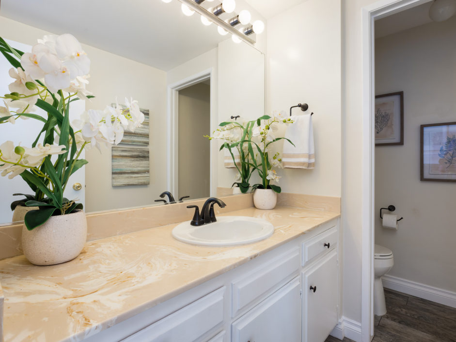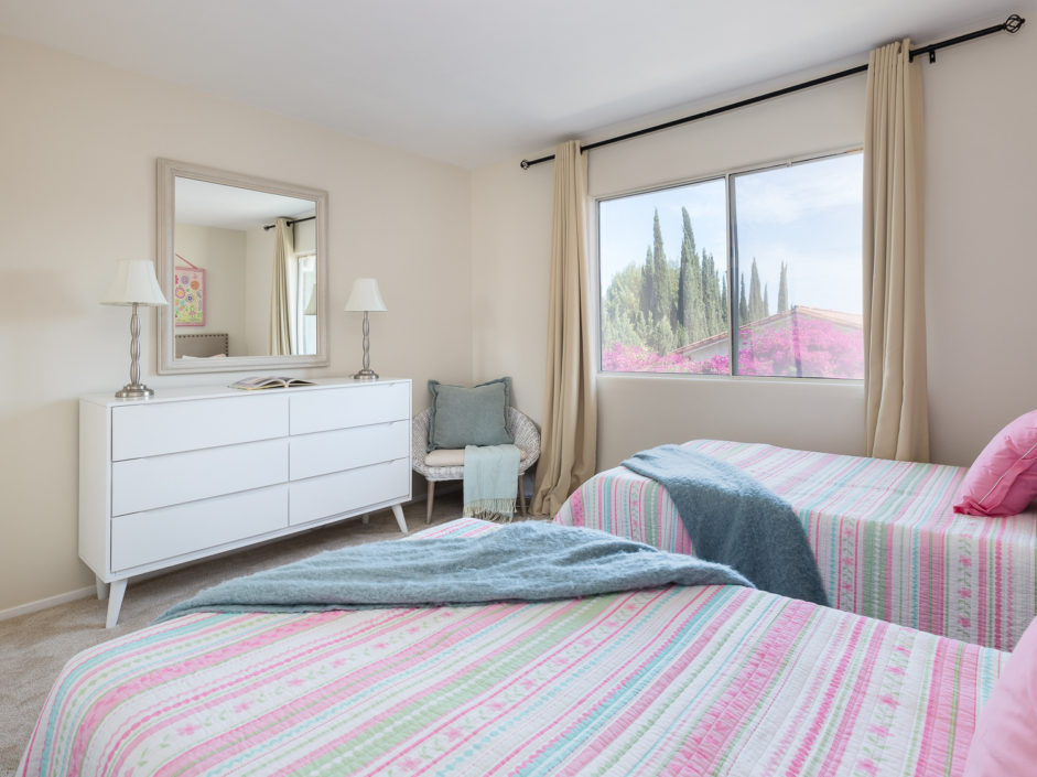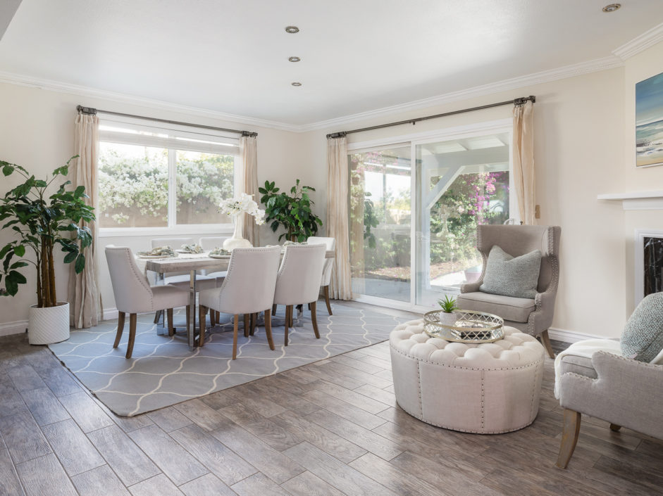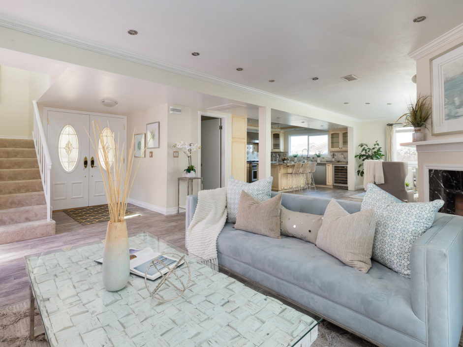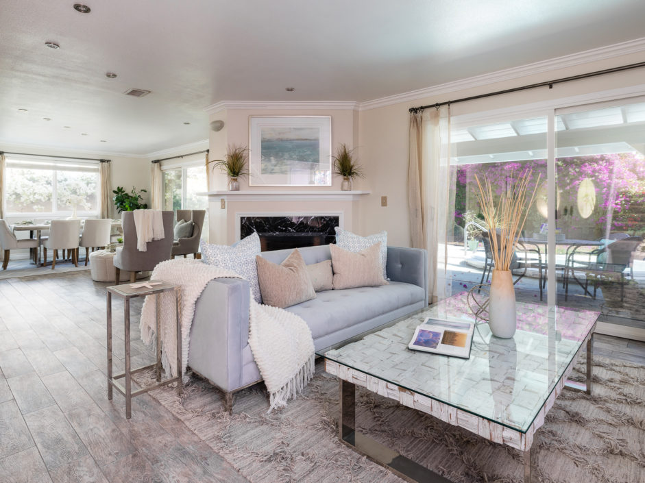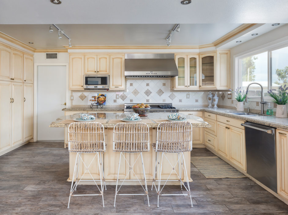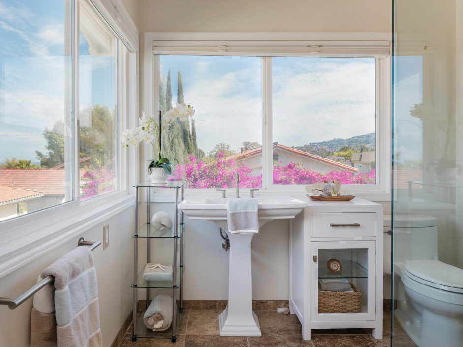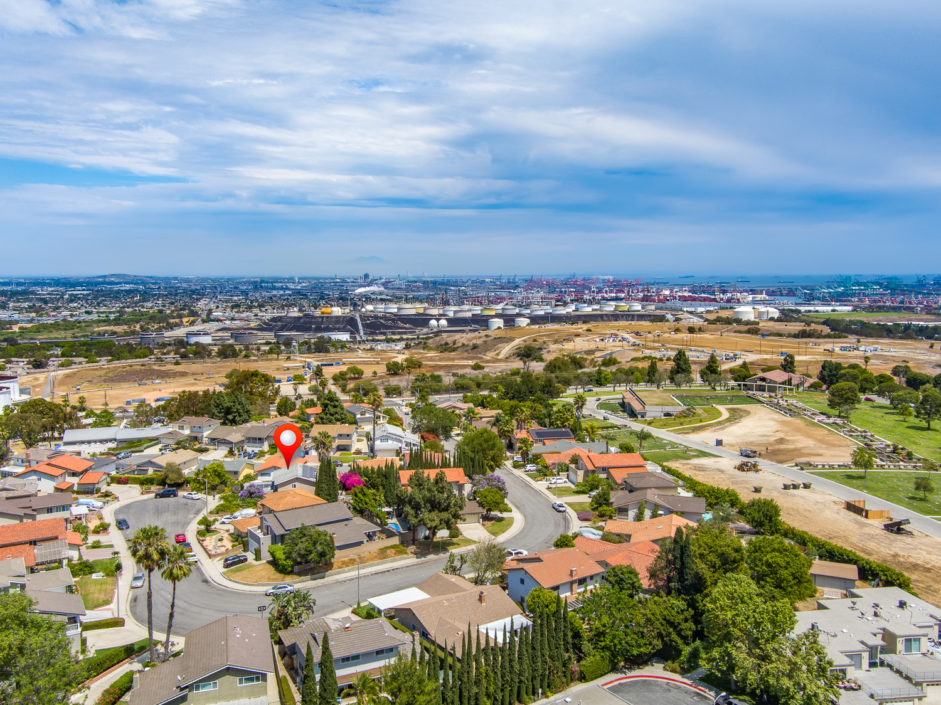 Nestled atop Peninsula Verde is a lovely home at the end of a cul-de-sac. A double door entrance is hidden behind mature flower trees that blossom in the spring. The renovated finishes enjoy a hardy tile floor that resembles hardwood, which spans the entirety of the first floor. The open air layout dances around the dining room, family room, center island, and gourmet kitchen. This chef’s delight mixes vanilla hues and creamy colors seen in the custom cabinetry, granite stone counters, and accordingly accented backsplash. Stainless steel appliances are of the highest grade. Thermador range, frig, dishwasher, Sharp microwave, and Monogram wine cooler. The window placement invites tremendous natural light and views beyond to white, pink, magenta, and purple bougainvilleas that fantastically fan around the property. The two sliding doors make way towards the gorgeous backyard that encases a fire pit, jacuzzi, shaded wood structure, and a side yard that utilizes morning sun for gardening. This area also has access to the homes energy conserving solar panels, completely owned by the property, which are run by a Tesla 11kW system. The home takes a waltz upstairs to the bedroom quarters. This area of the home picks up perfect views. A colorful drape of sheer flowers encompasses the downstairs while bright blue sky and the green hills of Palos Verdes cascade down and can be seen from bedrooms upstairs. The master bath enjoys views from the East which include the ocean, sunrises, Vincent Thomas, and a glass wall within the room that bounces these natural lights back into the master bedroom. Large walk-in closet, linen space, full baths, and direct 2-car garage access create an efficient use of space perched on a pleasant hillside.