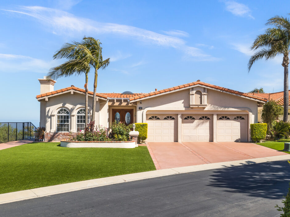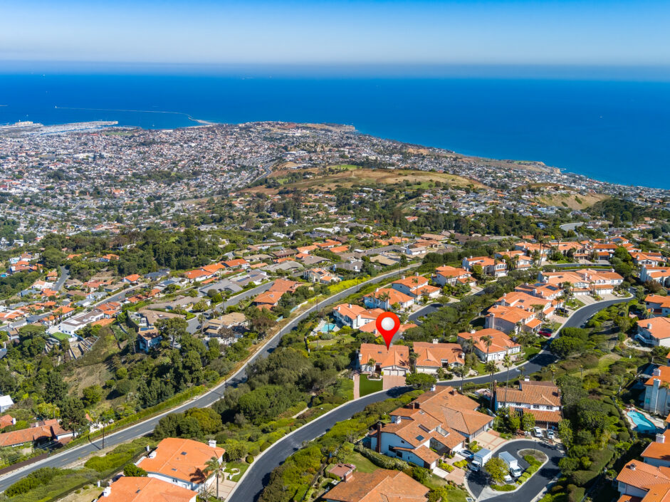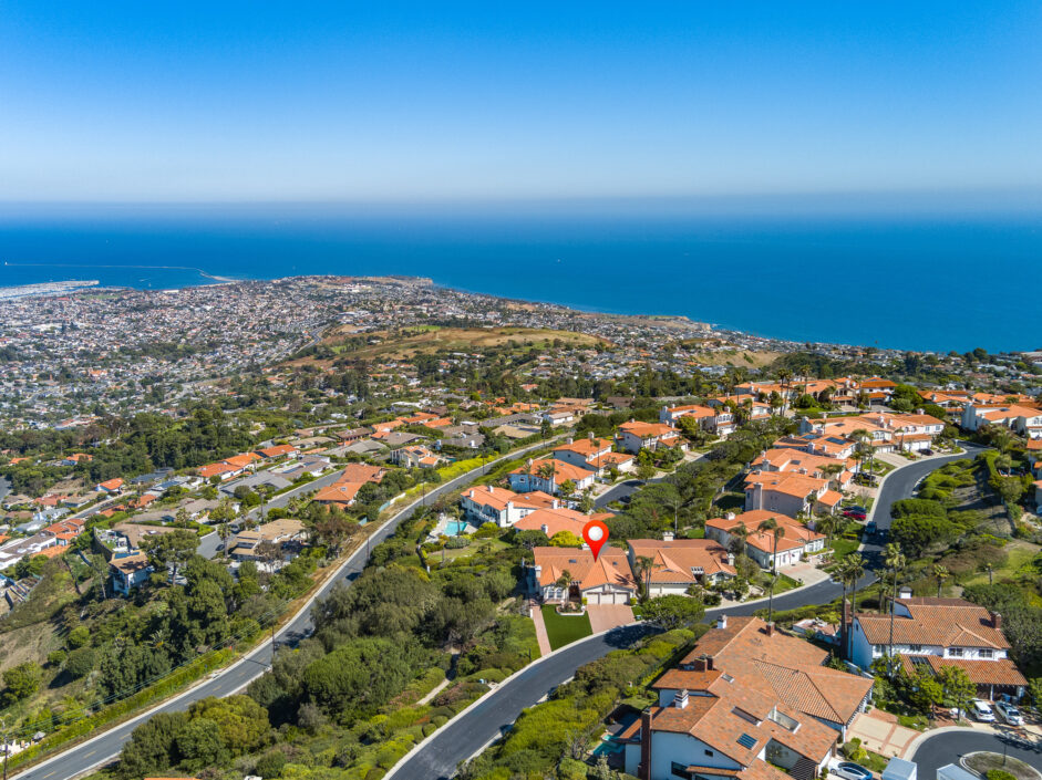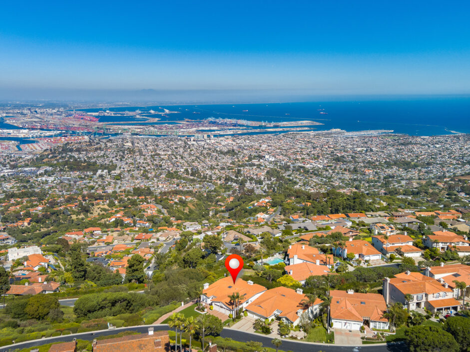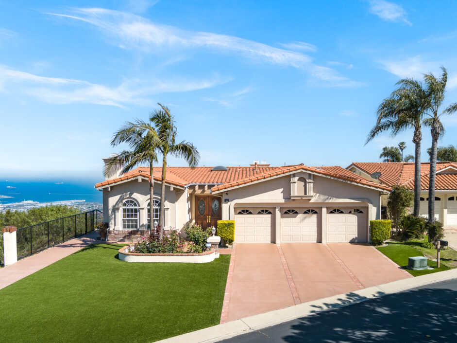 Gorgeous top of the world views of the ocean, harbor and city sets the tone the moment you walk to the front door. Nestled in one of the only guard gated communities in Rancho Palos Verdes, this Mediterranean-style home is the perfect find for your family. The home has 4,000 square feet of living space, 4 bedrooms and 4.5 bathrooms, which makes it ideal for entertaining. Double doors expose an open-floor plan with new Maple hardwood flooring, the living room anchored by a stone fireplace opens to a formal dining room. The gourmet kitchen is engulfed in designer quartzite stone counters and enjoys new modern all wood cabinets with soft-close doors and drawers. A Sub-Zero and new double ovens and new stove top creates the ultimate cooking venue that any chef would appreciate. Double dishwashers and multiple custom pull outs complete the culinary experience. The master suite opens to jaw dropping ocean and city views and enjoys a sitting room, fireplace, wet bar, and three closets. The master bath with double-sink counters includes separate Jacuzzi tub and steam shower. A family room with fireplace is the perfect spot for nice gatherings. Rear yard enjoys stone flooring and covered patio all opening up to the amazing views of the Pacific Ocean. Additional features include new Anderson doors and windows, new balcony, new PEX plumbing lines, new heater and exterior landscaping. Located on a quiet street with only one neighbor on one side. Easy freeway access for downtown LA commutes and Top Ranked Palos Verdes Schools. Less than 10 minutes to freeway access, Terranea Resort and Trump National Golf Course. The owner is also open to selling all the furniture and art work.