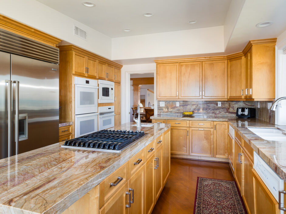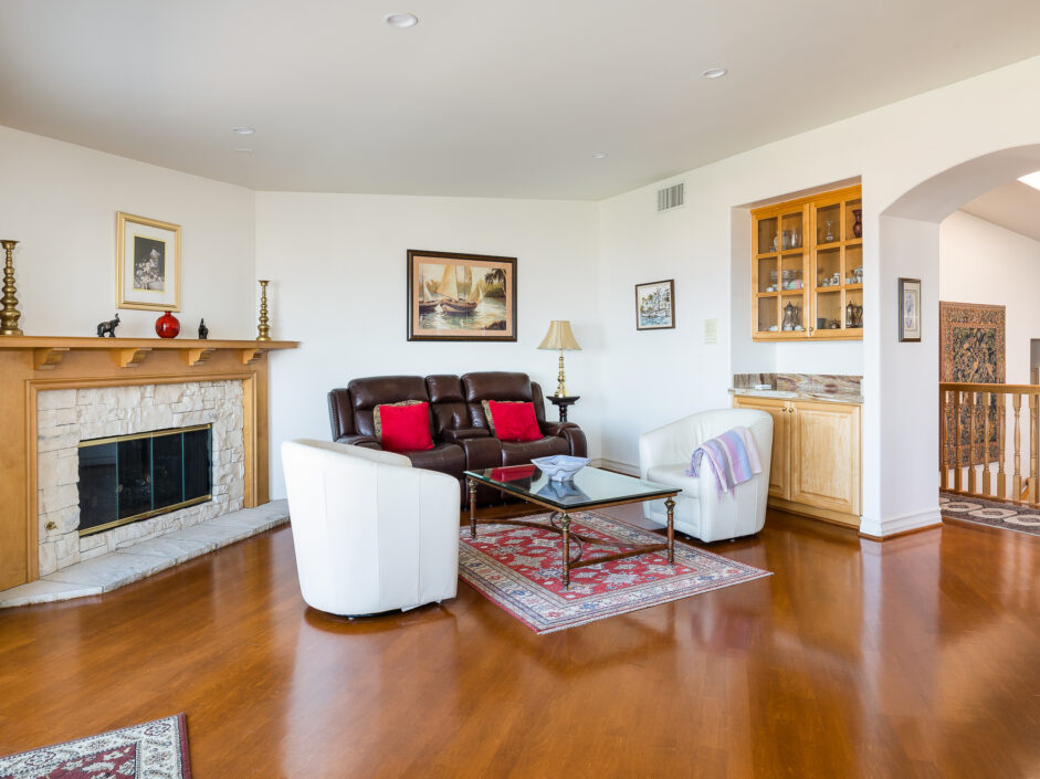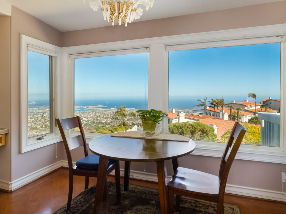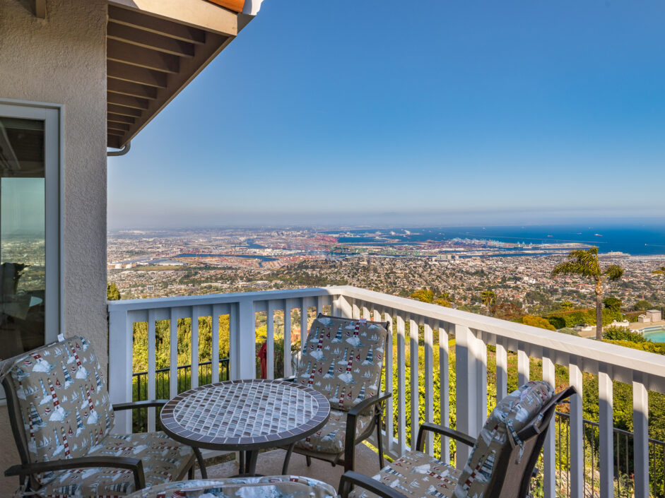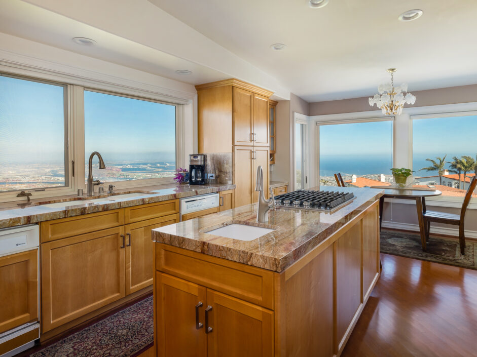 Gorgeous top of the world views of the ocean, harbor and city sets the tone the moment you walk to the front door. Nestled in one of the only guard gated communities in Rancho Palos Verdes, this Mediterranean-style home is the perfect find for your family. The home has 4,000 square feet of living space, 4 bedrooms and 4.5 bathrooms, which makes it ideal for entertaining. Double doors expose an open-floor plan with new Maple hardwood flooring, the living room anchored by a stone fireplace opens to a formal dining room. The gourmet kitchen is engulfed in designer quartzite stone counters and enjoys new modern all wood cabinets with soft-close doors and drawers. A Sub-Zero and new double ovens and new stove top creates the ultimate cooking venue that any chef would appreciate. Double dishwashers and multiple custom pull outs complete the culinary experience. The master suite opens to jaw dropping ocean and city views and enjoys a sitting room, fireplace, wet bar, and three closets. The master bath with double-sink counters includes separate Jacuzzi tub and steam shower. A family room with fireplace is the perfect spot for nice gatherings. Rear yard enjoys stone flooring and covered patio all opening up to the amazing views of the Pacific Ocean. Additional features include new Anderson doors and windows, new balcony, new PEX plumbing lines, new heater and exterior landscaping. Located on a quiet street with only one neighbor on one side. Easy freeway access for downtown LA commutes and Top Ranked Palos Verdes Schools. Less than 10 minutes to freeway access, Terranea Resort and Trump National Golf Course. The owner is also open to selling all the furniture and art work.