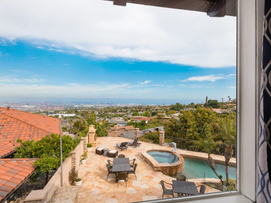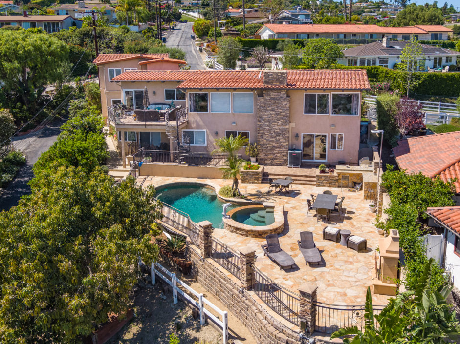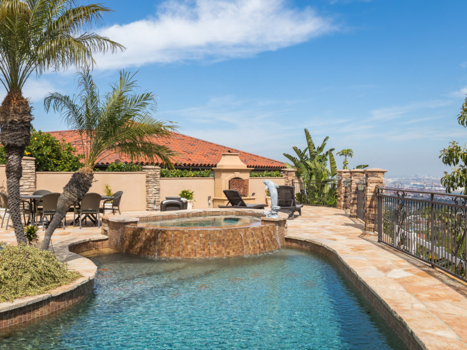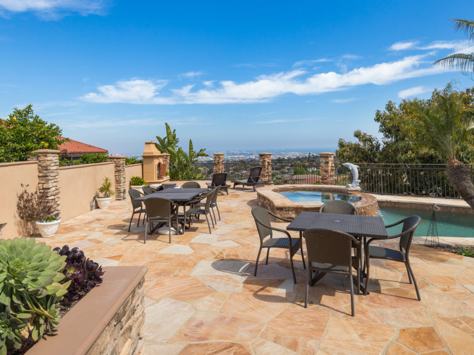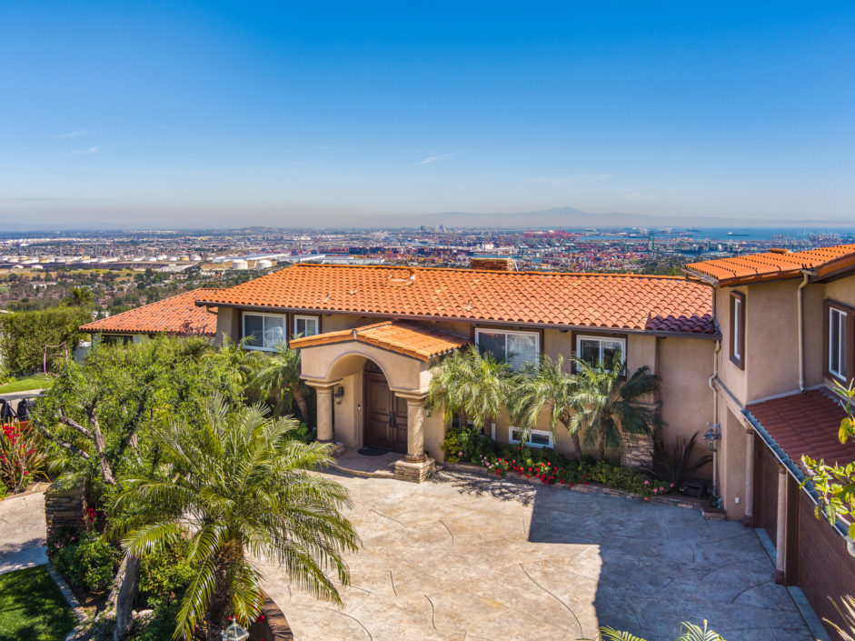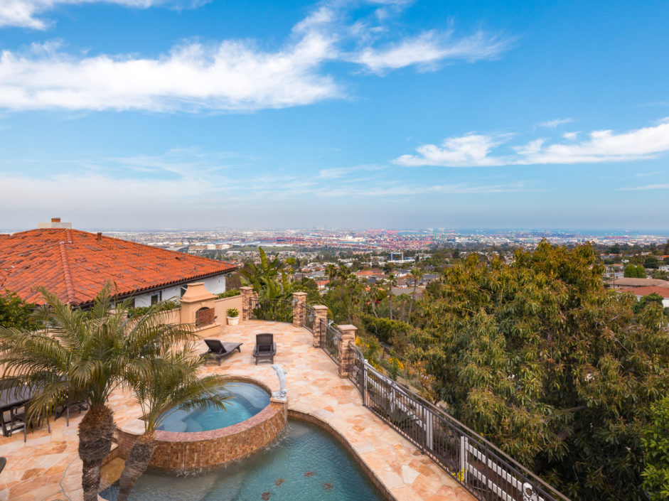 Nestled in the prestigious community of Palos Verdes you will find a Rustic One of a Kind Spanish Masterpiece. The Spanish estate has 4 Bedrooms 5 bathrooms and enjoys over 3900 sq. ft. of living space on a massive 20,000 sq ft lot. The open floor plan has distressed hardwood flooring and sandblasted open beamed ceilings lined with a wall of glass that brings the outdoor elements into your living space. Panoramic views of the ocean and city create the ultimate first impression. This sense of mastery continues into the gourmet kitchen equipped with dream appliances to meet every culinary need. Professional grade appliances are surrounded by custom cabinets. Granite counters, custom backsplash, Miele coffee espresso maker as well as double ovens and a Sub-Zero frig are perfect tools to make incredible memories. From cool ocean breezes to distressed hardwood floors, this home sings with the brightest notes of nature. The master retreat was created to recharge yourself with sitting area and numerous windows to take in the amazing views. The spa inspired bathroom has a steam shower as well as a separate additional shower that have been designed and installed by a master artisan. Massive walk-in closet also has private laundry machine. The family room opens to a secondary dining area and additional kitchen providing a perfect transition to enjoy the incredible pool and spa area. The rear yard is spectacular with stone inspired coping and decking, cascading jacuzzi with massive amounts of lounging area anchored by a fireplace and complimented by an outdoor kitchen. Additional features include 3 car garage and additional storage room, AC, and way too much to list. This home offers the best of Southern California Coastal Living.
