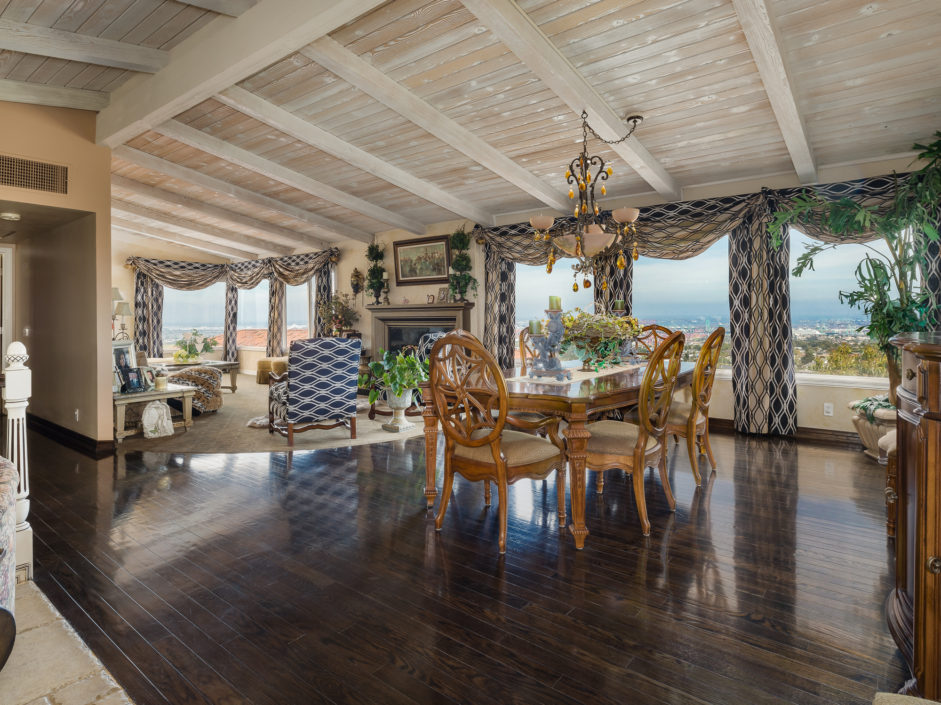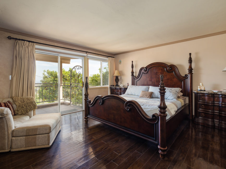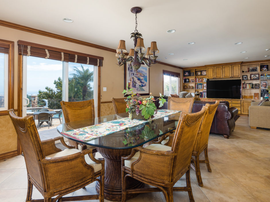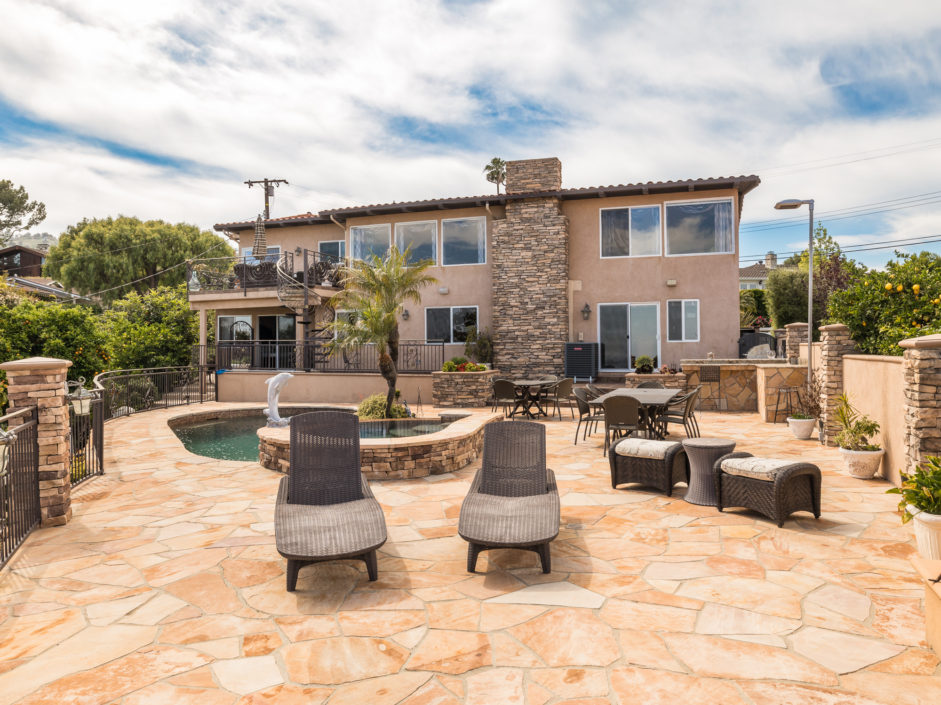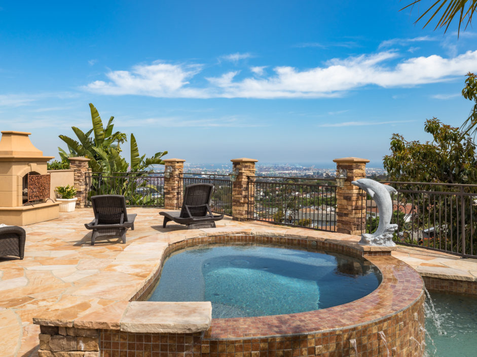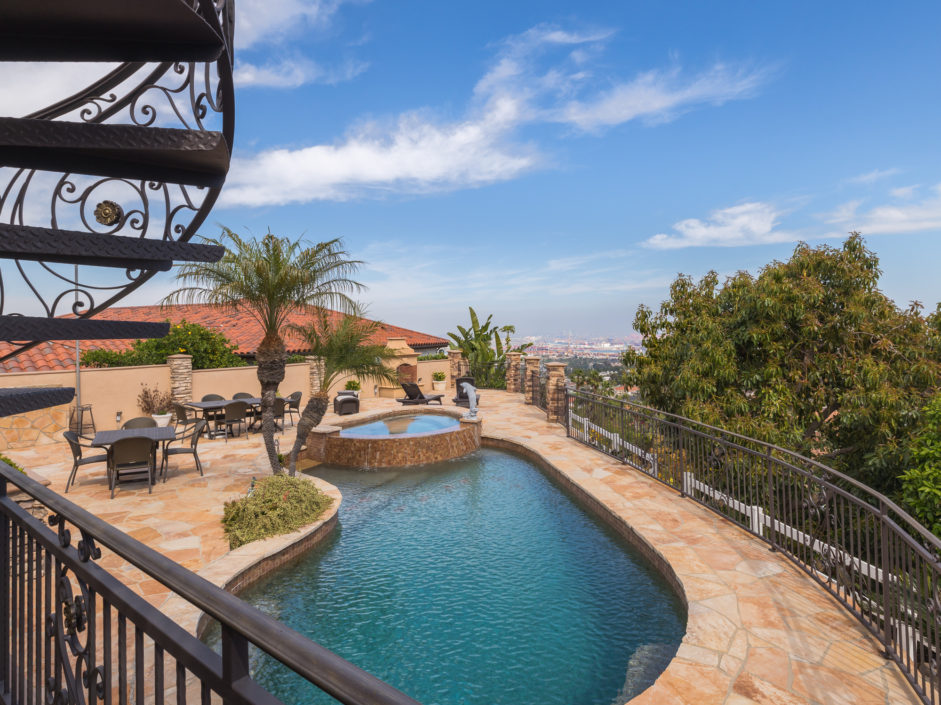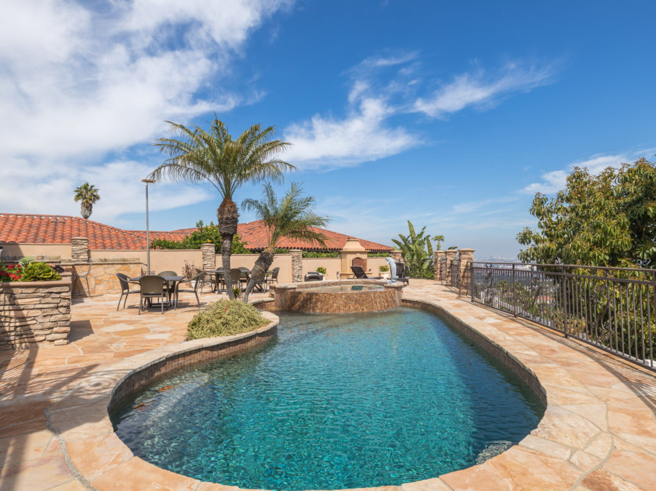 Nestled in the prestigious community of Palos Verdes you will find a Rustic One of a Kind Spanish Masterpiece. The Spanish estate has 4 Bedrooms 5 bathrooms and enjoys over 3900 sq. ft. of living space on a massive 20,000 sq ft lot. The open floor plan has distressed hardwood flooring and sandblasted open beamed ceilings lined with a wall of glass that brings the outdoor elements into your living space. Panoramic views of the ocean and city create the ultimate first impression. This sense of mastery continues into the gourmet kitchen equipped with dream appliances to meet every culinary need. Professional grade appliances are surrounded by custom cabinets. Granite counters, custom backsplash, Miele coffee espresso maker as well as double ovens and a Sub-Zero frig are perfect tools to make incredible memories. From cool ocean breezes to distressed hardwood floors, this home sings with the brightest notes of nature. The master retreat was created to recharge yourself with sitting area and numerous windows to take in the amazing views. The spa inspired bathroom has a steam shower as well as a separate additional shower that have been designed and installed by a master artisan. Massive walk-in closet also has private laundry machine. The family room opens to a secondary dining area and additional kitchen providing a perfect transition to enjoy the incredible pool and spa area. The rear yard is spectacular with stone inspired coping and decking, cascading jacuzzi with massive amounts of lounging area anchored by a fireplace and complimented by an outdoor kitchen. Additional features include 3 car garage and additional storage room, AC, and way too much to list. This home offers the best of Southern California Coastal Living.