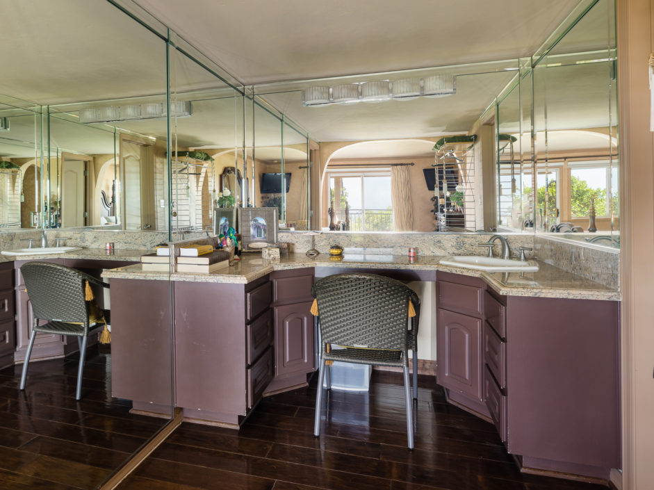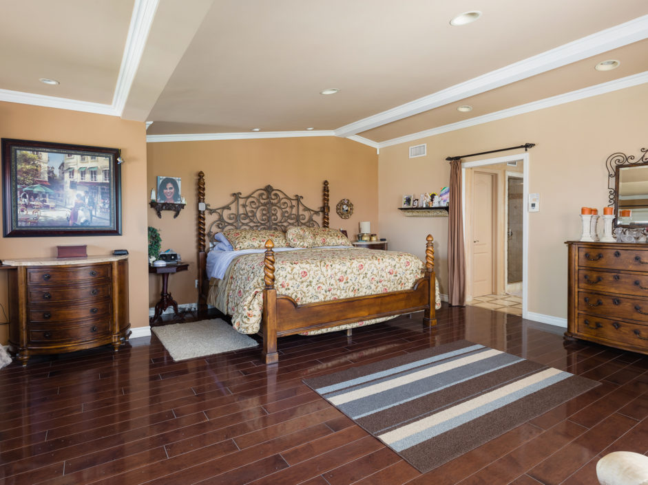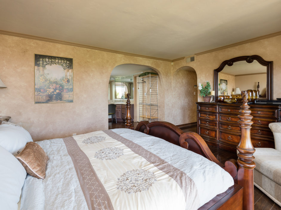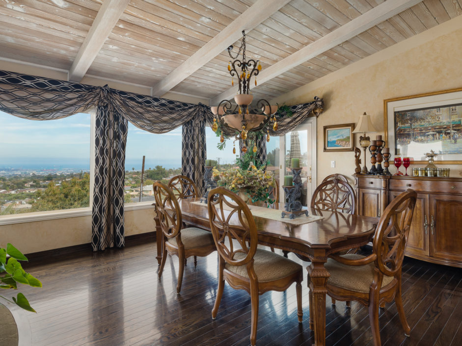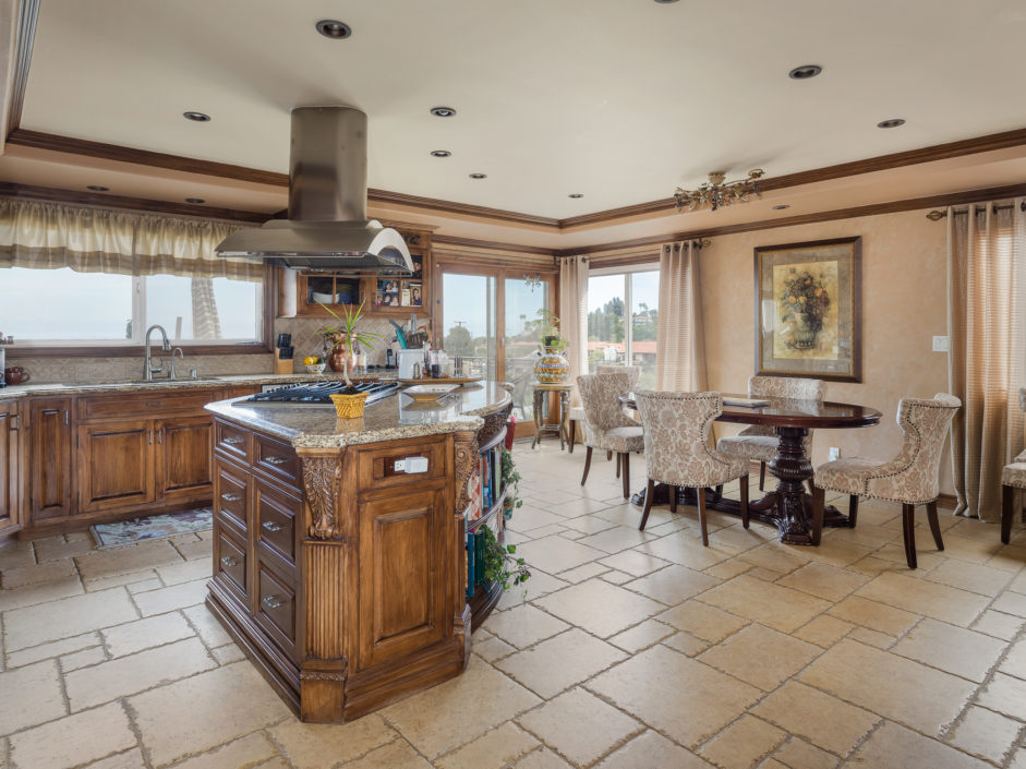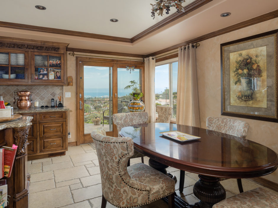 Nestled in the prestigious community of Palos Verdes you will find a Rustic One of a Kind Spanish Masterpiece. The Spanish estate has 4 Bedrooms 5 bathrooms and enjoys over 3900 sq. ft. of living space on a massive 20,000 sq ft lot. The open floor plan has distressed hardwood flooring and sandblasted open beamed ceilings lined with a wall of glass that brings the outdoor elements into your living space. Panoramic views of the ocean and city create the ultimate first impression. This sense of mastery continues into the gourmet kitchen equipped with dream appliances to meet every culinary need. Professional grade appliances are surrounded by custom cabinets. Granite counters, custom backsplash, Miele coffee espresso maker as well as double ovens and a Sub-Zero frig are perfect tools to make incredible memories. From cool ocean breezes to distressed hardwood floors, this home sings with the brightest notes of nature. The master retreat was created to recharge yourself with sitting area and numerous windows to take in the amazing views. The spa inspired bathroom has a steam shower as well as a separate additional shower that have been designed and installed by a master artisan. Massive walk-in closet also has private laundry machine. The family room opens to a secondary dining area and additional kitchen providing a perfect transition to enjoy the incredible pool and spa area. The rear yard is spectacular with stone inspired coping and decking, cascading jacuzzi with massive amounts of lounging area anchored by a fireplace and complimented by an outdoor kitchen. Additional features include 3 car garage and additional storage room, AC, and way too much to list. This home offers the best of Southern California Coastal Living.