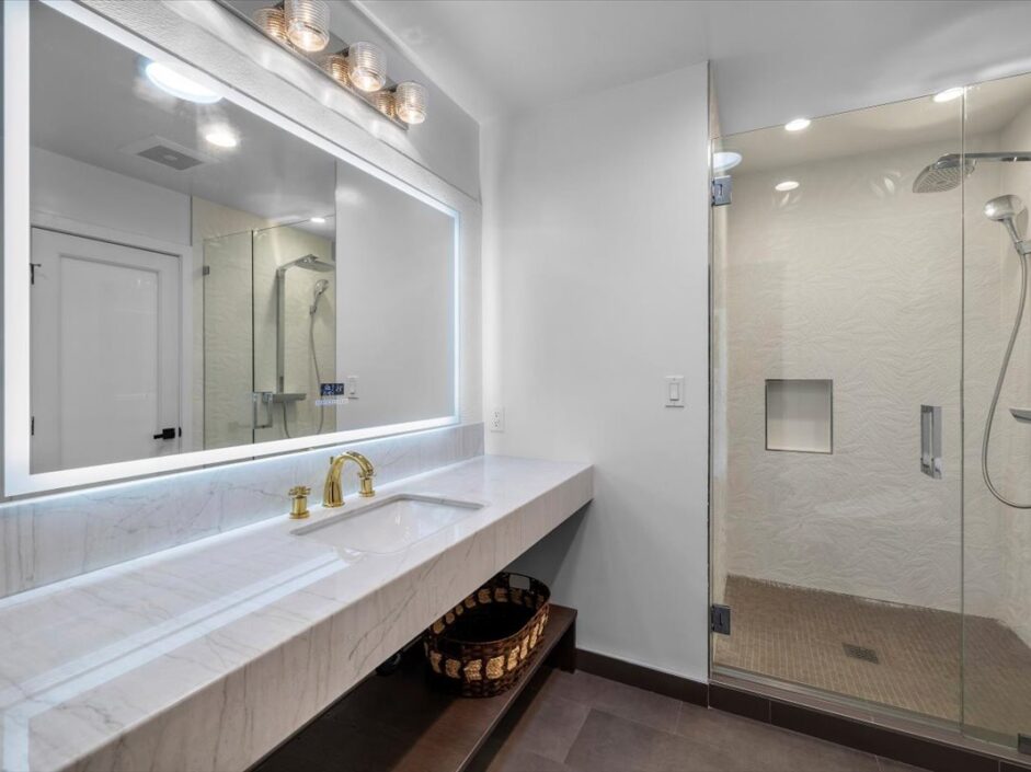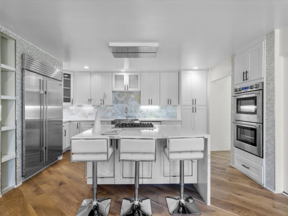 Welcome to Colt Road, a hidden gem seamlessly located by the creative coastline of Palos Verdes. Panoramic views of the ocean and harbor surround this incredible home. The property was cleverly developed with designer elements found throughout the home. Huge double doors open to an open floor plan with newly installed rustic hardwood floors. The gourmet kitchen recently completed is gorgeous and ready for the first gathering. Stone counters engulfed by custom cabinets and new appliances including Sub Zero, Viking and Fisher & Paykel set the tone for every meal. Porcelanosa imported tile as well as designer elements can be found throughout the home. The pleasantly perceived floor plan encourages enjoyment from gatherings by creating social venues around interior and exterior lounging. Blazing fires crack wood embers in the living room fireplace as food cooks in the open aired chef’s choice kitchen. The family room opens to a stone tiled patio surrounded by lush landscaping. Each of the bedrooms enjoy a newly remodeled bathroom. The master suite is anchored by an in-wall fireplace and a wall of glass positioned to take in the amazing views of harbor and ocean. The den/office also has a modern wall of stone fireplace and Fleetwood folding doors opening to the stone infused patio. The spa infused master bath has a separate soaking tub and walk-in shower. Additional features include circular motor court, new roof and stucco, epoxy garage flooring, Toto toilets, new doors and windows, The grounds are complimented by a modern pool with numerous cool features including a swim jet feature allowing you to swim against the current, waterfalls and lighting. The pool area is surrounded by glass which has special led lighting allowing you to set the mood. A stone and wood inlaid wood ceiling is perfectly designed to create an outdoor kitchen area ready for family gatherings. A must see home!