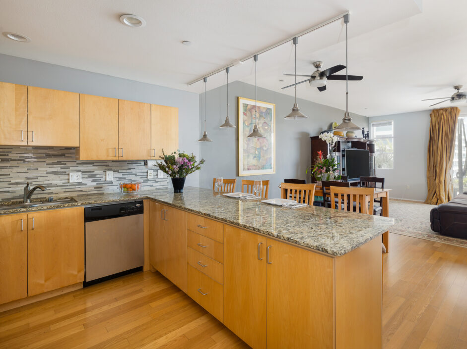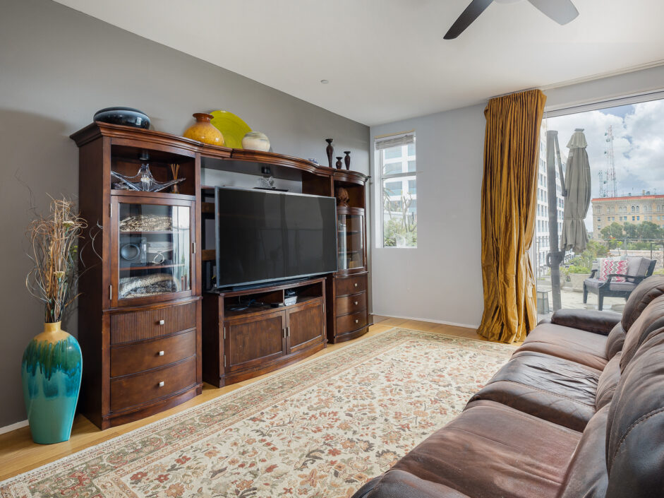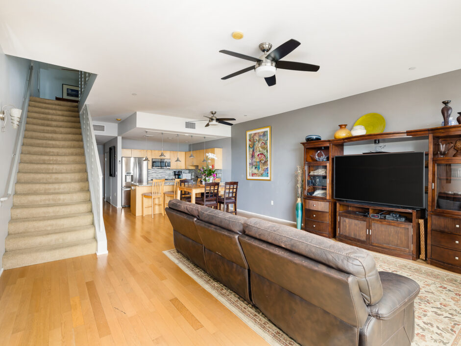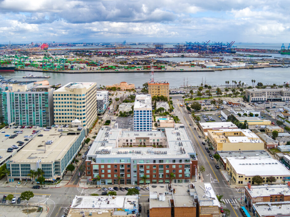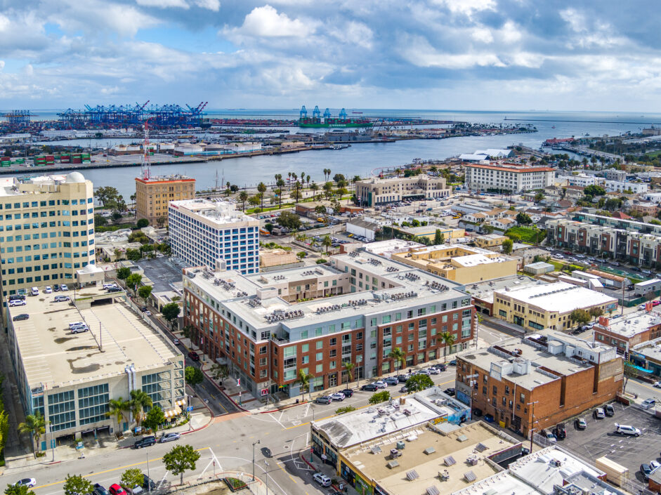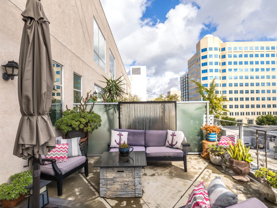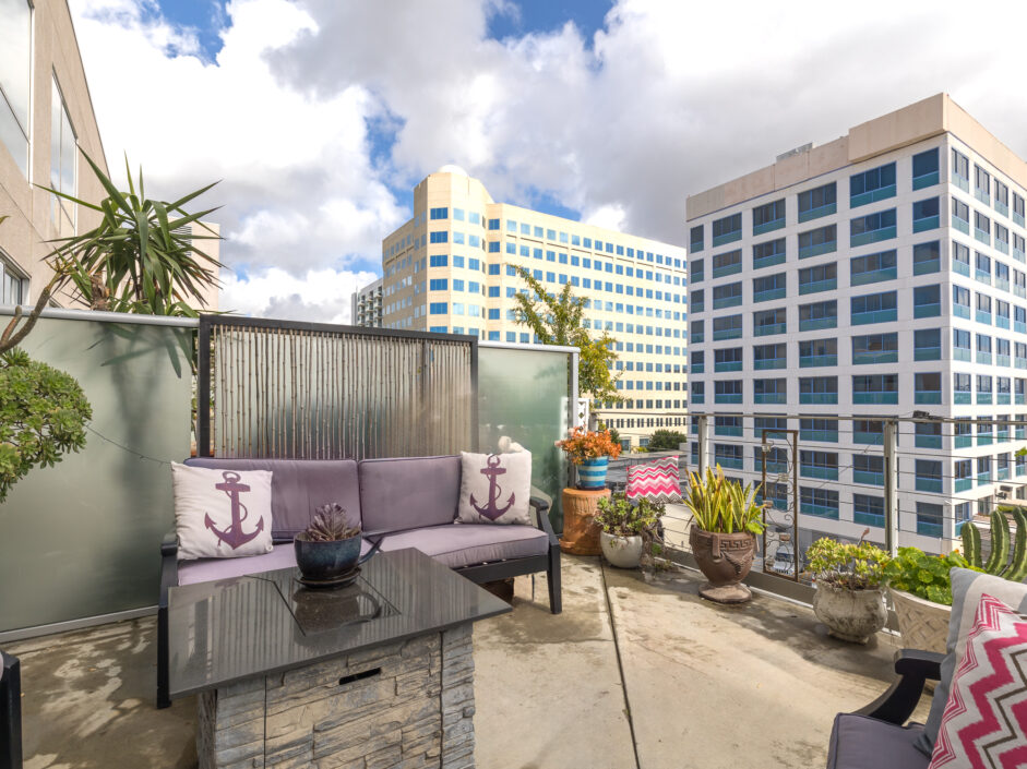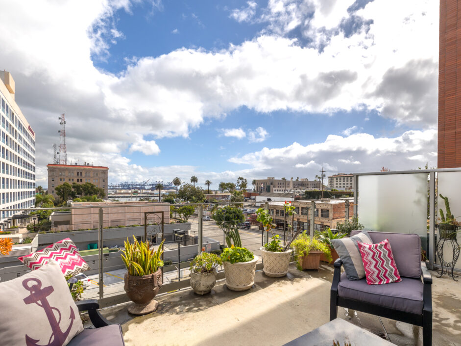 Location, location, location, perched in the most ideal position to take in the amazing views of the harbor channel and amazing ocean sunrises. The hard to find Harbor and ocean view home is over 1700 sq ft and ready for immediate move in. The first-floor open layout creates the ultimate first impression with a wall of glass opening to a 14 x 19 foot open air patio. Hardwood floors adorn the modern construction and are complimented by the granite kitchen with built-in appliances. Bar counter seating and designer lighting sets the tone for any gathering. Upstairs the master suite is sure to amaze with striking ocean and harbor views. The master bath enjoys a separate bathtub and shower. The home is designed to accommodate an additional loft bedroom and full bath as well as a small nursery room or potential office each with their own closet area. Additional features include inside laundry, ceiling fans, washer and dryer included, under the stair’s storage, access to the shared garden area, dining tables, BBQ, and lounge chairs. Two designated side-by-side parking spaces in the secured subterranean garage add an extra layer of comfort and security. Assigned parking space also includes electric vehicle charging capability. The Centre Street Loft building is strategically located just steps away from fine dining and shopping, making it a hub for urban living. Enjoy easy access to the Vincent Thomas Bridge, connecting you to the city’s pulse. Additionally, immerse yourself in the rich history of the area with the Battleship USS Iowa Museum and explore the wonders of the LA Harbor, both just a short distance away. Experience the epitome of Downtown living at 285 W 6th Street – where convenience meets charm. Be sure to schedule your personal showing appointment before it’s too late!