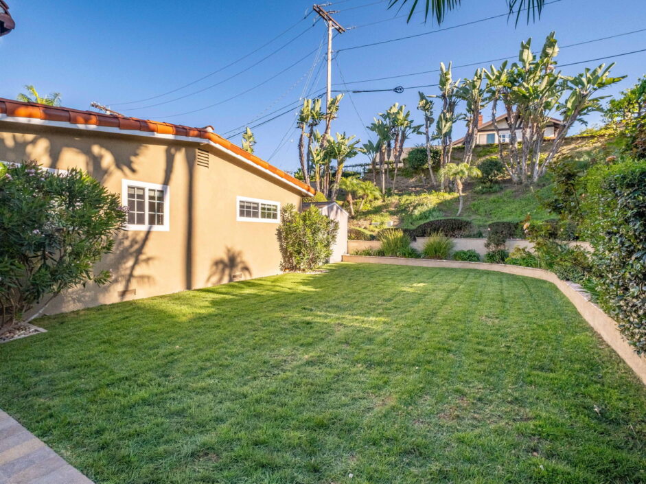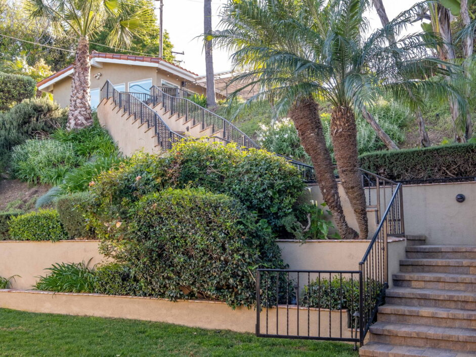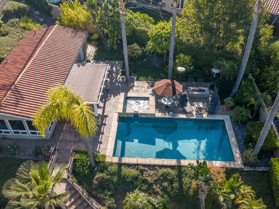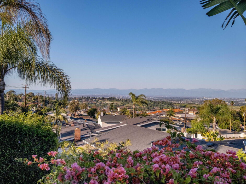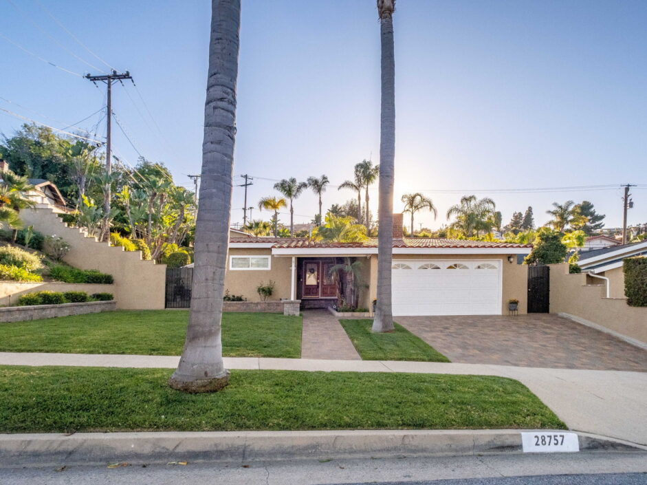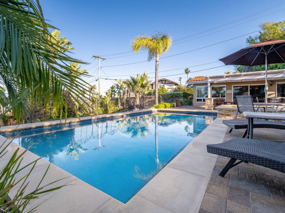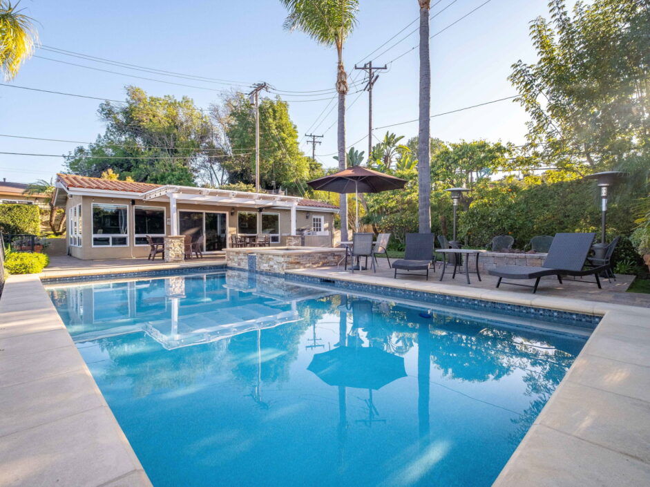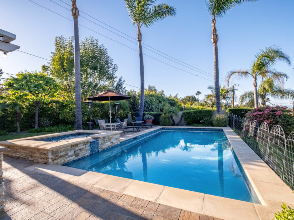 Enjoy resort-style living in this beautifully situated 3-bedroom, 2-bathroom home in Rancho Palos Verdes, offering breathtaking panoramic views from the Hollywood sign to downtown Los Angeles, the Queen Mary, the ocean, and surrounding mountains. The main residence features an inviting open floor plan, where the cozy granite kitchen flows seamlessly into the living room, highlighted by a charming stone fireplace and refinished wood flooring throughout. The kitchen includes LG appliances, a KitchenAid dishwasher, wine refrigerator and convenient indoor laundry just off the kitchen. Enjoy Al fresco dining off the covered patio that opens to a fire feature and large grassy yard. Situated on an expansive 10,000 sqft plus lot, the property also includes a separate 767 sqft back house with vaulted inlaid wood ceilings and a wall of glass creating the ultimate first impression. Complete with its own kitchen and bathroom, offering excellent flexibility for guests, extended family, or additional workspace. The outdoor space is a private fenced oasis, designed for both relaxation and entertaining. A sparkling pool and spa sits in front of the back house, perfectly positioned to capture the sweeping city, harbor, and ocean views. The grounds feature an expansive covered patio complimented with interlocking pavers and multiple fruit trees including lemon, tangerine, apple, and pomegranate, along with an outdoor grill and two outdoor fireplaces, creating the perfect setting for enjoying Southern California evenings. Located in a quiet neighborhood, this unique property combines privacy, award winning Palos Verdes Schools, stunning views and the feel of true resort-style living in Rancho Palos Verdes.