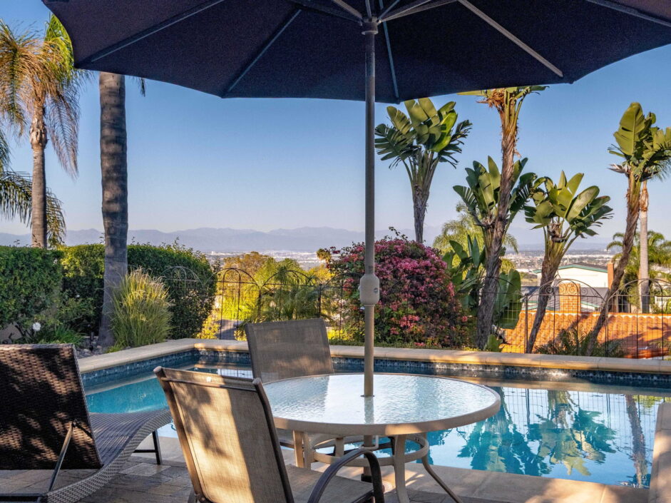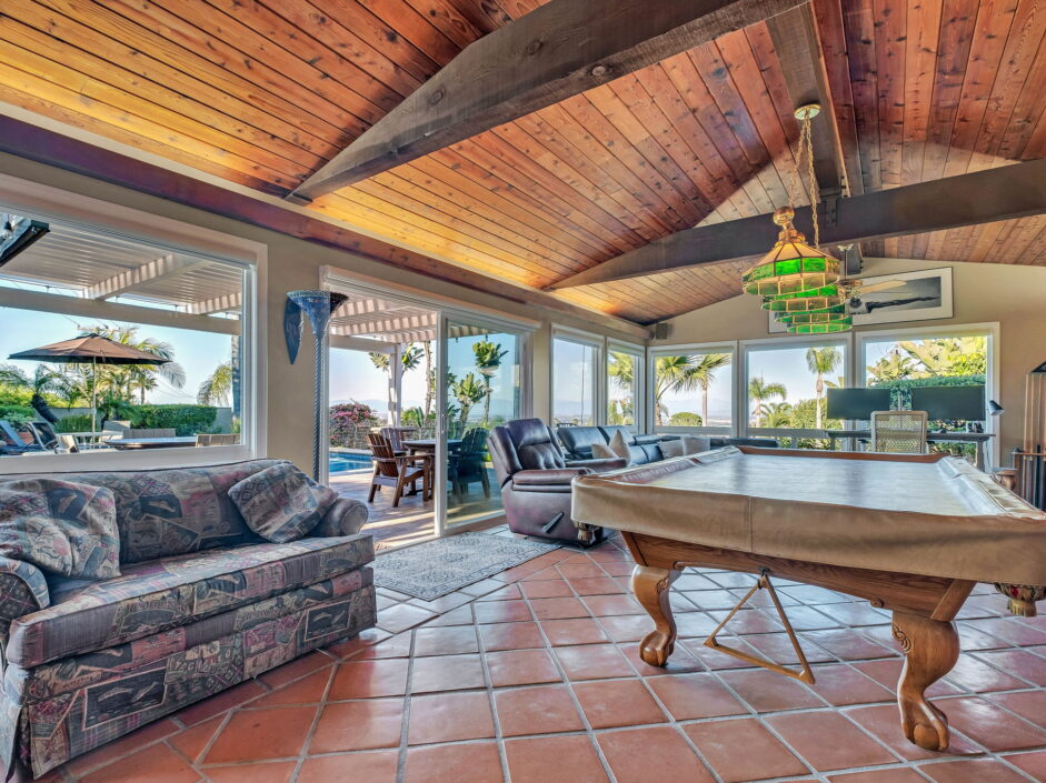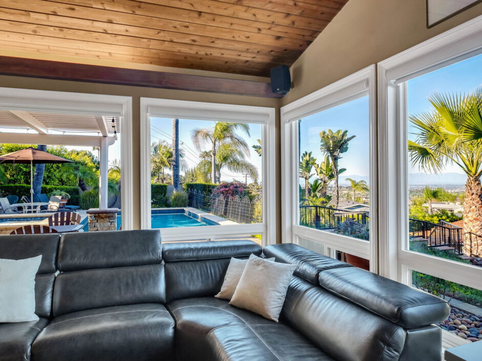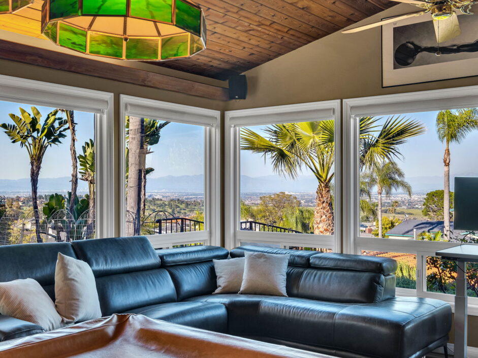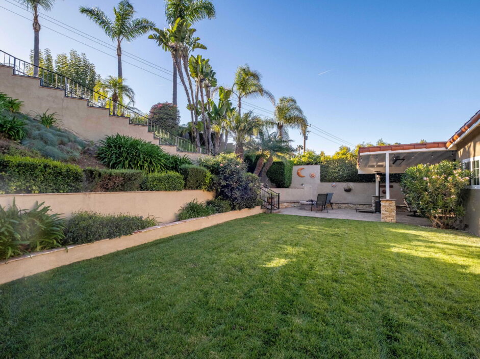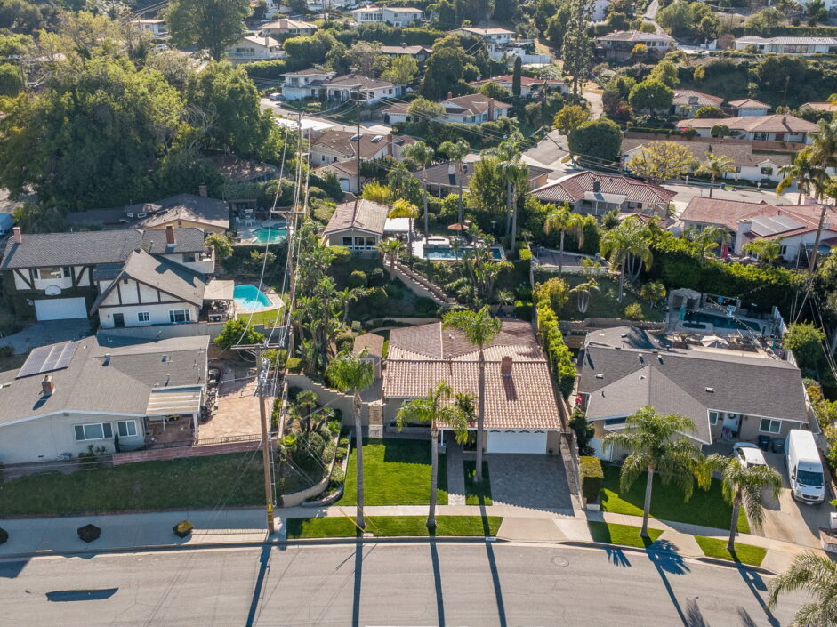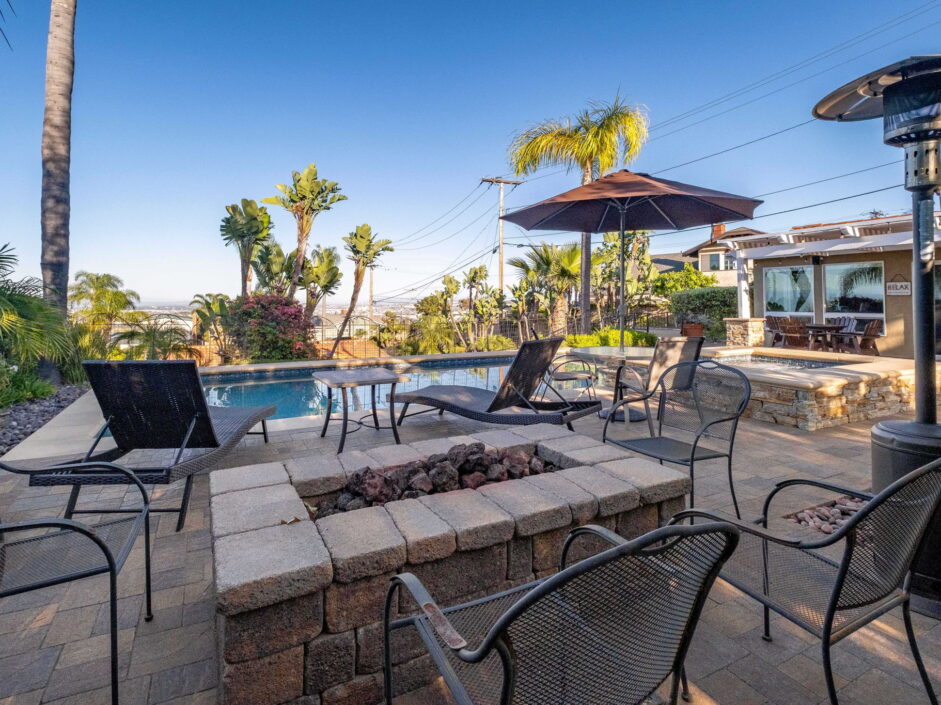 Enjoy resort-style living in this beautifully situated 3-bedroom, 2-bathroom home in Rancho Palos Verdes, offering breathtaking panoramic views from the Hollywood sign to downtown Los Angeles, the Queen Mary, the ocean, and surrounding mountains. The main residence features an inviting open floor plan, where the cozy granite kitchen flows seamlessly into the living room, highlighted by a charming stone fireplace and refinished wood flooring throughout. The kitchen includes LG appliances, a KitchenAid dishwasher, wine refrigerator and convenient indoor laundry just off the kitchen. Enjoy Al fresco dining off the covered patio that opens to a fire feature and large grassy yard. Situated on an expansive 10,000 sqft plus lot, the property also includes a separate 767 sqft back house with vaulted inlaid wood ceilings and a wall of glass creating the ultimate first impression. Complete with its own kitchen and bathroom, offering excellent flexibility for guests, extended family, or additional workspace. The outdoor space is a private fenced oasis, designed for both relaxation and entertaining. A sparkling pool and spa sits in front of the back house, perfectly positioned to capture the sweeping city, harbor, and ocean views. The grounds feature an expansive covered patio complimented with interlocking pavers and multiple fruit trees including lemon, tangerine, apple, and pomegranate, along with an outdoor grill and two outdoor fireplaces, creating the perfect setting for enjoying Southern California evenings. Located in a quiet neighborhood, this unique property combines privacy, award winning Palos Verdes Schools, stunning views and the feel of true resort-style living in Rancho Palos Verdes.