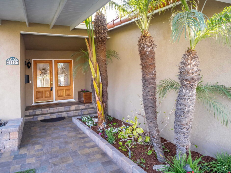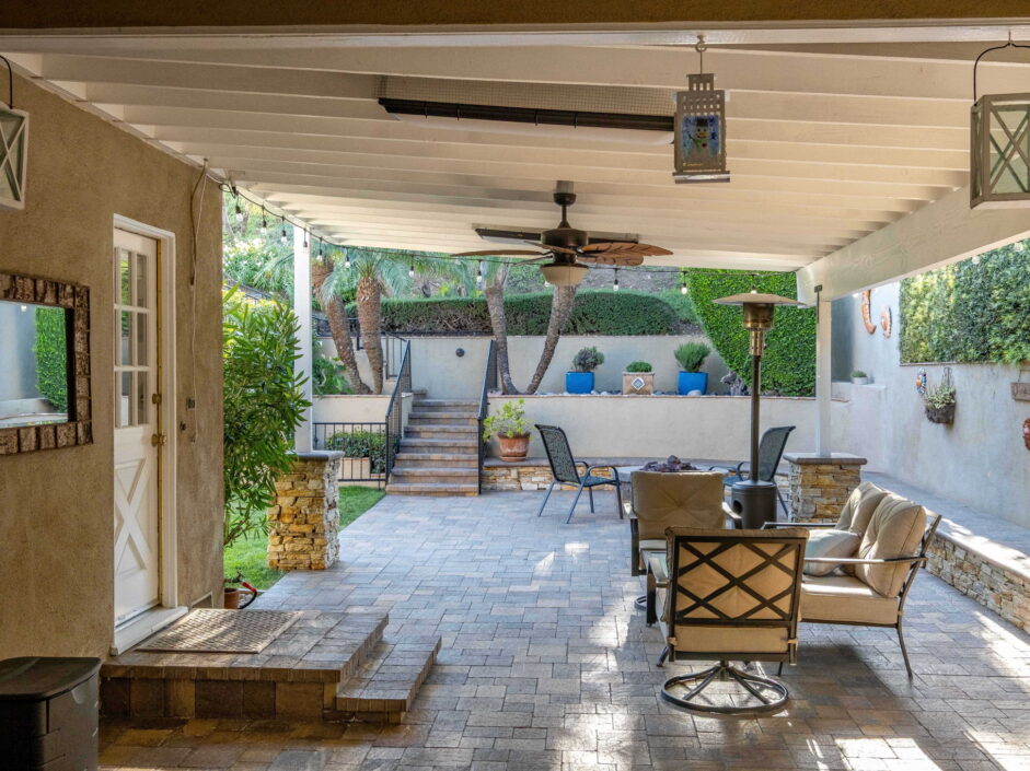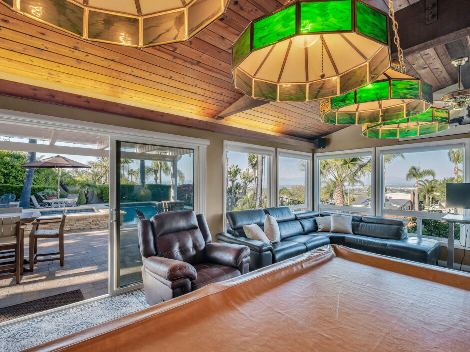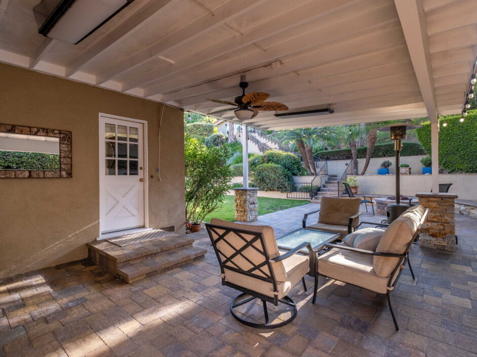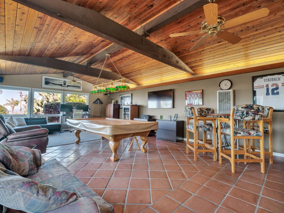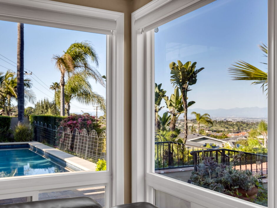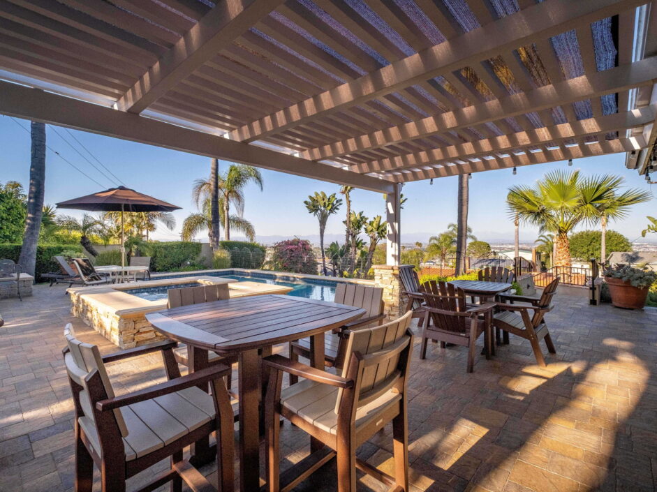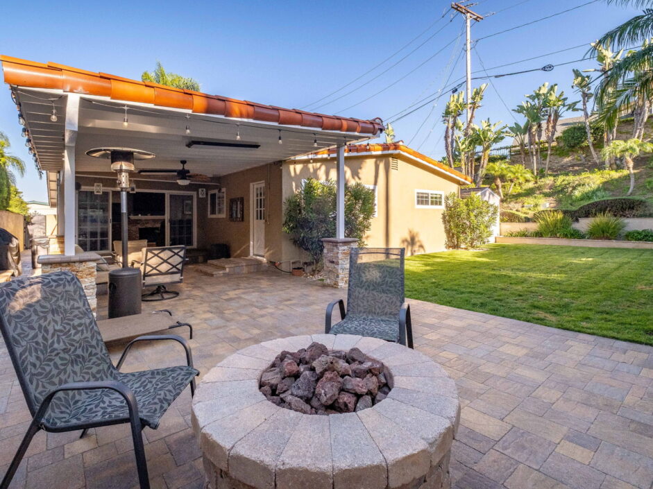 Enjoy resort-style living in this beautifully situated 3-bedroom, 2-bathroom home in Rancho Palos Verdes, offering breathtaking panoramic views from the Hollywood sign to downtown Los Angeles, the Queen Mary, the ocean, and surrounding mountains. The main residence features an inviting open floor plan, where the cozy granite kitchen flows seamlessly into the living room, highlighted by a charming stone fireplace and refinished wood flooring throughout. The kitchen includes LG appliances, a KitchenAid dishwasher, wine refrigerator and convenient indoor laundry just off the kitchen. Enjoy Al fresco dining off the covered patio that opens to a fire feature and large grassy yard. Situated on an expansive 10,000 sqft plus lot, the property also includes a separate 767 sqft back house with vaulted inlaid wood ceilings and a wall of glass creating the ultimate first impression. Complete with its own kitchen and bathroom, offering excellent flexibility for guests, extended family, or additional workspace. The outdoor space is a private fenced oasis, designed for both relaxation and entertaining. A sparkling pool and spa sits in front of the back house, perfectly positioned to capture the sweeping city, harbor, and ocean views. The grounds feature an expansive covered patio complimented with interlocking pavers and multiple fruit trees including lemon, tangerine, apple, and pomegranate, along with an outdoor grill and two outdoor fireplaces, creating the perfect setting for enjoying Southern California evenings. Located in a quiet neighborhood, this unique property combines privacy, award winning Palos Verdes Schools, stunning views and the feel of true resort-style living in Rancho Palos Verdes.