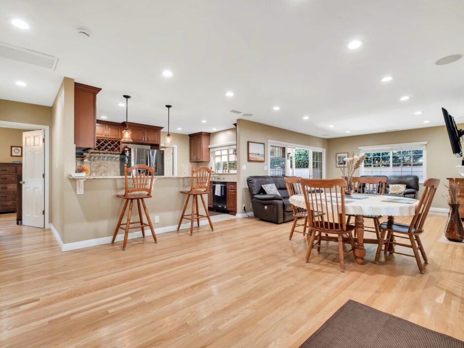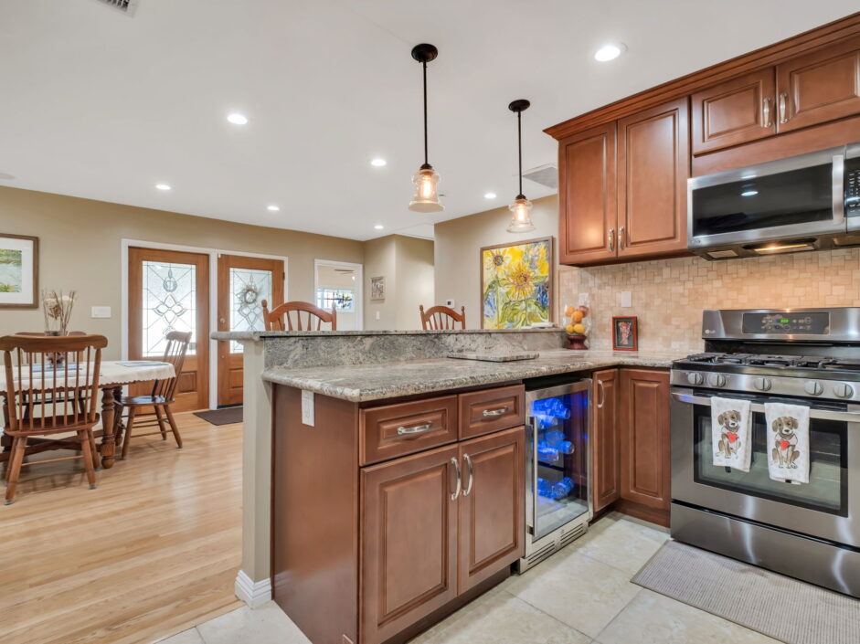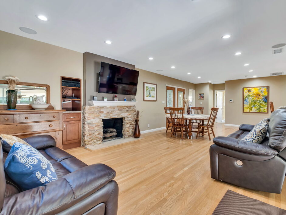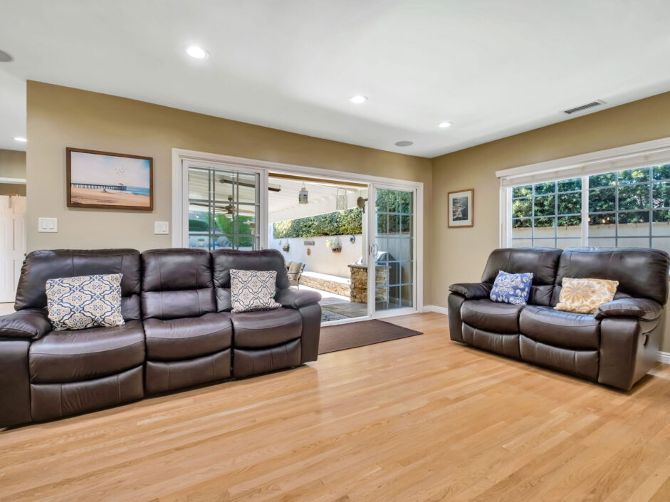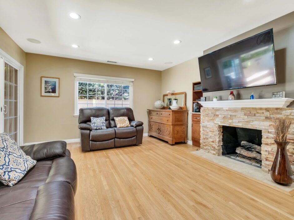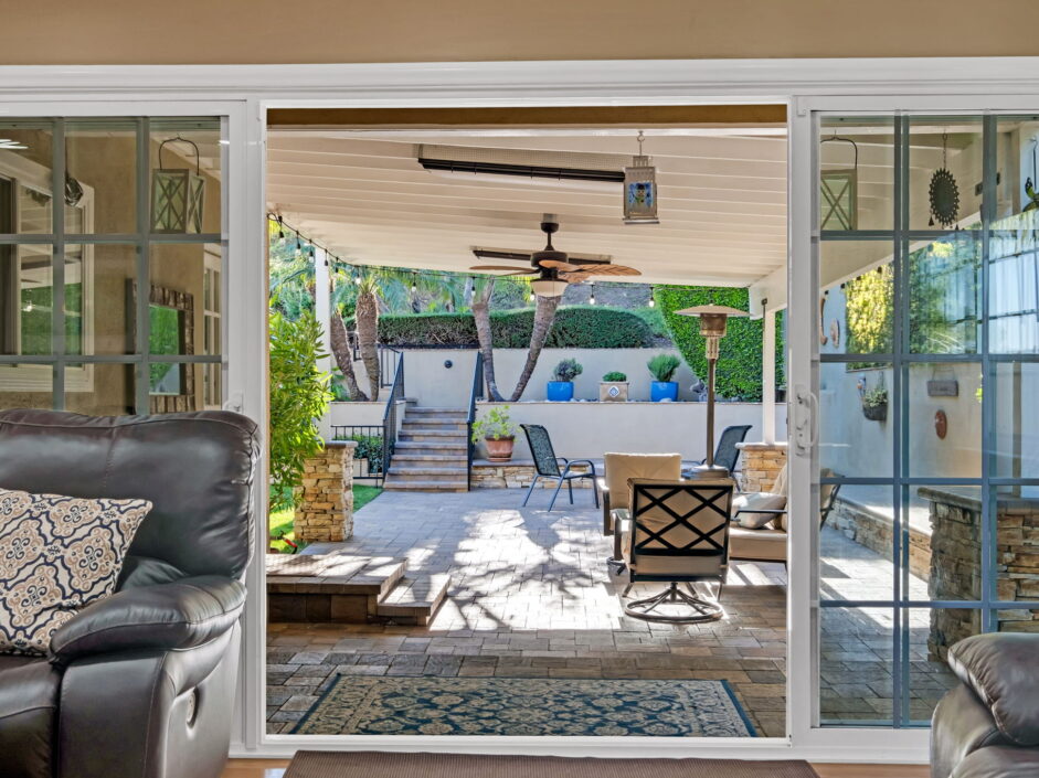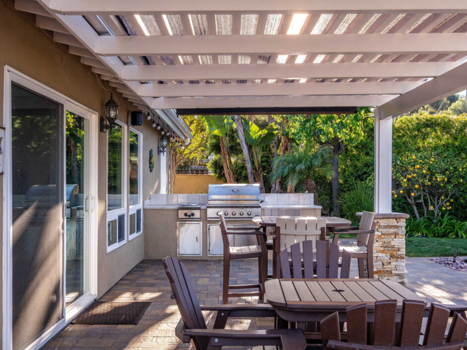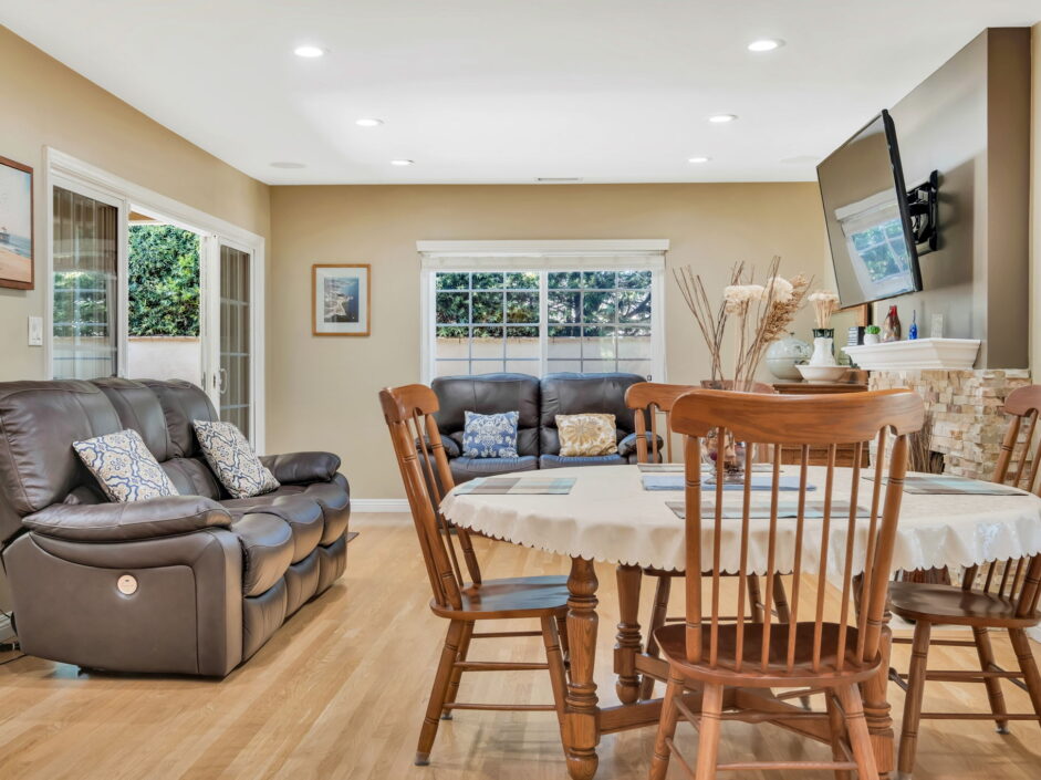 Enjoy resort-style living in this beautifully situated 3-bedroom, 2-bathroom home in Rancho Palos Verdes, offering breathtaking panoramic views from the Hollywood sign to downtown Los Angeles, the Queen Mary, the ocean, and surrounding mountains. The main residence features an inviting open floor plan, where the cozy granite kitchen flows seamlessly into the living room, highlighted by a charming stone fireplace and refinished wood flooring throughout. The kitchen includes LG appliances, a KitchenAid dishwasher, wine refrigerator and convenient indoor laundry just off the kitchen. Enjoy Al fresco dining off the covered patio that opens to a fire feature and large grassy yard. Situated on an expansive 10,000 sqft plus lot, the property also includes a separate 767 sqft back house with vaulted inlaid wood ceilings and a wall of glass creating the ultimate first impression. Complete with its own kitchen and bathroom, offering excellent flexibility for guests, extended family, or additional workspace. The outdoor space is a private fenced oasis, designed for both relaxation and entertaining. A sparkling pool and spa sits in front of the back house, perfectly positioned to capture the sweeping city, harbor, and ocean views. The grounds feature an expansive covered patio complimented with interlocking pavers and multiple fruit trees including lemon, tangerine, apple, and pomegranate, along with an outdoor grill and two outdoor fireplaces, creating the perfect setting for enjoying Southern California evenings. Located in a quiet neighborhood, this unique property combines privacy, award winning Palos Verdes Schools, stunning views and the feel of true resort-style living in Rancho Palos Verdes.