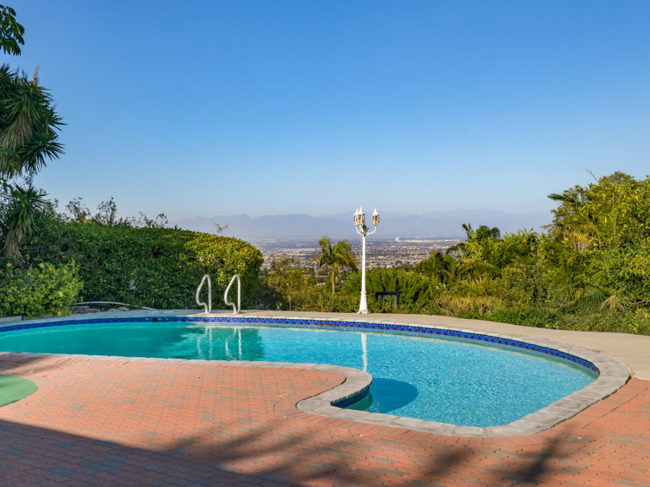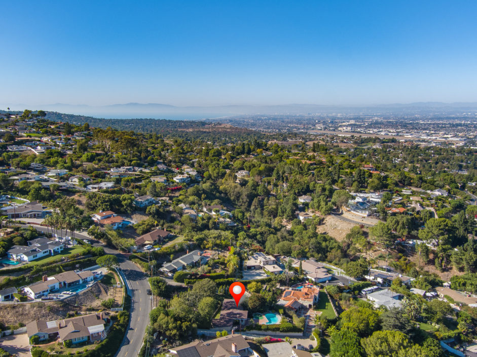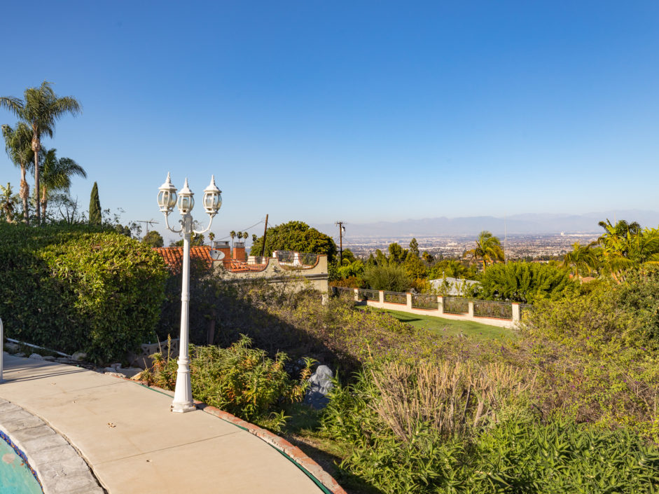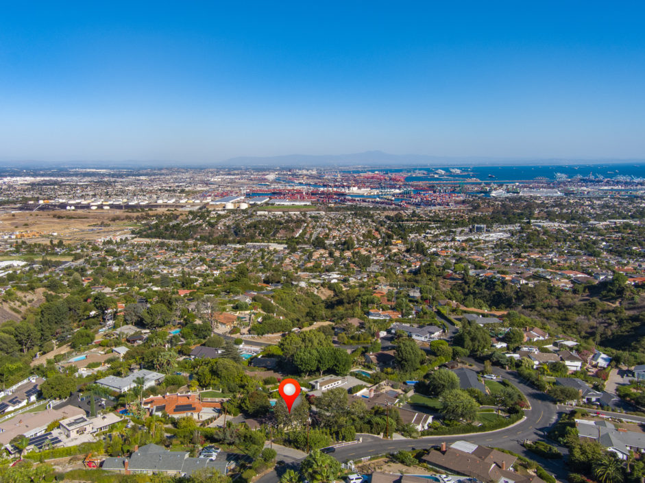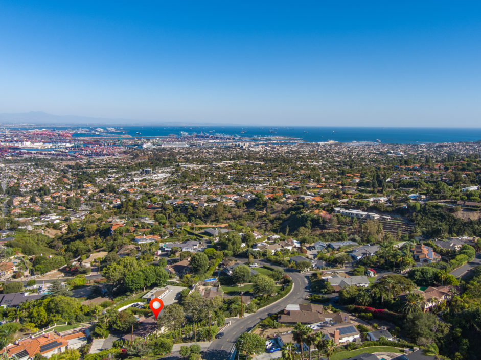 Gated Rancho Palos Verdes View Home. The sprawling driveway opens to amazing lush landscaping and a huge motor-court, allowing easy access and parking. The private setting is surrounded by mature trees and is anchored by a refreshing pool situated to take in the incredible views of ocean, city and harbor. Designer floors open to an inviting fireplace and family room. The newly remodeled kitchen enjoys quartz counters and stainless steel appliances including a Viking industrial stove and ventilation system, Sub Zero refrigerator, and is complimented by a bay window that showers the room with light. Additional features include separate laundry room, crown molding, two fireplaces, and access to the award wining Palos Verdes school system.