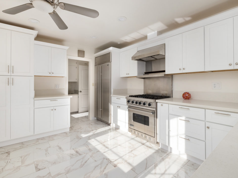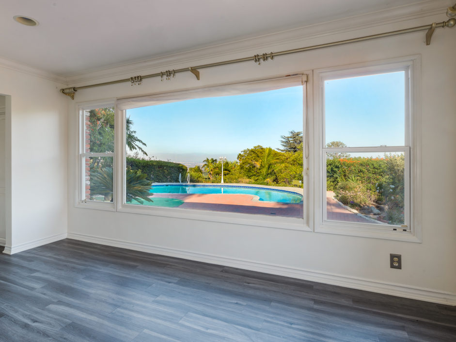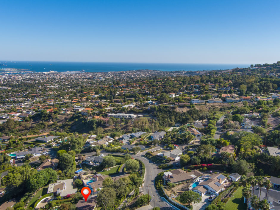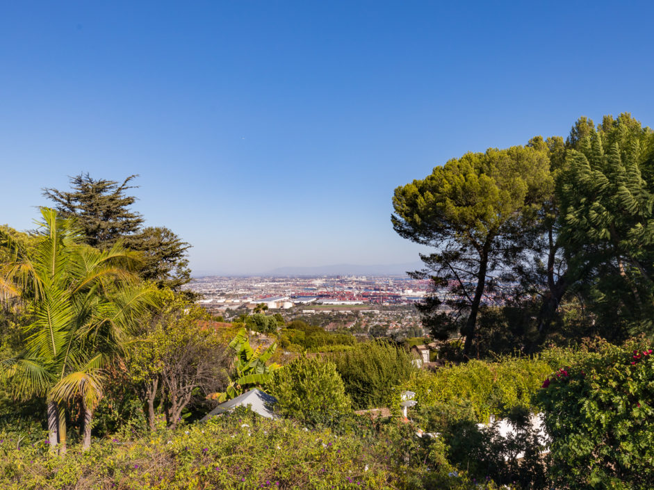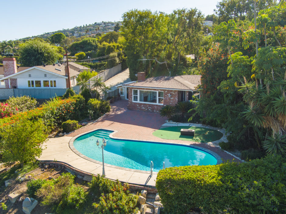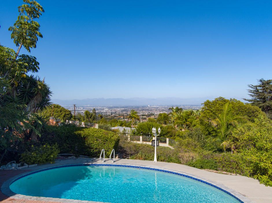 Gated Rancho Palos Verdes View Home. The sprawling driveway opens to amazing lush landscaping and a huge motor-court, allowing easy access and parking. The private setting is surrounded by mature trees and is anchored by a refreshing pool situated to take in the incredible views of ocean, city and harbor. Designer floors open to an inviting fireplace and family room. The newly remodeled kitchen enjoys quartz counters and stainless steel appliances including a Viking industrial stove and ventilation system, Sub Zero refrigerator, and is complimented by a bay window that showers the room with light. Additional features include separate laundry room, crown molding, two fireplaces, and access to the award wining Palos Verdes school system.