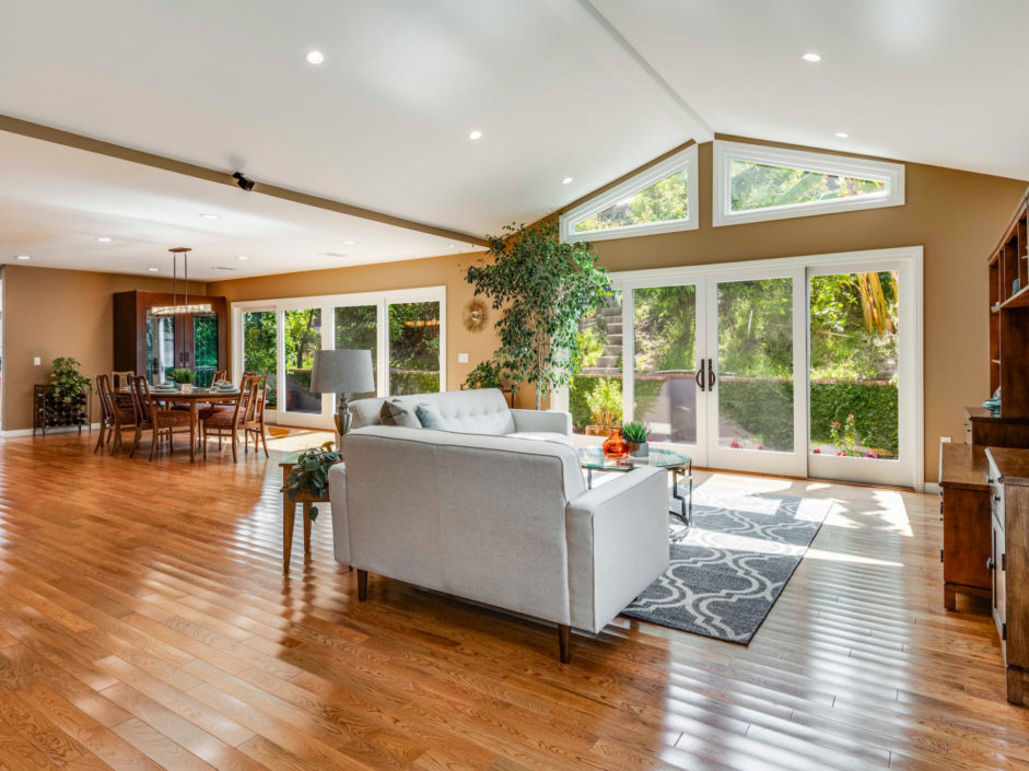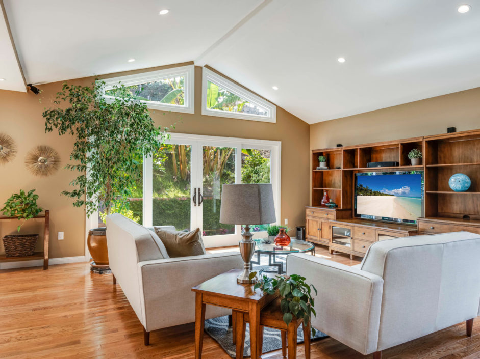 WATCH OUR CINEMA SERIES MOVIEWelcome to this custom open aired sanctuary in Rancho Palos Verdes. The property is located on a double lot and freshly remodeled in 2016. The entrance is adorned with hardwood floors that continue through the expansive single level layout. The great room breathes in tremendous light from the properly placed windows and copious sliders that overlook the outdoor gardens. The home organically flows from foyer, bar, dining, cooking, and living spaces with relaxing nooks sprinkled throughout. The truly unique kitchen mixes cooling backsplashes, warm cabinetry, double door walk-in pantry, and cobalt center island with complimenting industrial stainless steel counters. The vaulted living room spaces enjoy a scenic backdrop of fruits, flowers, and vibrant banana leaves. The lush landscape has hidden gems including: detached guest quarters with private balcony, brick inlaid tile lined jacuzzi, custom sauna with shower, rock fish fountain, and large patio space that picks up views of the LA Harbor and Pacific Ocean. Mature fruits trees and vegetation thriving around these amenities include: avocado, grapefruit, lemon, peach, fig, apple, orange, plum, mango, tangerine, pear, and lime. Two zoned for A/C and heat, solar panels installed, 2-car garage plus secondary RV parking station with automatic gate, and incredibly manicured throughout make this an incredible Palos Verdes property.