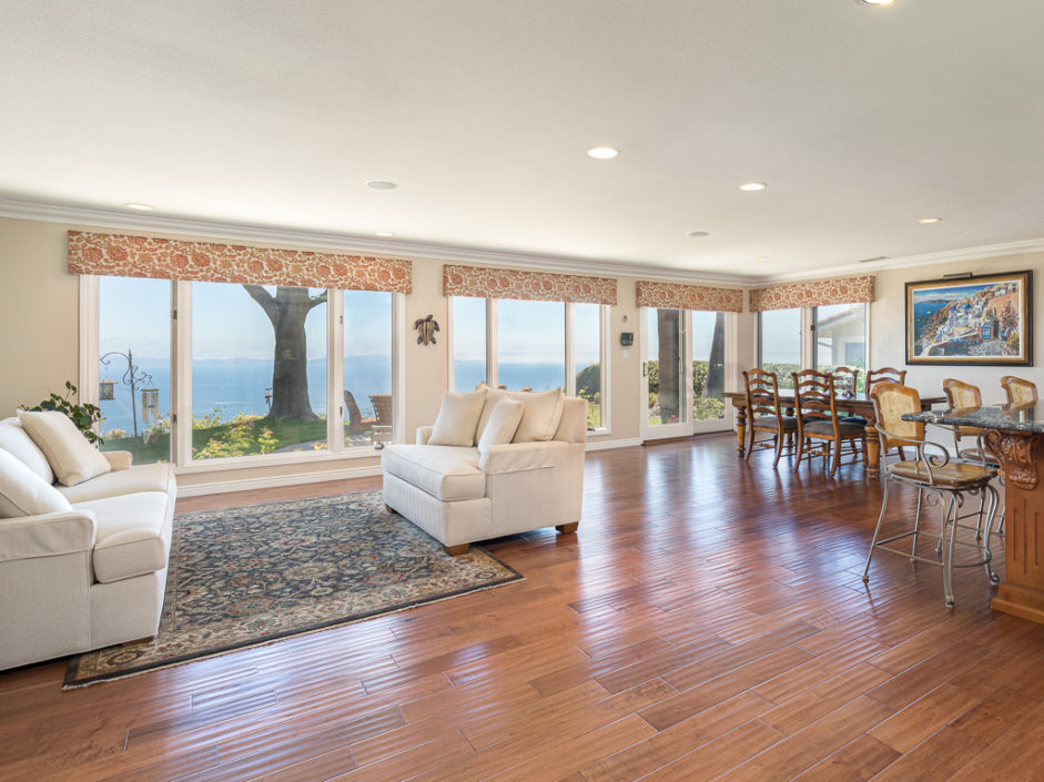 The best view on the Peninsula! Ocean – Catalina – Golf Course. This extraordinary home sits on one of the few coveted view lots located at the top of Ganado Drive. The street level location offers the best position to take in all of the California coastline. The open floor plan was created by removing all the interior walls that open to the view creating the ultimate great room. The home boats a remodeled gourmet kitchen with center Island engulfed in granite and a multi-layered travertine backsplash. A wall of glass allows the outdoors to surround the interior living area that will impress any friends or guests. A step down family room is equipped with a surround music and theater experience. The master suite is situated on the view side of the property enjoys a remodeled bath and numerious upgrades. Ocean vessels of all kinds will dazzle the eyes while migrating whales & dolphins capture the imagination. Red-tail hawks & local owls will also amaze. A new solar system was just bought and paid for, nearly eliminating a monthly electricity bill. The rear grounds are truly one of a kind with massive grass area complimented with a stone patio lined with mature palm trees. Homeowners enjoy some of the best schools in the country as well as access to some of the best parks and hiking trails on the peninsula. There are simply too many features to list! You have to see it to appreciate.