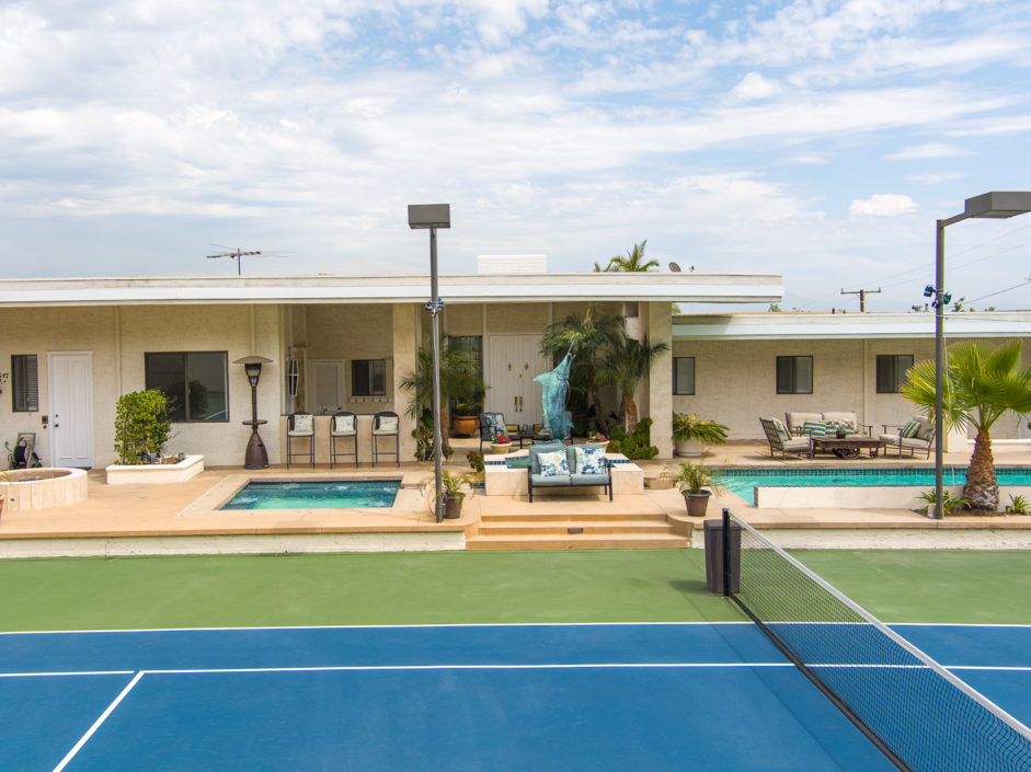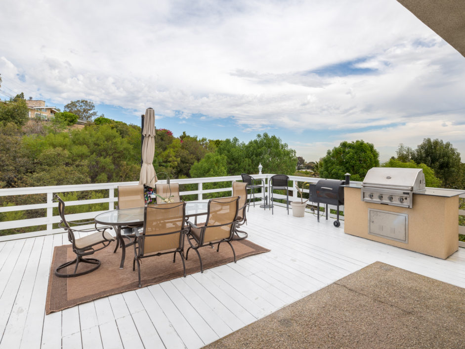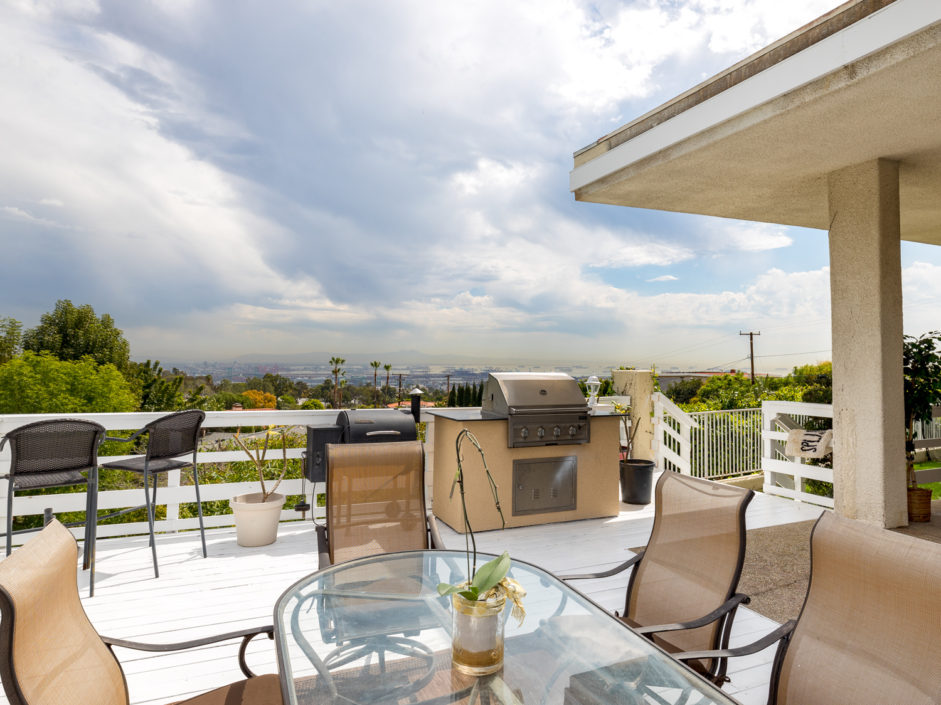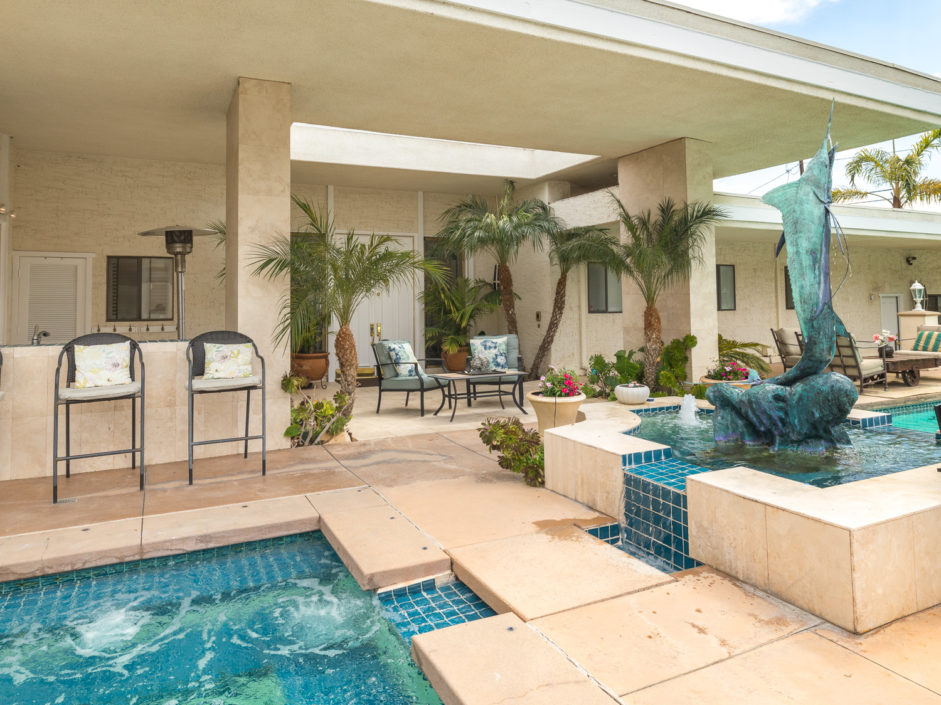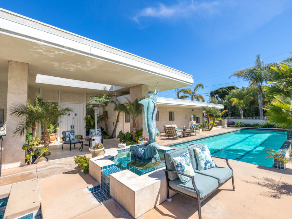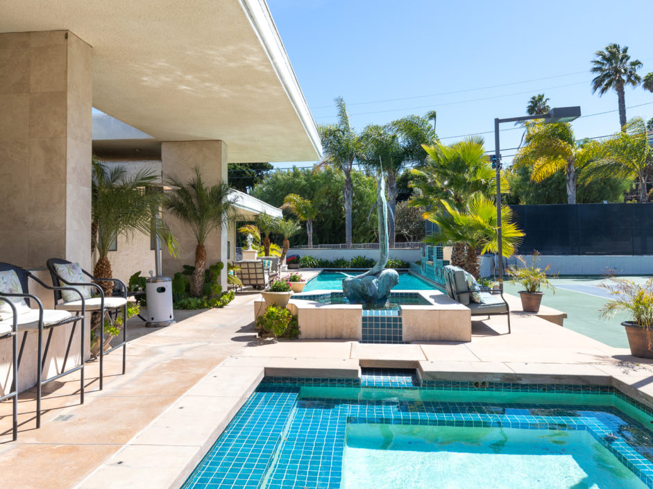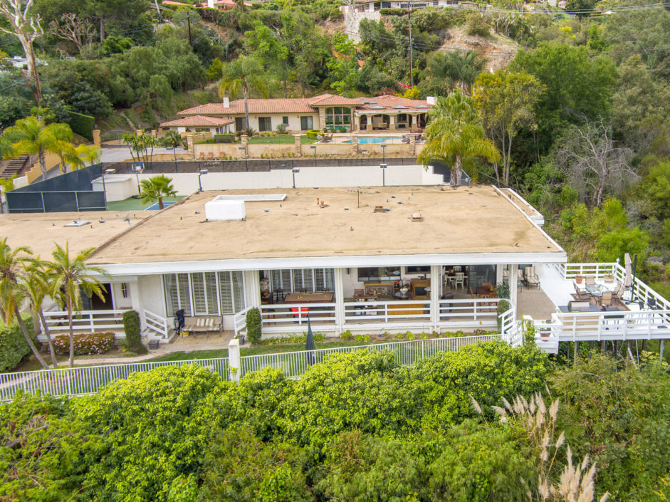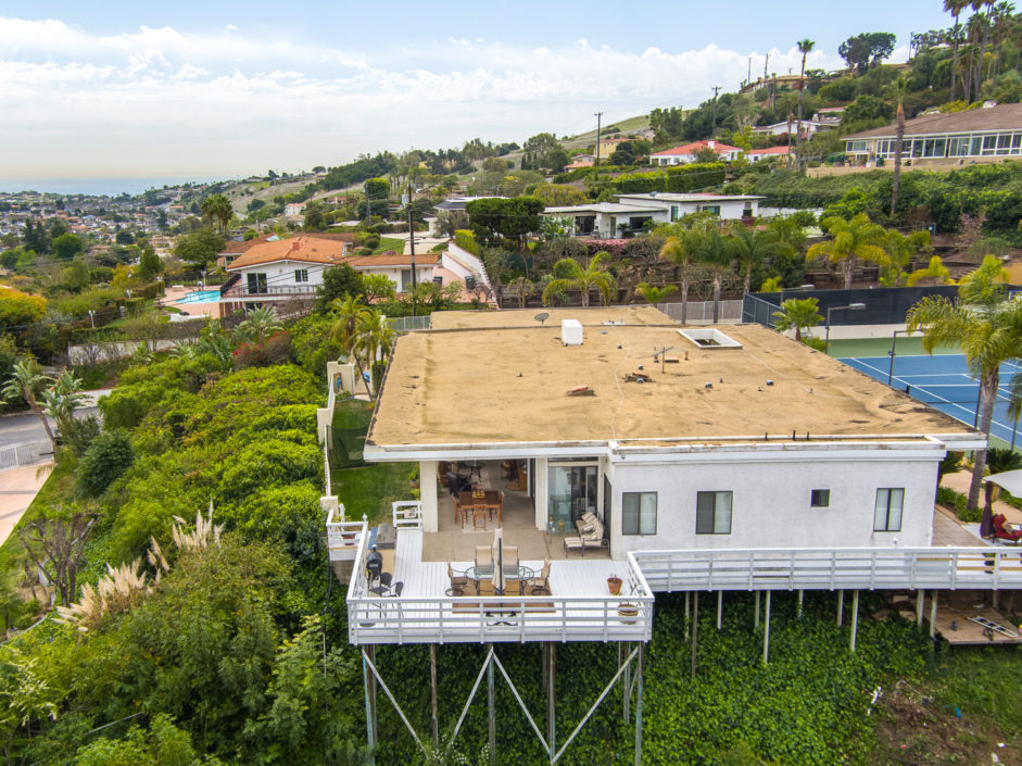 Gated tennis estate in Palos Verdes with panoramic harbor and ocean views positioned on a 32,000 sq.ft. lot. The rare regulation sized tennis court is lighted and situated next to a 45 foot swimming pool and spa with waterfall features, automatic cover, and fiber optic outdoor lighting and sound system. The center fountain feeds into both the pool and an adjacent oversized Jacuzzi. Contains over 1000 square feet of covered patio decks, beautiful landscaping, fire pit, cabana, outdoor wet bar and gas BBQ ideal for outdoor enjoyment and perfect for entertaining. Harbor views in a pastoral canyon setting. Home was completely remodeled in 2014, including a separated guest suite. The gourmet kitchen is encased in granite counters and designer cabinets. A stainless appliance package completes the culinary experience. Large master suite with huge walk-in closet. Additional features include 8 foot doors, air conditioning, and huge grassy side yard. Three car garage with outdoor covered parking for boat or RV. This home is not situated on Miraleste Drive but rather toward the end of a private street called Rich Lane with gated access.