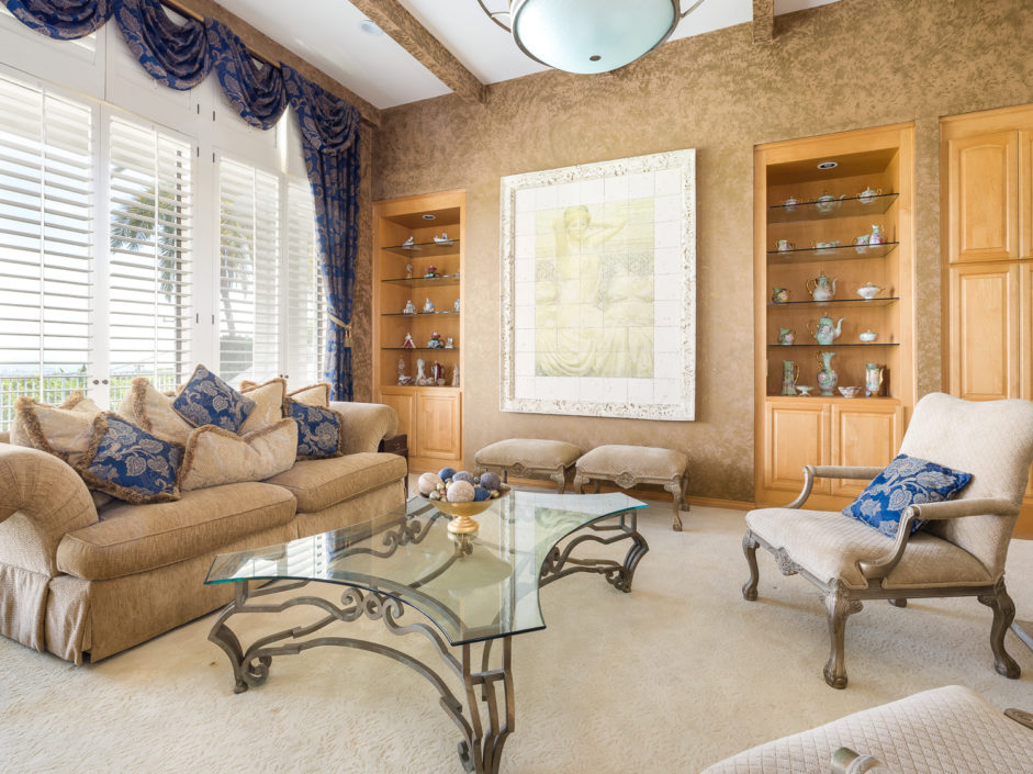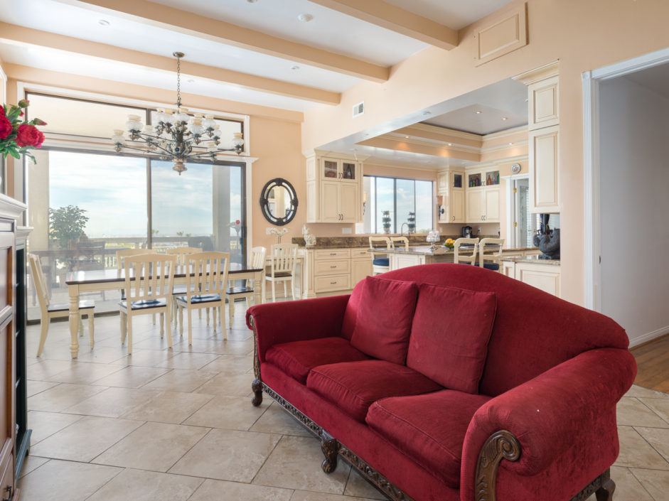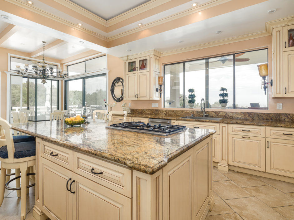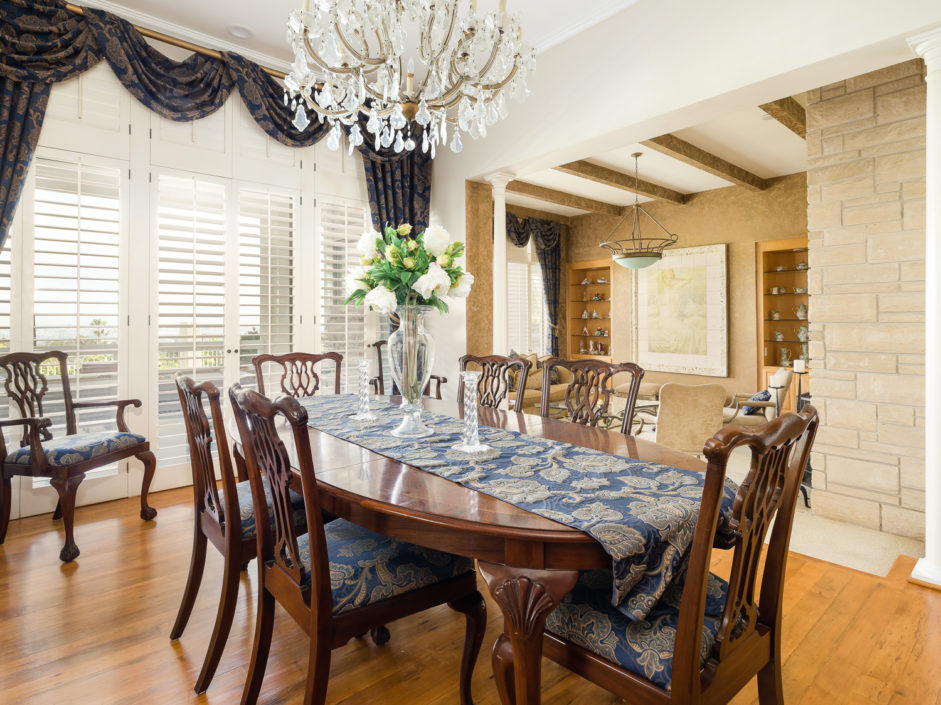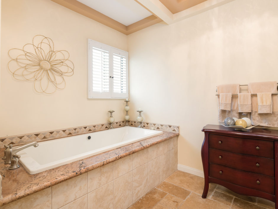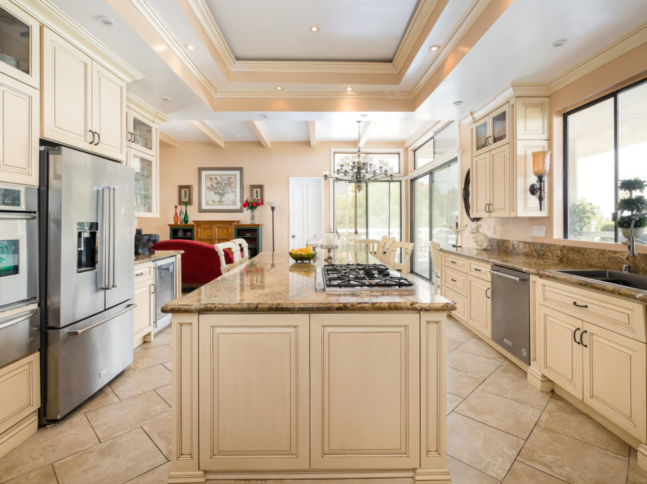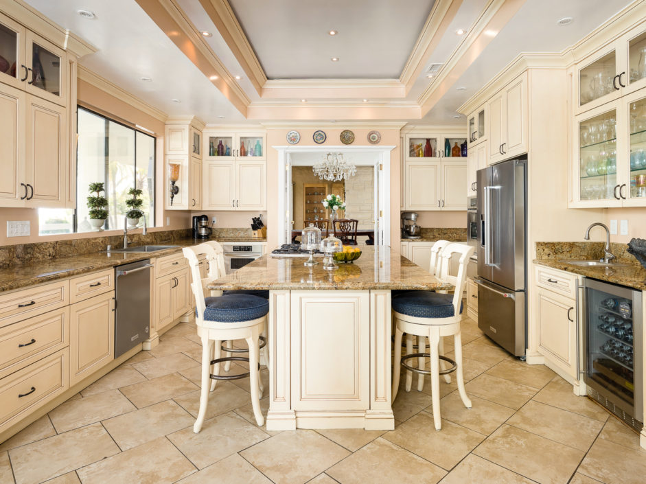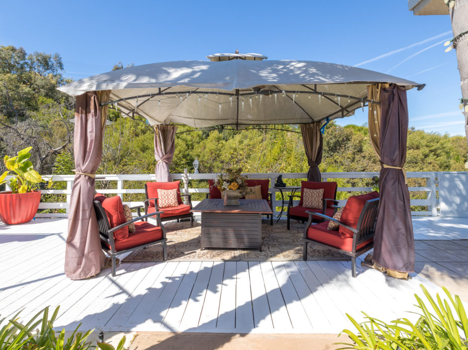 Gated tennis estate in Palos Verdes with panoramic harbor and ocean views positioned on a 32,000 sq.ft. lot. The rare regulation sized tennis court is lighted and situated next to a 45 foot swimming pool and spa with waterfall features, automatic cover, and fiber optic outdoor lighting and sound system. The center fountain feeds into both the pool and an adjacent oversized Jacuzzi. Contains over 1000 square feet of covered patio decks, beautiful landscaping, fire pit, cabana, outdoor wet bar and gas BBQ ideal for outdoor enjoyment and perfect for entertaining. Harbor views in a pastoral canyon setting. Home was completely remodeled in 2014, including a separated guest suite. The gourmet kitchen is encased in granite counters and designer cabinets. A stainless appliance package completes the culinary experience. Large master suite with huge walk-in closet. Additional features include 8 foot doors, air conditioning, and huge grassy side yard. Three car garage with outdoor covered parking for boat or RV. This home is not situated on Miraleste Drive but rather toward the end of a private street called Rich Lane with gated access.