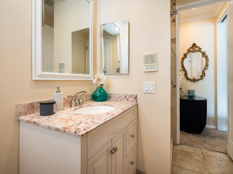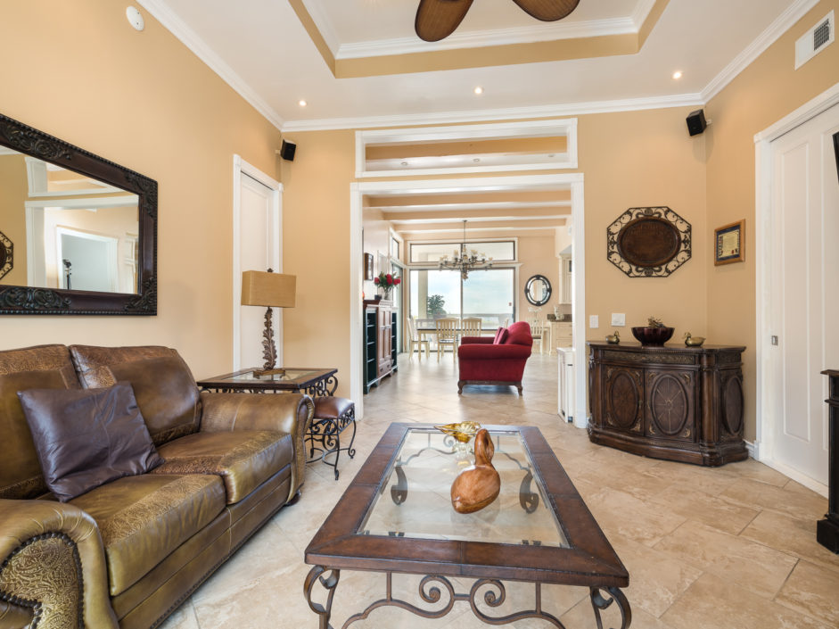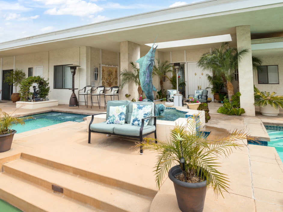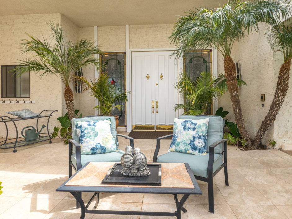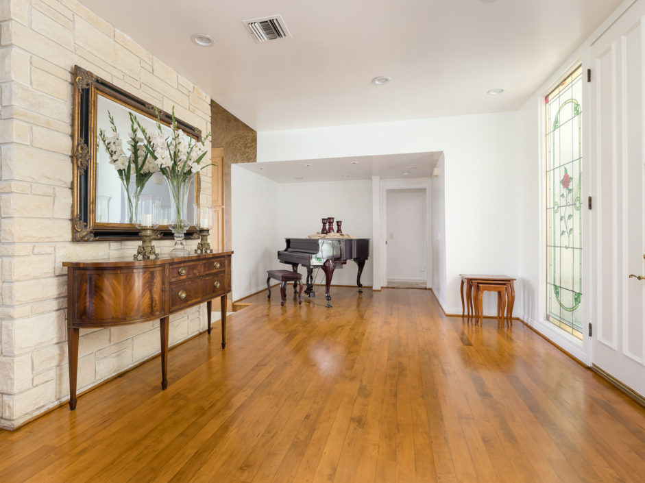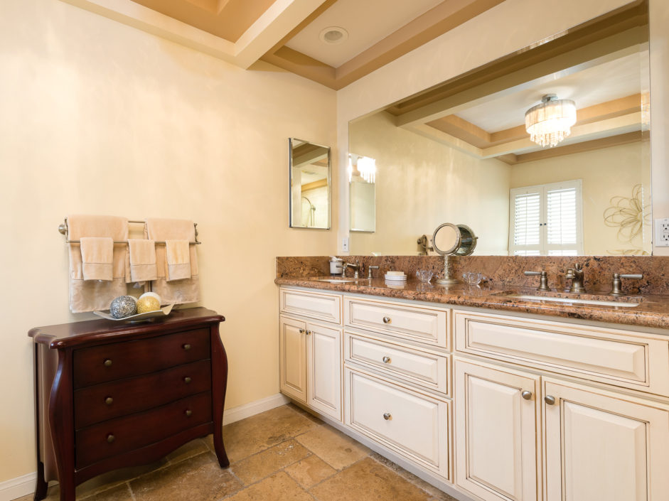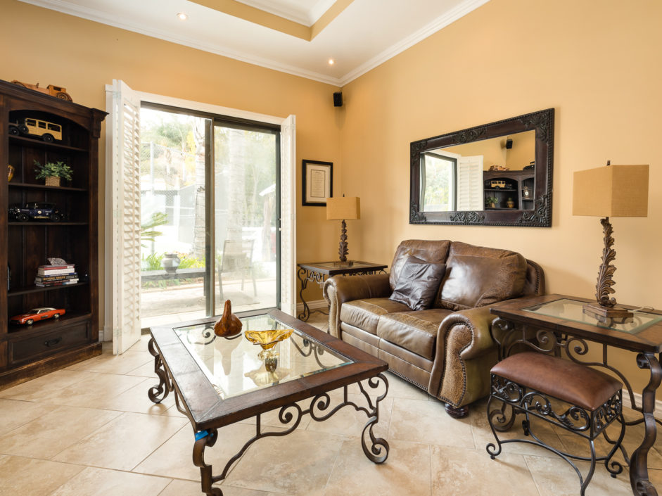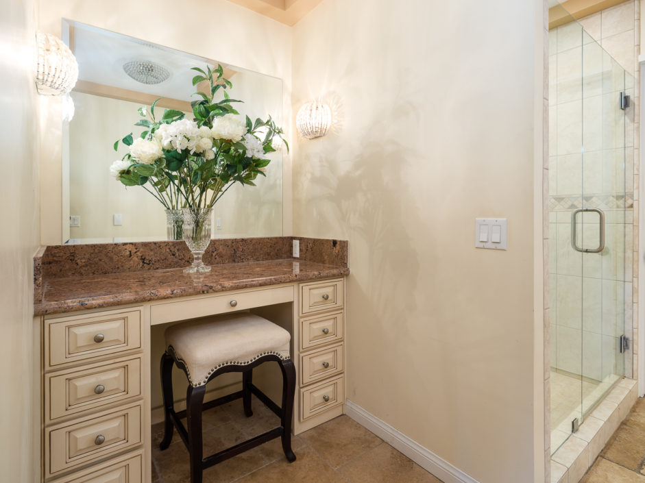 Gated tennis estate in Palos Verdes with panoramic harbor and ocean views positioned on a 32,000 sq.ft. lot. The rare regulation sized tennis court is lighted and situated next to a 45 foot swimming pool and spa with waterfall features, automatic cover, and fiber optic outdoor lighting and sound system. The center fountain feeds into both the pool and an adjacent oversized Jacuzzi. Contains over 1000 square feet of covered patio decks, beautiful landscaping, fire pit, cabana, outdoor wet bar and gas BBQ ideal for outdoor enjoyment and perfect for entertaining. Harbor views in a pastoral canyon setting. Home was completely remodeled in 2014, including a separated guest suite. The gourmet kitchen is encased in granite counters and designer cabinets. A stainless appliance package completes the culinary experience. Large master suite with huge walk-in closet. Additional features include 8 foot doors, air conditioning, and huge grassy side yard. Three car garage with outdoor covered parking for boat or RV. This home is not situated on Miraleste Drive but rather toward the end of a private street called Rich Lane with gated access.