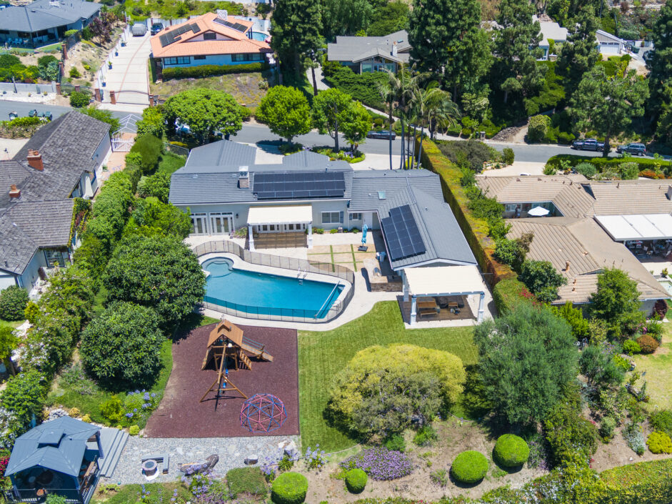 Gorgeous newly remodeled with stunning views of the ocean and Catalina, the moment you walk to the front door. Nestled on a tree lined cul-de-sac in Rancho Palos Verdes, this modern chic home is the perfect find for your family. The home has 3,553 square feet of living space, 5 bedrooms plus office and 6 bathrooms, which makes it ideal for entertaining. A custom front door opens to rustic hardwood flooring, the living room anchored by a gorgeous fireplace and a wall of glass exposing the amazing views of the ocean. A spacious family room with fireplace opens to a private dining room that are complimented by soaring coffered ceilings. The gourmet kitchen is engulfed in designer quartzite stone counters and enjoys new modern all wood cabinets with soft-close doors and drawers. A Thermador Frig and new double ovens and new stove top creates the ultimate cooking venue that any chef would appreciate. Farmers sink and multiple custom pull outs complete the culinary experience. The master suite opens to jaw dropping ocean and Catalina views and enjoys a spa infused master bathroom with separate tub and shower. Rear yard is one of the best I have ever seen with a lovely pool, numerous covered patios, outdoor kitchen, gazebo, and kids playground, and all of it taking in the amazing views. Additional features include fully paid solar system, two AC units, 800 bottle wine cellar, gorgeous fish aquarium, metal roof with 50 year warranty, water softener system, over sized 2 car garage, numerous fruit trees and so much more. Easy freeway access for downtown LA commutes and Top Ranked Palos Verdes Schools. Less than 10 minutes to freeway access, Terranea Resort and Trump National Golf Course. The home comes fully furnished