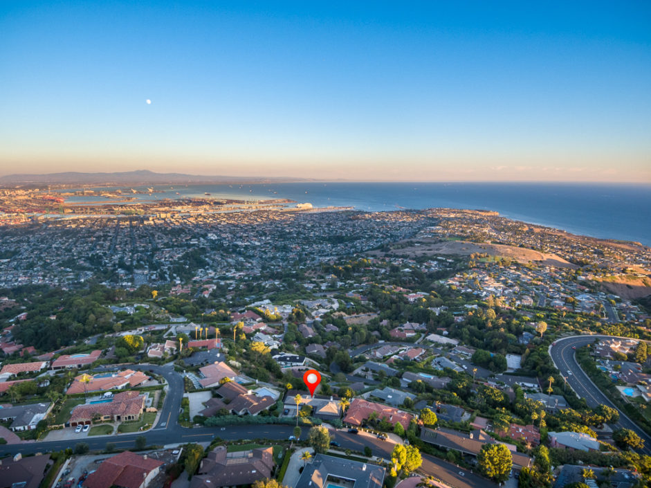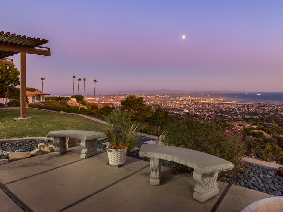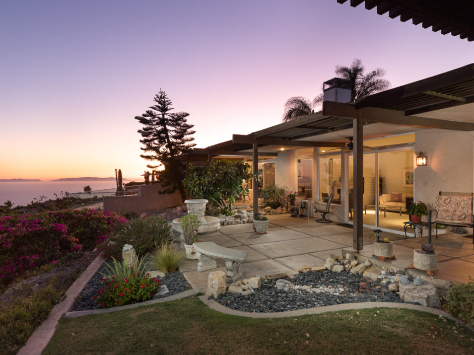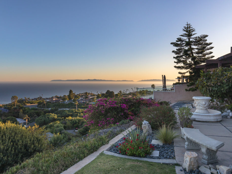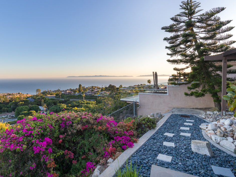 This Mid Century Modern ocean view home was designed by James Heaton and is situated on one of the most sought after streets in Palos Verdes. This gorgeous single level home has it all! Incredible sweeping ocean, Catalina and city lights views that create the ultimate view experience. Huge, custom double doors open to a wall of glass that brings the ocean and city right into your living space. The open floor plan has a mixture of hardwood flooring, ceramic tile and carpet. Living and dining areas flow into the chef inspired kitchen. Modern upgrades include Subzero fridge and freezer, double oven, dishwasher and stainless ventilation system. Additional upgrades include granite counters, bar area and many built-ins. The family room is the ultimate entertaining area with book matched walnut wood cabinets and is anchored by a fireplace. Living room and dining areas open to the amazing ocean views and also enjoy a carved fireplace. The master retreat enjoys direct access to a private patio with lush landscaping creating the ultimate area to enjoy a good book. The spacious bathroom with a wall of tile that exits the room and continues to the exterior atrium with Japanese Maple tree surrounded by a Birthday edition Kohler gold infused soaking tub. The additional bedroom also enjoys a private patio which is surrounded by amazing landscaping. Lush landscaped grounds and sitting areas are positioned to take in the amazing views. A three car garage & oversized driveway compliment the home.
