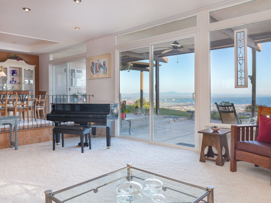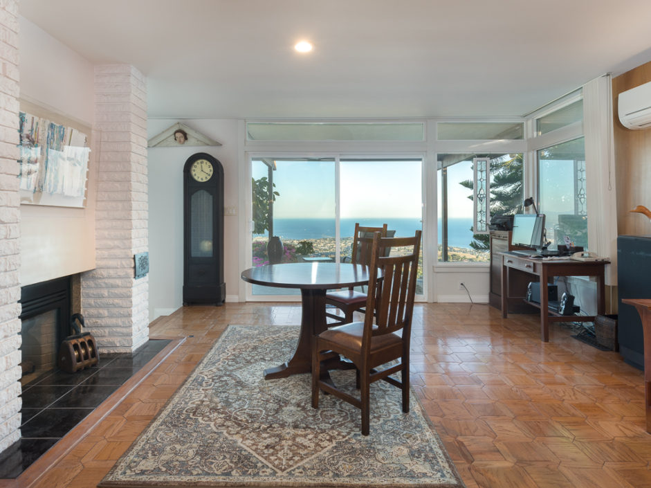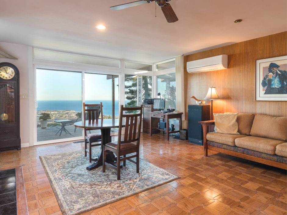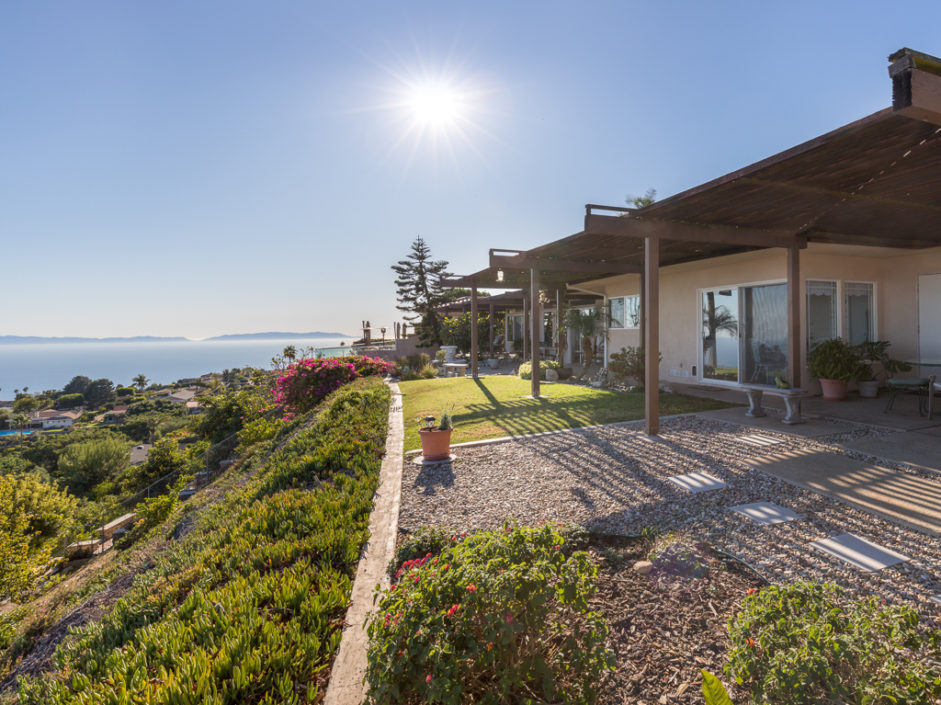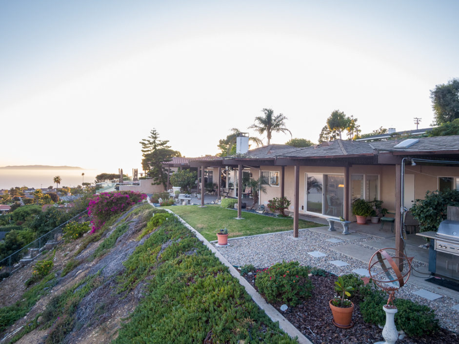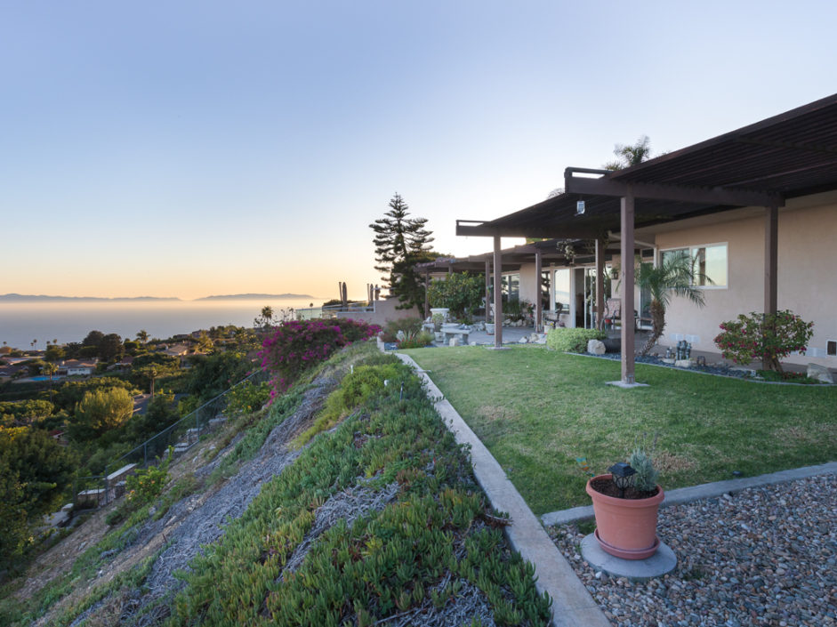 This Mid Century Modern ocean view home was designed by James Heaton and is situated on one of the most sought after streets in Palos Verdes. This gorgeous single level home has it all! Incredible sweeping ocean, Catalina and city lights views that create the ultimate view experience. Huge, custom double doors open to a wall of glass that brings the ocean and city right into your living space. The open floor plan has a mixture of hardwood flooring, ceramic tile and carpet. Living and dining areas flow into the chef inspired kitchen. Modern upgrades include Subzero fridge and freezer, double oven, dishwasher and stainless ventilation system. Additional upgrades include granite counters, bar area and many built-ins. The family room is the ultimate entertaining area with book matched walnut wood cabinets and is anchored by a fireplace. Living room and dining areas open to the amazing ocean views and also enjoy a carved fireplace. The master retreat enjoys direct access to a private patio with lush landscaping creating the ultimate area to enjoy a good book. The spacious bathroom with a wall of tile that exits the room and continues to the exterior atrium with Japanese Maple tree surrounded by a Birthday edition Kohler gold infused soaking tub. The additional bedroom also enjoys a private patio which is surrounded by amazing landscaping. Lush landscaped grounds and sitting areas are positioned to take in the amazing views. A three car garage & oversized driveway compliment the home.