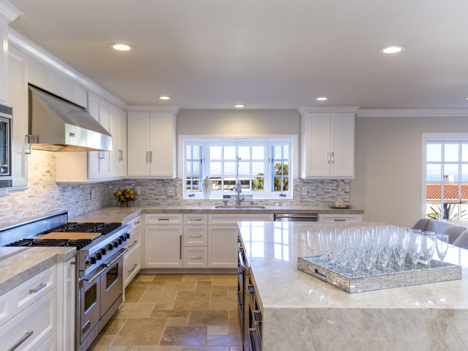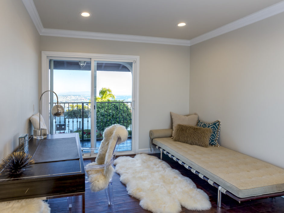 Nestled on one of the best streets in Rancho Palos Verdes, this designer 4 bedroom, 3.5 bath home is perched high above the street to take in the most incredible panoramic views of the ocean and city. The newly designed home has an open floor plan perfect for entertaining with superior upgrades including Viking appliances waterfall island w/ luxury Taj Mahal Quartzite Stone Counters. Master bedroom has designer Calcutta porcelain tile, oversized spa tub, electric mirror, built-in TV, & direct access to private all new 1200 sq. ft. viewing deck to take in all the views from the ocean and beyond. All new viewing balconies run the full length of the house. Flooring upgrades include tumbled travertine as well as hardwood. The home has multiple fireplaces, LED lighting, and new windows and doors. A Nest temperature controlled central air/heat, Smart automated garage sensors, and sprinkler system have been installed. The multiple security camera integrated alarm system allows you to log in and see whose at your door from your smart phone or PC and Keyless entry. This home is considered the best of California living.