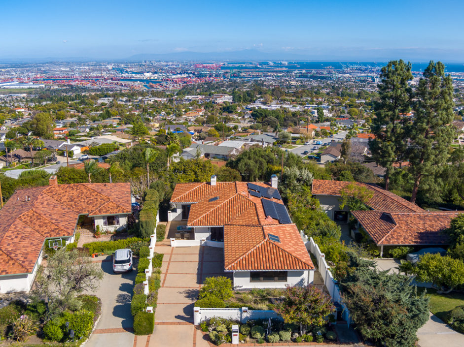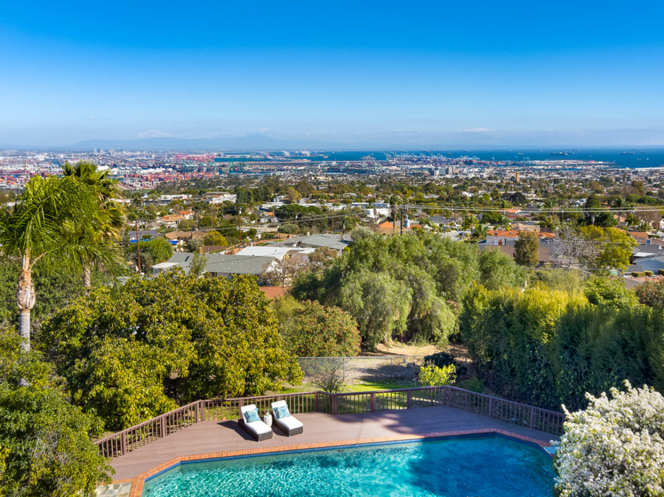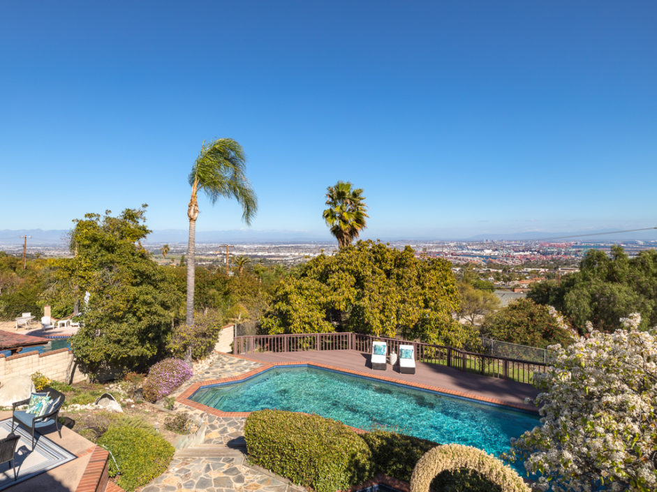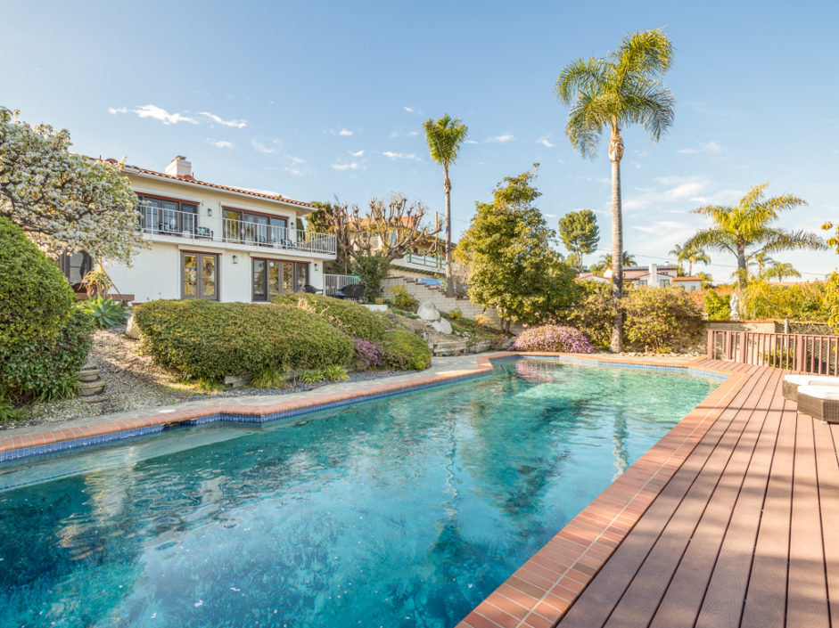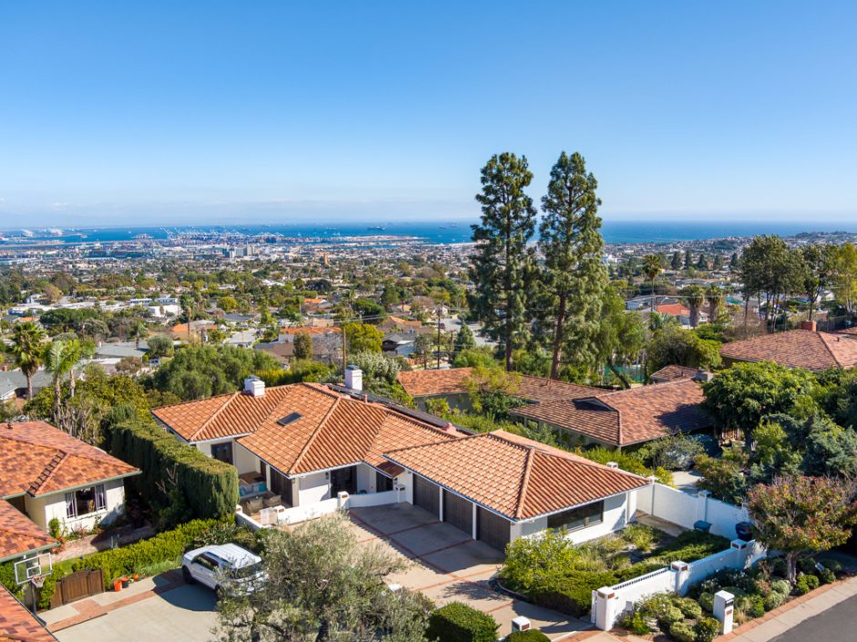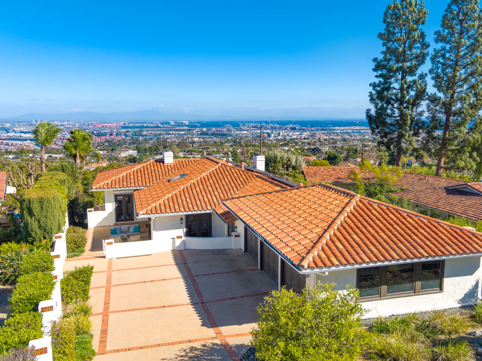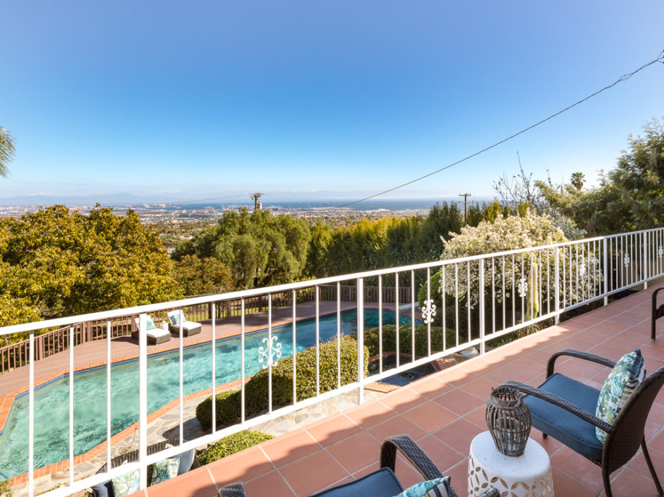 This kind of home rarely comes on the market, so don’t let it get away. Spectacular 5 bedroom 5 baths plus home office with panoramic views of the ocean, harbor and city lights. The Spanish villa is located in the Miraleste red tile section on a quiet flat tree-lined street. Welcome home to 4120 Lorraine Road. Enter through a courtyard perfect for al fresco dining and surrounded by lush landscaping. Secure inside this beautiful custom home, you’ll revel in the world’s quiet magnificence and yet you’ll feel a sense of command seeing it from the privilege of this exclusive vantage point. The house has walls of windows and doors, vaulted ceilings and loads of natural light. The tastefully remodeled kitchen features granite counters, center Island, Sub Zero frig and it all opens to the spacious dining room. The master bedroom suite opens to amazing views of the harbor and beyond from a private balcony. The backyard enjoys an oversized pool and spa surrounded by a Trex deck creating the ultimate party area. The lushly landscaped grounds enjoy fruit trees and parklike flat area perfect for the kids. Additional features include AC, gated front entrance, four fireplaces, 3000 bottle private wine cellar, solar panel system, and direct access three car garage with storage. Minutes away, you can enjoy a game of golf or dine at Terranea Resort. Or take a stroll through one of the many hiking trails, either way you are surrounded by the best of California coastal living