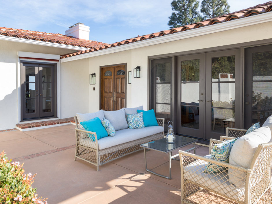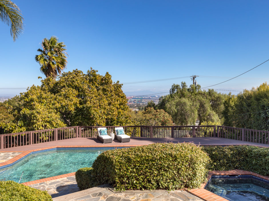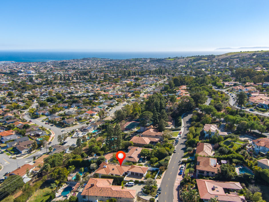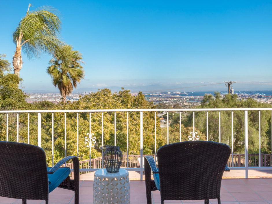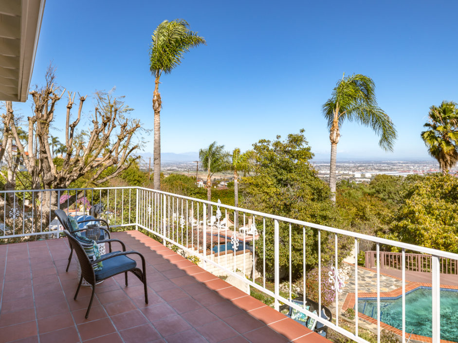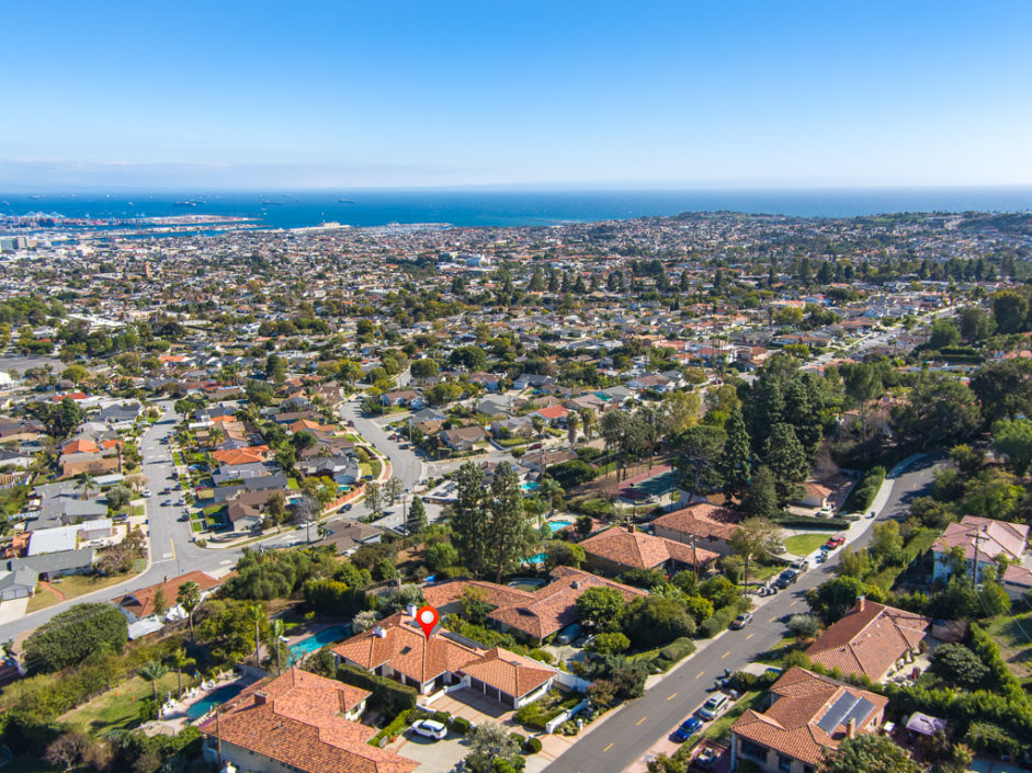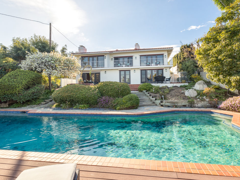 This kind of home rarely comes on the market, so don’t let it get away. Spectacular 5 bedroom 5 baths plus home office with panoramic views of the ocean, harbor and city lights. The Spanish villa is located in the Miraleste red tile section on a quiet flat tree-lined street. Welcome home to 4120 Lorraine Road. Enter through a courtyard perfect for al fresco dining and surrounded by lush landscaping. Secure inside this beautiful custom home, you’ll revel in the world’s quiet magnificence and yet you’ll feel a sense of command seeing it from the privilege of this exclusive vantage point. The house has walls of windows and doors, vaulted ceilings and loads of natural light. The tastefully remodeled kitchen features granite counters, center Island, Sub Zero frig and it all opens to the spacious dining room. The master bedroom suite opens to amazing views of the harbor and beyond from a private balcony. The backyard enjoys an oversized pool and spa surrounded by a Trex deck creating the ultimate party area. The lushly landscaped grounds enjoy fruit trees and parklike flat area perfect for the kids. Additional features include AC, gated front entrance, four fireplaces, 3000 bottle private wine cellar, solar panel system, and direct access three car garage with storage. Minutes away, you can enjoy a game of golf or dine at Terranea Resort. Or take a stroll through one of the many hiking trails, either way you are surrounded by the best of California coastal living