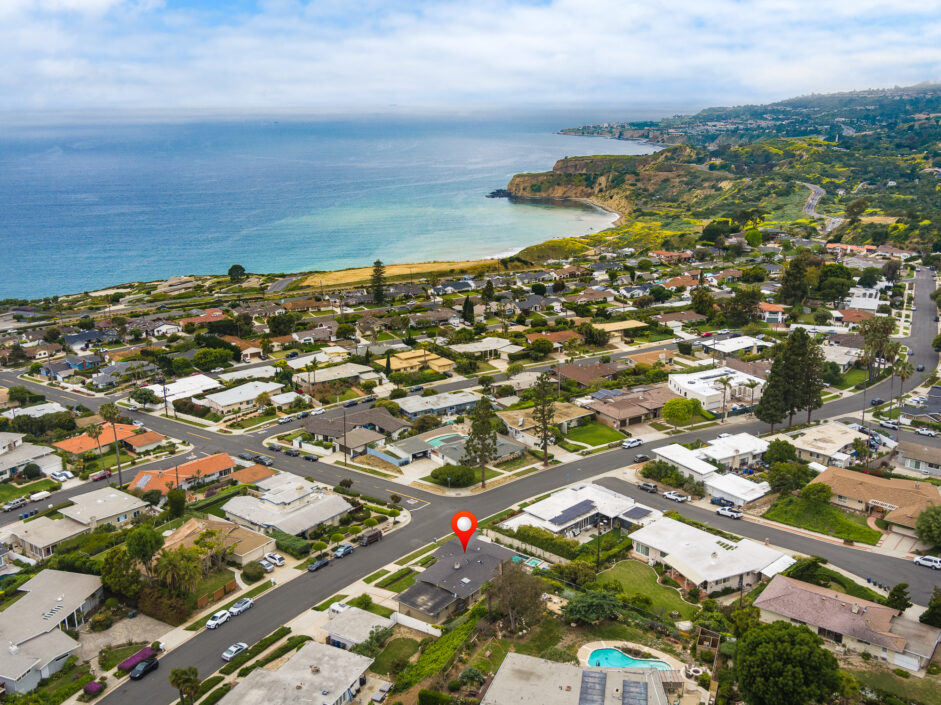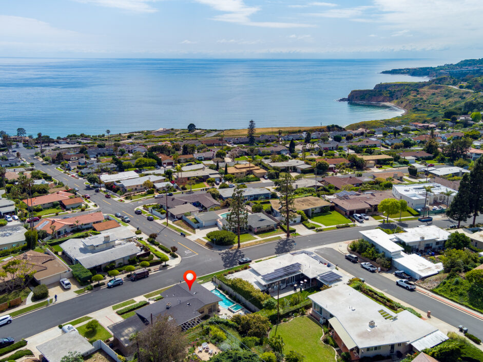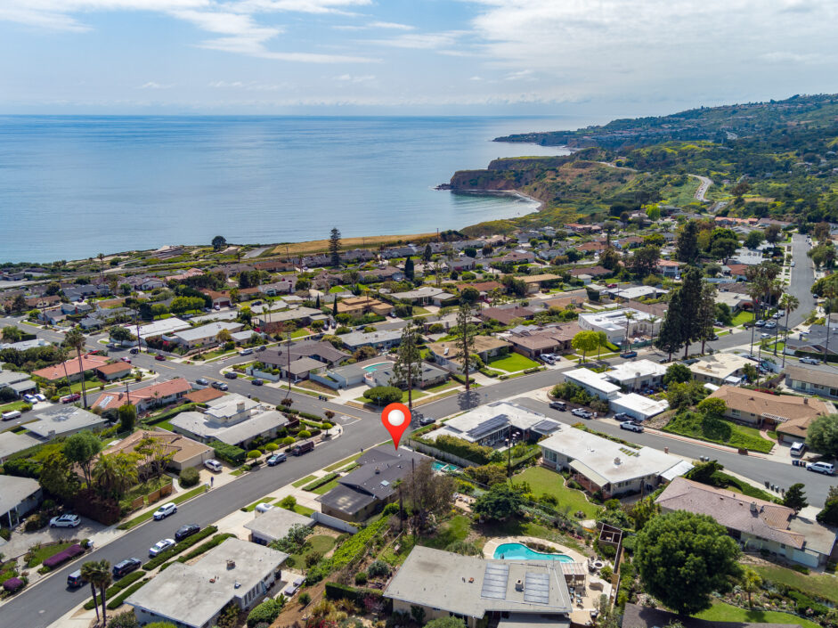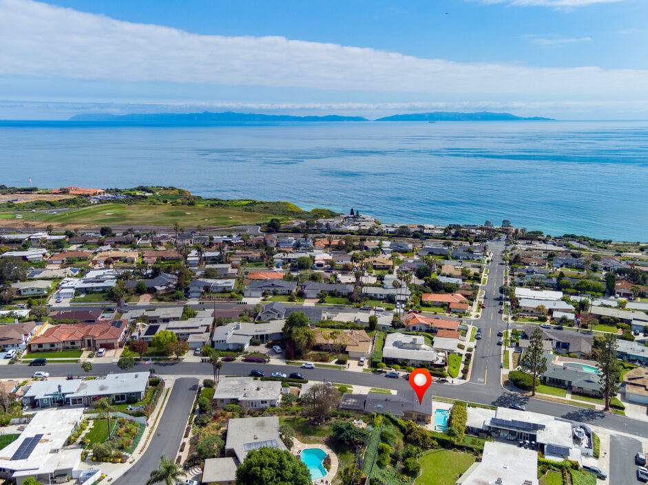 This classic, coastal single-level home is perched on the street to take in the amazing views of the Pacific Ocean and Catalina Island. Period perfect stone floors and hardwood greet you as you enter the home. A Palos Verdes stone fireplace anchors the floor plan that opens to a spacious kitchen and dining area. The living room with its floor to ceiling wall of glass allows the outside elements to engulf the room. Stainless steel appliances and wrap around Corian counters create a cozy place to enjoy any meal of the day. The master suite is perfectly positioned to garner the impressive views of the ocean and beyond. A modern pool and spa are positioned to take in the jaw dropping views. Multiple waterfalls and its modern design along with plenty of lounge area will keep family and friends coming back to enjoy this experience. Exterior grounds are complimented by numerous fruit trees: Cara Cara Oranges, Mandarin Oranges, Navel Oranges, Baby Apples, Tangerines, Almond Tree, Grapes, Avocado Tree, Boysenberry Tree. The Seaview community is a short walk to the beach perfect for gatherings or strolls along the coast. Award winning schools and the coastal beauty that surrounds this house should put this home at the top of every buyer’s list. This is considered the best of California coastal living.