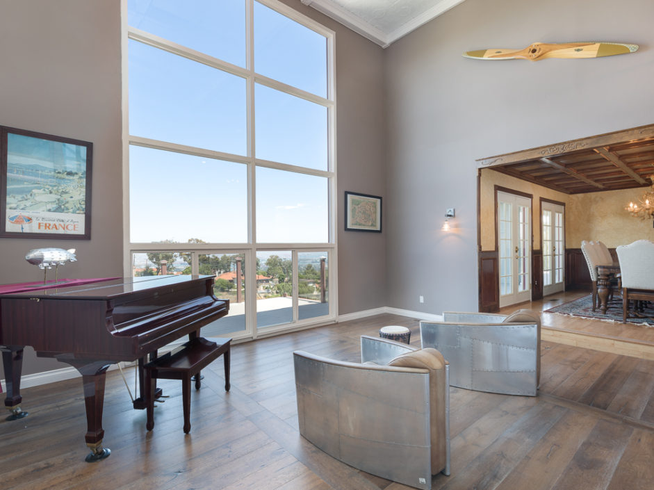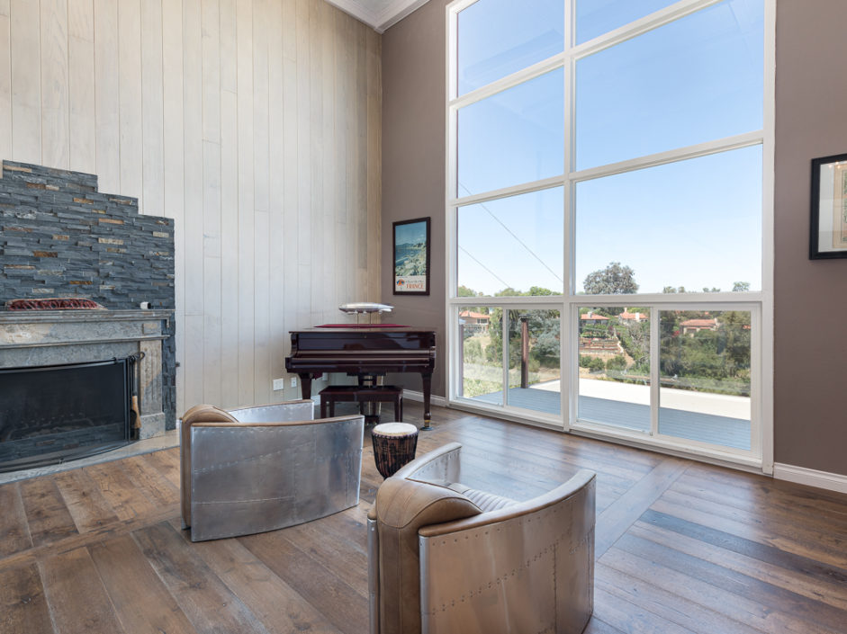 WATCH OUR CINEMA SERIES MOVIENestled up to Sienna Canyon in Miraleste is this unique New York City style home. The horseshoe driveway trots towards the tiled foyer with direct garage access. The pathway glides to bright bamboo floors that breathe in a vast loft space inviting incredible views accompanied by neighboring natural light. The first floor is home to the master retreat, study, and ensuite guest room. The master enjoys rich wood finishes and built-ins, green granite counters, walk-in closet, and views from both bed and bath. The second level is centered by a massive floor-to-ceiling window, fireplace, and immense airspace. The free flowing space soars into the formal living room with wainscoting, coffered ceiling, and French double-doors. The hardwood hallway brings guests to a rustic living room space with an equally intricate detailed gourmet kitchen. Wooden posts, Wolf range, single slab bezeled vanilla bean island, bar seating, matte black counters, stainless steel backsplash, sub zero appliances, plus additional viking oven. The doors open up to a wide glass lined balcony with continuous room for entertaining and breathtaking views that change with time. The downstairs has a jacuzzi that overlooks the sights and is the entrance to a game room getaway. This marvelous area of the home has billiards, projector, pinball, bar, darts, bathroom, kitchenette, and is fully hidden away in plain sight. The backyard gently slopes down to an access trail that the community continually enjoys.