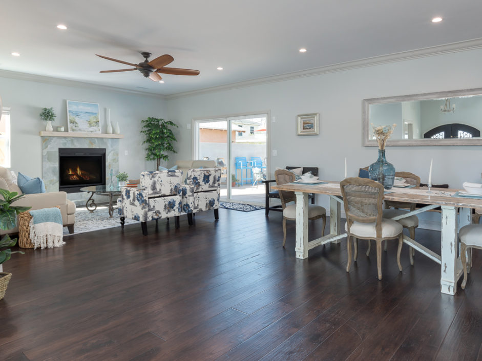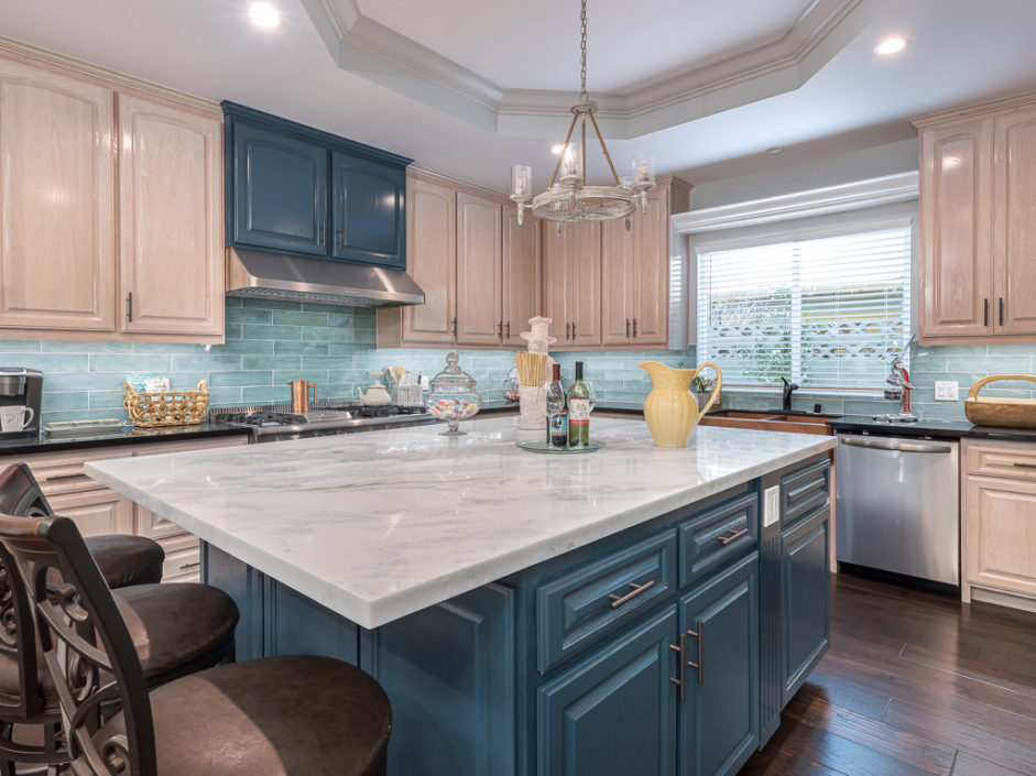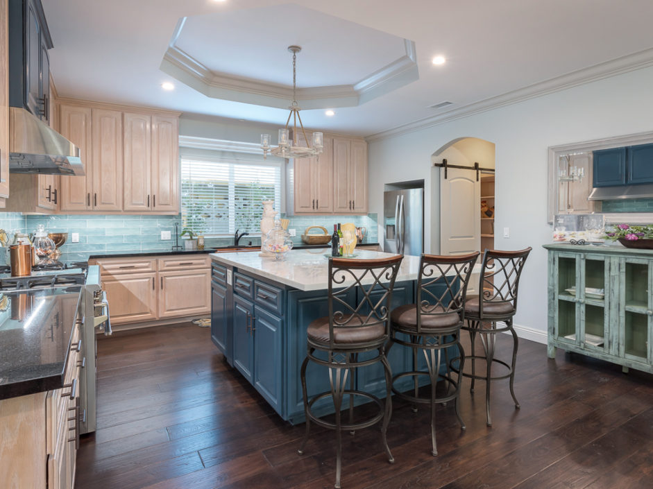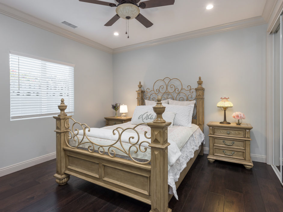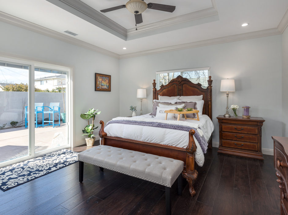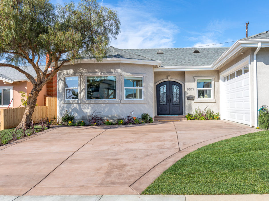 Welcome home to this beautiful, custom built, retreat-like, single level, virtually new, 5 bedroom, 3 bath with 2,443 square feet of living space located in the desirable West Torrance. Custom double metal doors open to engineered hickory hardwood flooring, 9′ ceilings, entertain and share your delightful home with its stunning kitchen, large center island made for gathering. The family room is anchored by a gas fireplace and opens to the oversized dining and kitchen areas. The gourmet kitchen enjoys a walk-in pantry with easy access to the garage, a luxurious and large center island with built-in drawer microwave, custom-built cabinetry, under-cabinet lighting, ample storage, soft-close drawers, hammered copper double farm sink and a 48 inch 6 burner stove and griddle, with double oven. The master retreat is spacious and enjoys a spa infused experience with open concept shower wrapped in white travertine stone and luxurious oversized polished marble tile floors. Bathrooms are enhanced with tumbled subway pattern marble and polished marble flooring. Additional features include A/C, whole-house fan, tankless water heater, LED recessed lighting in all rooms, 8′ foot mirrored doors, crown molding, gas & electrical stub out in patio for future outdoor kitchen and jacuzzi. The front and rear yards are lushly landscaped with cherry, apple, nectarine, & lemon fruit trees. Located in the West Torrance school district, close to shopping, dining and the beach. This home has it all.