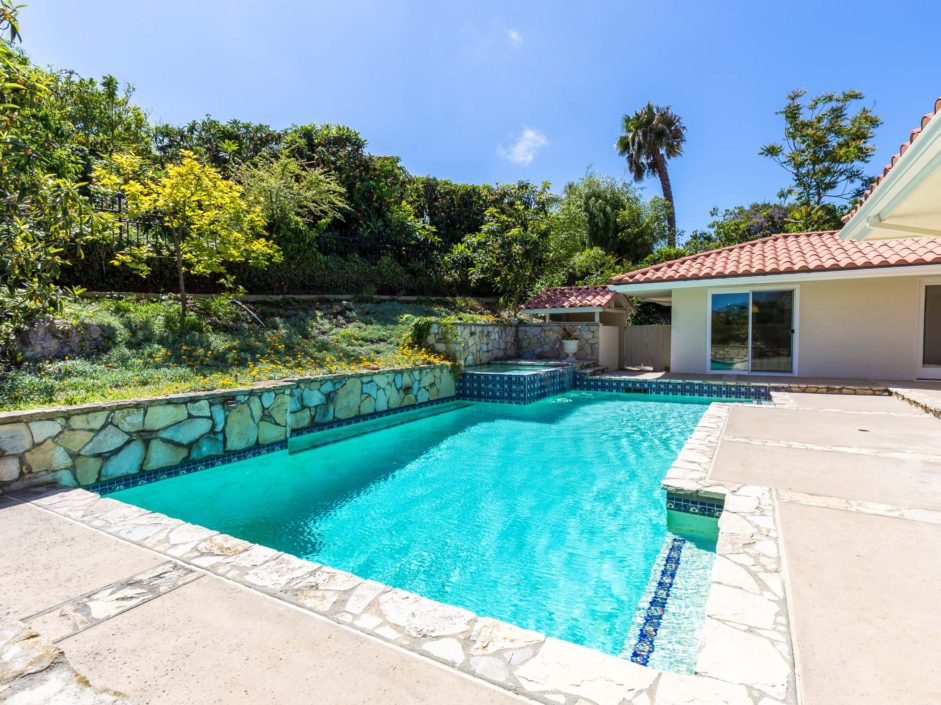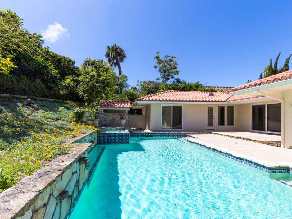 This feng shui perfect home is located in one of Palos Verdes most sought after neighborhoods. Positioned above the street, the 2700 square foot home has panoramic city light views. You will enjoy the one level floor plan that opens to a wall of glass to encourage all of your guest to take in the Southern California skyline. Entertaining is a breeze in this remodeled kitchen with center island, granite counters, wine frig & plenty of storage in the custom cabinets. Formal and casual dining areas open to spacious living and family room. Sophisticated & clean touches in the remodeled bathrooms, include travertine & walk in shower. The master retreat enjoys double sinks, separate stone shower and spa tub. Family and friends can indulge in the stone covered rear yard with sparkling pool and spa.