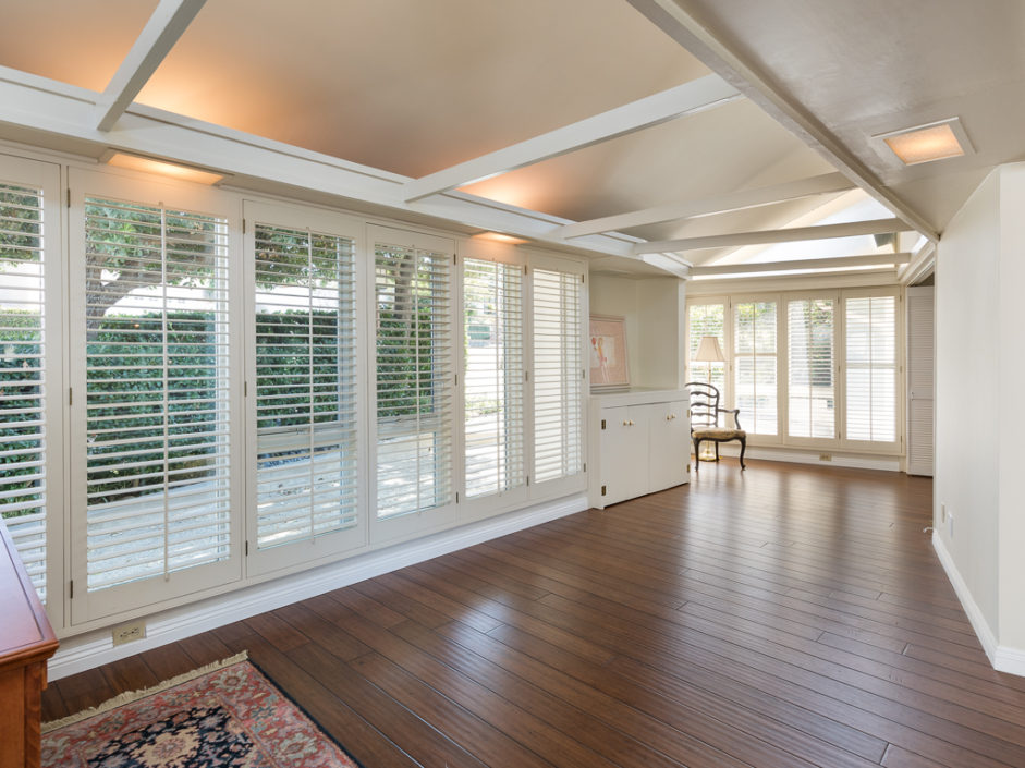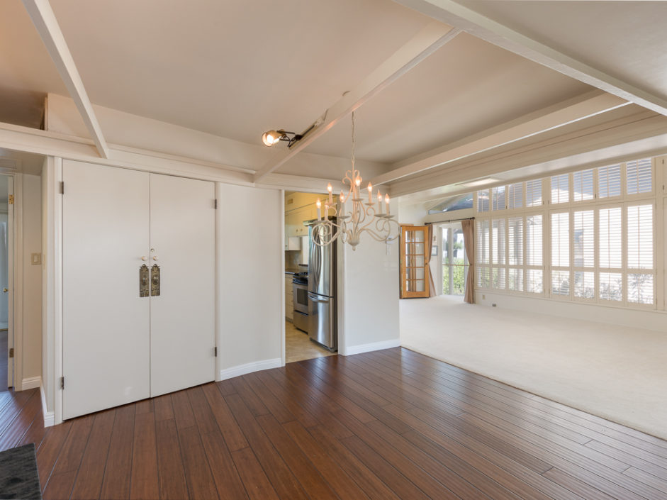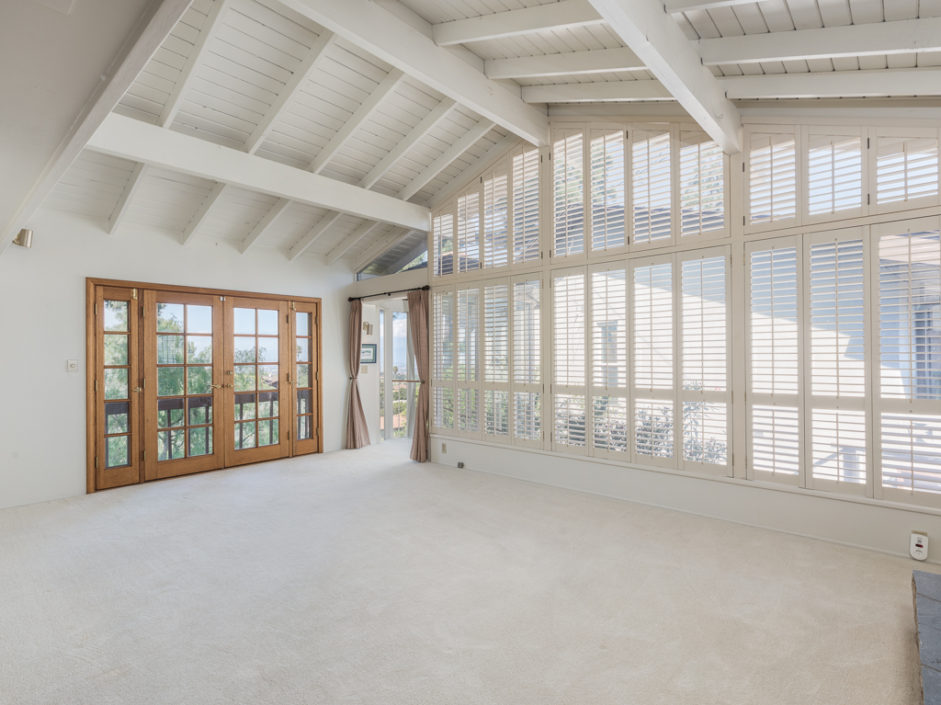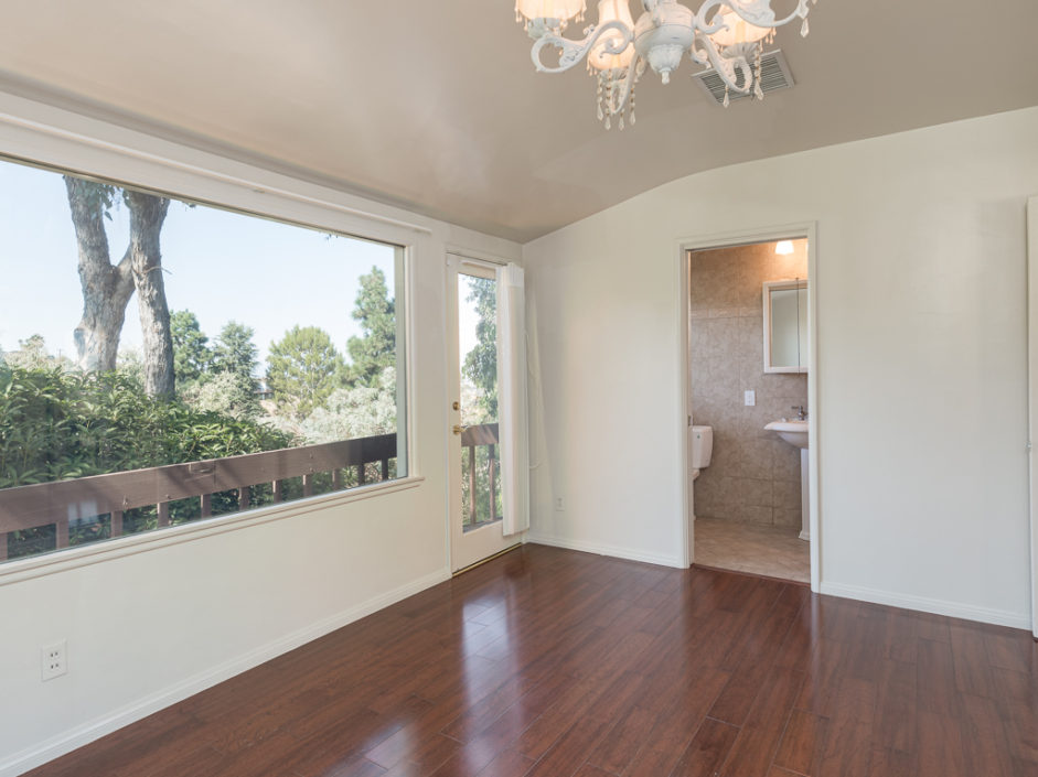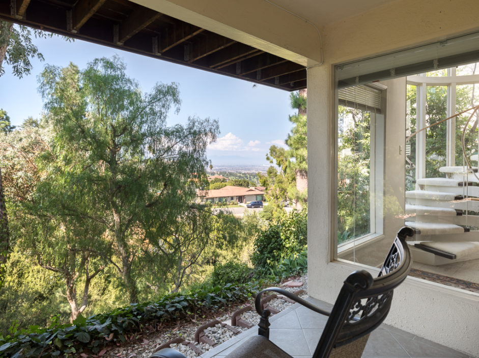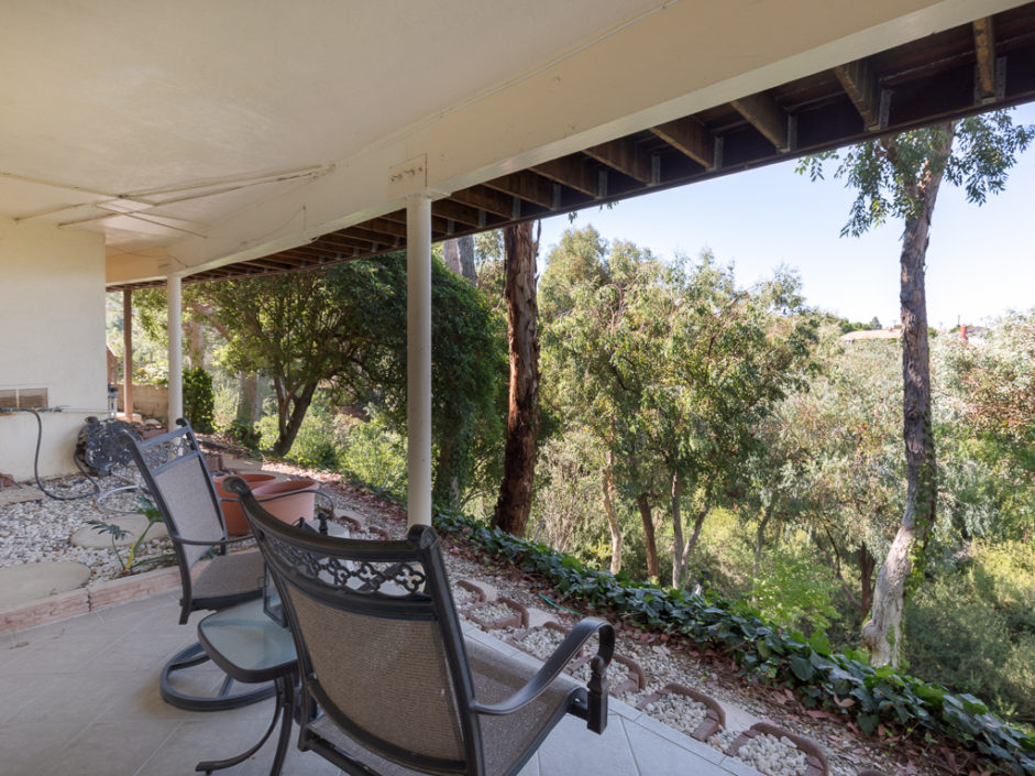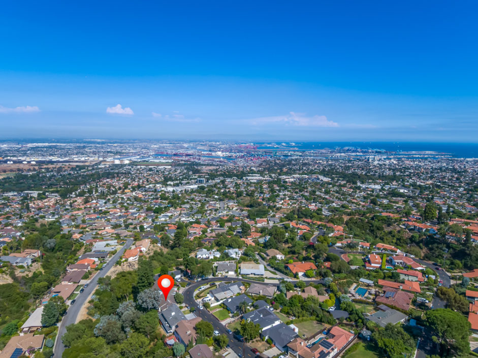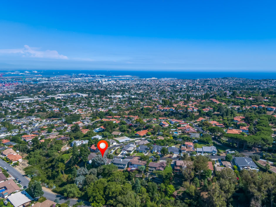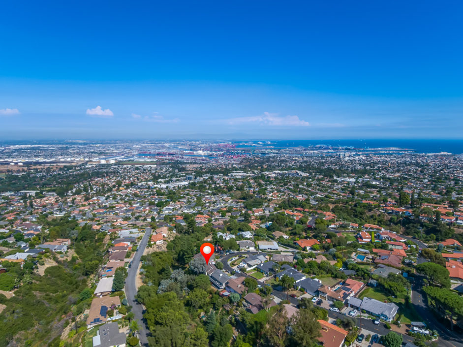 A single level ranch style home nestled in Rancho Palos Verdes on a quite treelined street. The 3 bedroom 2 bath home has vaulted inlaid wood ceilings and hardwood floors throughout. The living room is centered by a large stone fireplace and walls of windows allowing the most magical light to enter the room. The living room opens to double doors and amazing views of downtown Los Angeles and a wraparound deck to enjoy year round. A casual dining area borders the granite kitchen with stainless appliances including refrigerator, stove and matching hood, dishwasher and microwave The master bedroom opens to amazing views of the manicured grounds and stunning vistas of the city. A circular glass encased staircase takes you to the additional private bedroom and bath with access to a private exterior deck positioned amongst the trees. Addition- al features include, Air Conditioning, plantation shutters, motorized shades in the master bedroom, washer and dryer, and access to the award winning Palos Verdes school system.