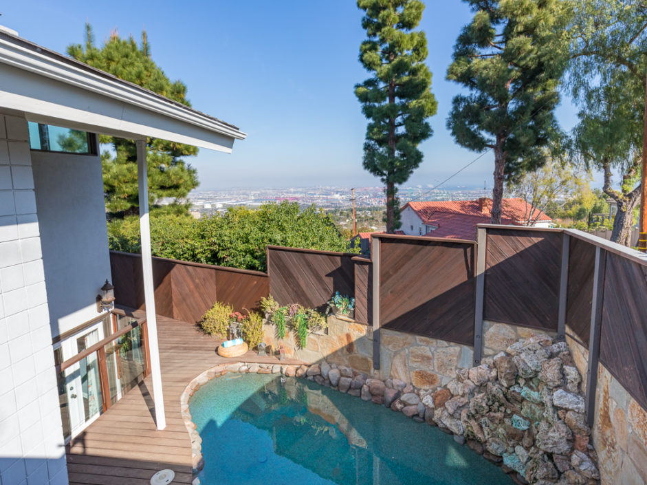This kind of home rarely comes on the market, so don’t let it get away. A luxurious Miraleste gem, it’s minutes away from the ocean and walking distance to numerous hiking trails. This chic Mid Century Modern residence was expertly designed to marry the serenity of a life in the Palos Verdes Hills with the pride and luxury of resort-style living. Huge custom oversized door opens to vaulted ceilings and walls of glass that brings the outdoor elements right into your living space. The home enjoys 3521 sq. ft. of living space with 5 bedrooms and 5 baths, welcome home to 6445 Via De Anzar. This sense of mastery continues into the gourmet kitchen equipped with dream appliances to meet your every culinary need. From cool ocean breezes to distressed hardwood floors, this home sings with the brightest notes of nature. The master suite with stunning views enjoys a spa inspired master bathroom. Additional features include 3 remodeled bathrooms, freshly installed carpet and designer paint. The grounds are anchored by a refreshing stone infused pool, creating a comfortable entertaining area your family and guests are sure to want to return to again and again. Minutes from this palatial domain, enjoy a world class dining experience at Terranea Resort, or take a stroll through the nature preserve. In this prime Palos Verdes location, you are surrounded by the best of California coastal living.