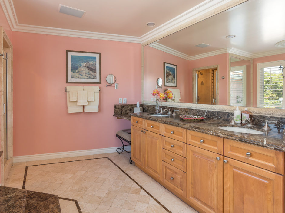 This kind of home rarely comes on the market, so don’t let it get away. A luxurious Miraleste gem just minutes away from the ocean and walking distance to numerous hiking trails. This chic residence was expertly designed to marry the serenity of a life in the Palos Verdes Hills with the pride and luxury of resort-style living. The home enjoys 3008 sq. ft. of living space with 4 bedrooms and 4 baths and additional guest quarters with a private entrance on a nearly level landscaped 15,646 sq. ft. lot on a quiet cul-de-sac. This sense of mastery continues into the gourmet kitchen equipped with dream appliances to meet your every culinary need. From cool ocean breezes to distressed hardwood floors, this home sings with the brightest notes of nature. The master suite is spacious with crown molding and ceiling fan. The spa inspired master bathroom has granite double sinks, his and her shower heads and massive soaking tub with spa jets. Additional features include 3 remodeled bathrooms. The grounds are anchored by a lush lawn, Trex decking and nicely appointed outdoor kitchen with dining area. Enjoy cocktails or a meal on the roof top deck or take in the amazing views of the city, ocean and beyond. Minutes away, enjoy a world class dining experience at Terranea Resort or take a stroll through the nature preserve. In this prime Palos Verdes location, you are surrounded by the best of California coastal living.