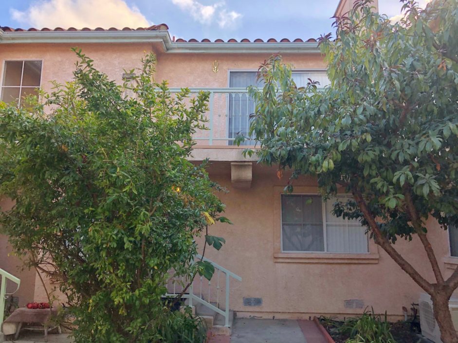 Enter thru a gated courtyard to this Tuscany inspired townhouse. Centrally located close to shops and transportation makes this a unique find. A Private two car garage accesses the property. Entry level consists of two spacious bedrooms and a bathroom. Natural light is in abundance, with a breezy floor plan. On the top level of the townhome, there is an additional bedroom and bathroom, a sunny kitchen, a roomy and spacious living room with a cozy fireplace, and a balcony that looks out to the fruit trees and courtyard. Granite kitchen with custom cabinets stainless steel appliances including microwave and dishwasher. Additional features include ceiling fans and newly installed stone floors. Washer and dryer hookups are ready for your convenience. Ready for immediate occupancy.