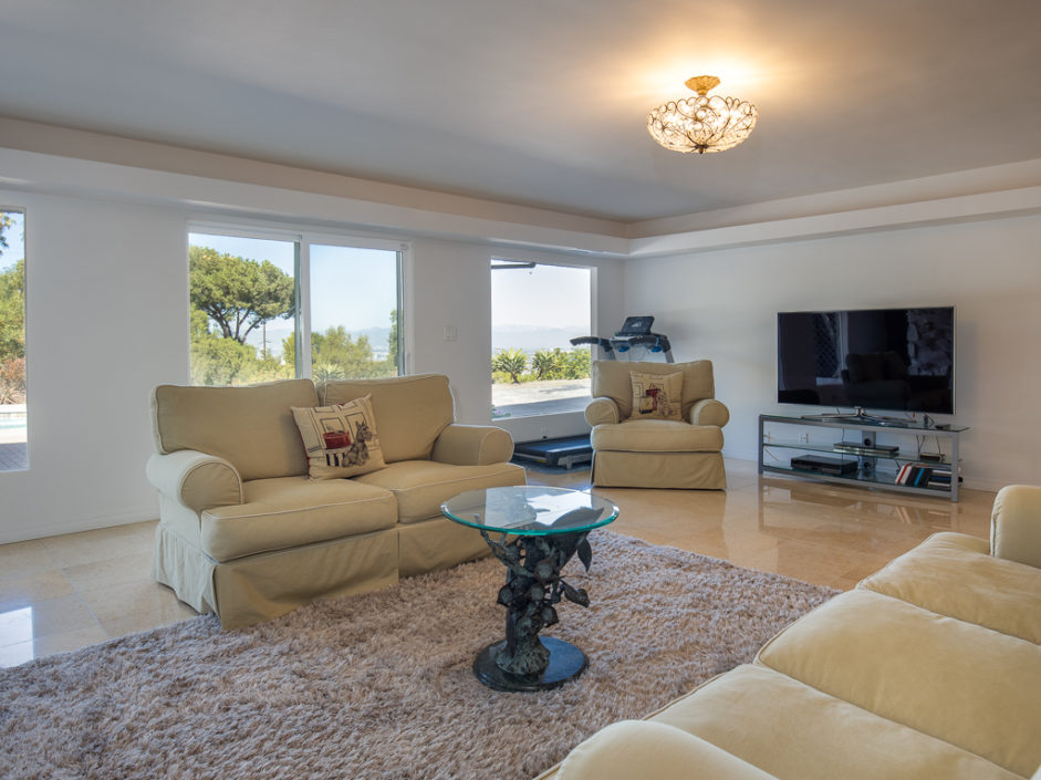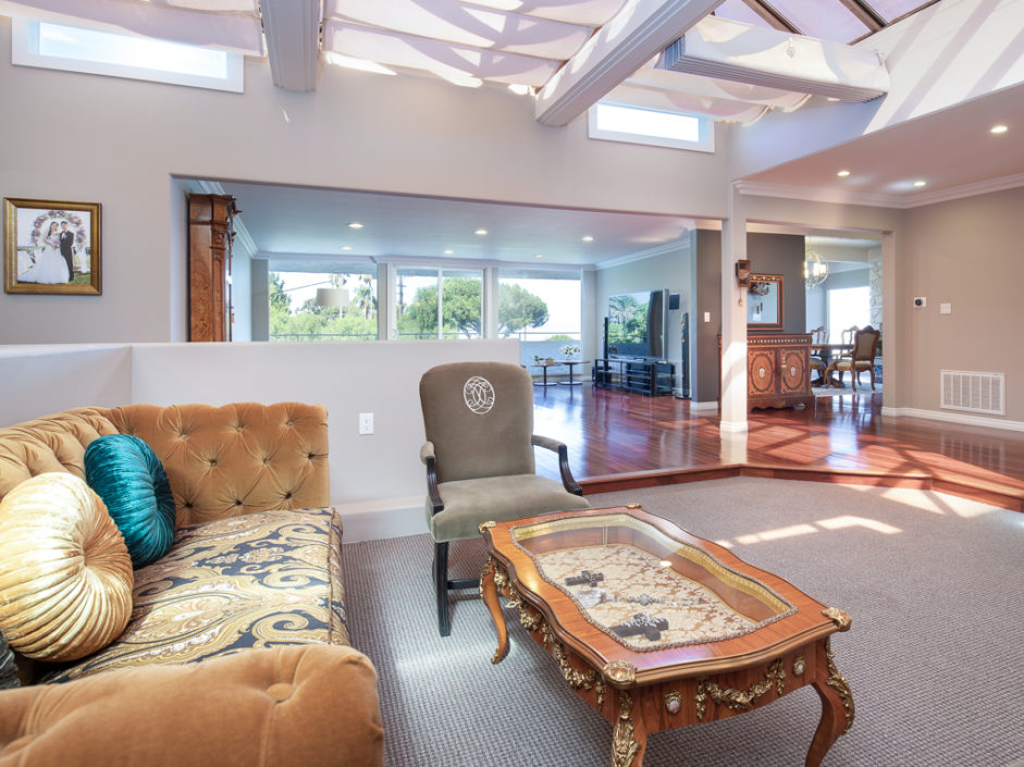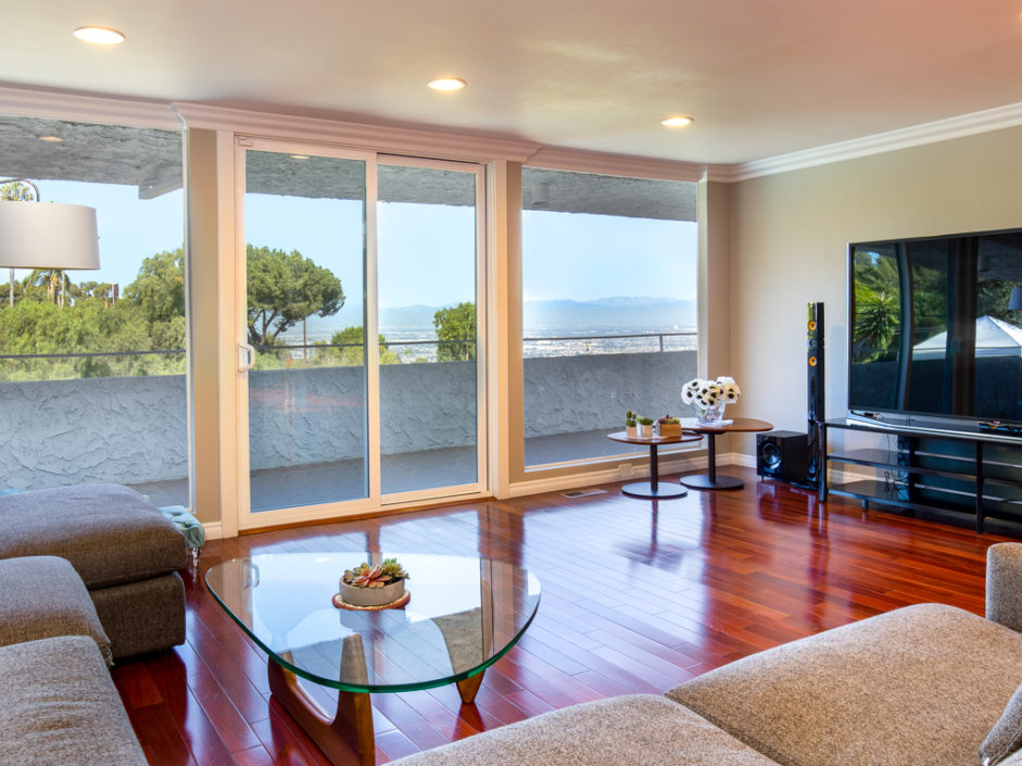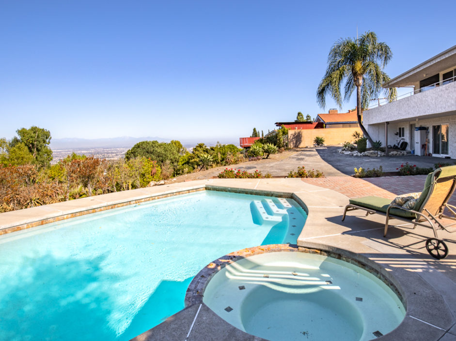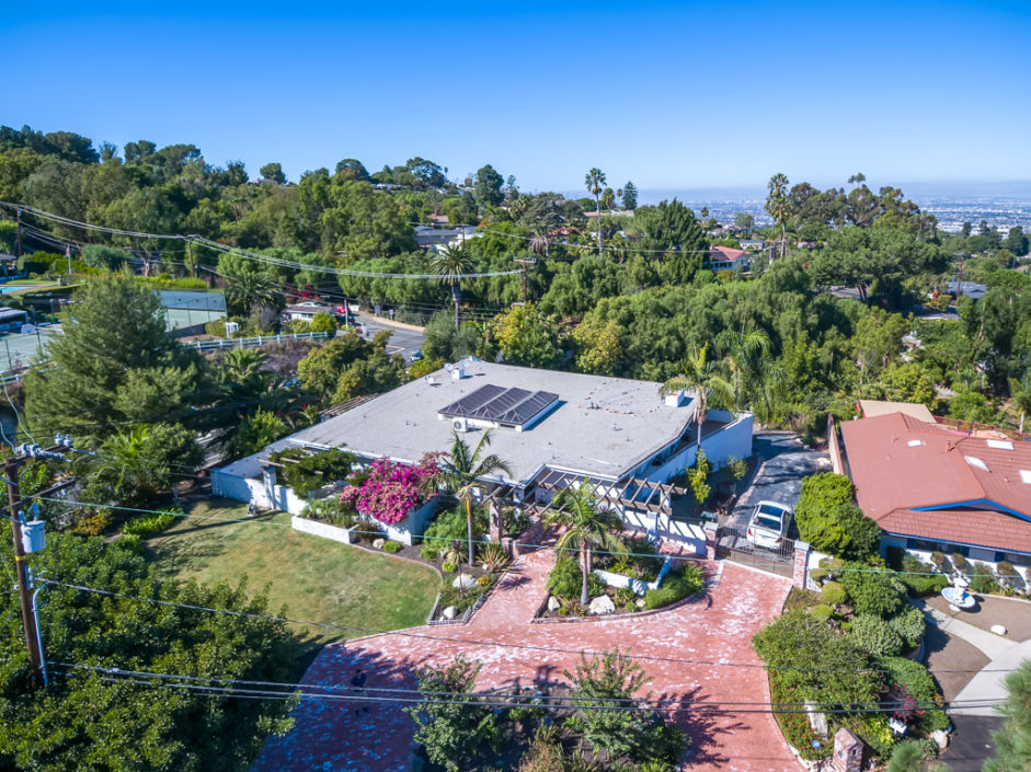 Gorgeous remodeled home with large city and mountain views and a HUGE open living space on a 3/4 acre lot! This contemporary house has floor to ceiling windows overlooking the city, mountains and private gardens. This open floor plan has a huge skylit room with high ceilings perfect for family entertaining and relaxing. Circular driveway entry and gated side driveway can be for RV parking. Huge backyard has tremendous potential to built your dream resort. All bedrooms, living room and kitchen are open, spacious and bright. All major rooms are on the main floor including the gorgeous master suite, three bedrooms, kitchen and family room. Downstairs has a huge 2nd family/play room, two additional bedrooms, a full bathroom and a big storage room. The kitchen has an open floor plan with a center island, custom cabinets and granite countertops. In addition, there is a large walk in pantry/laundry room. Beautiful cherry wood flooring throughout the house and marble flooring in the kitchen, all bathrooms and second family room downstairs. This home is extensively remodeled in and out, equipped with recessed lighting, crown moldings, air conditioning, granite and custom cabinets throughout.