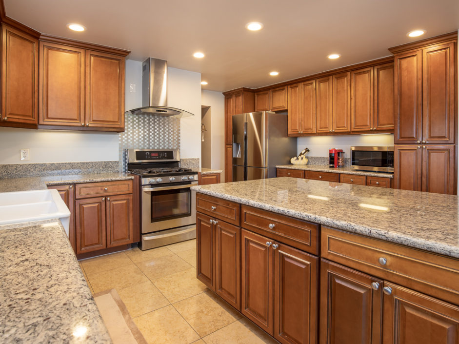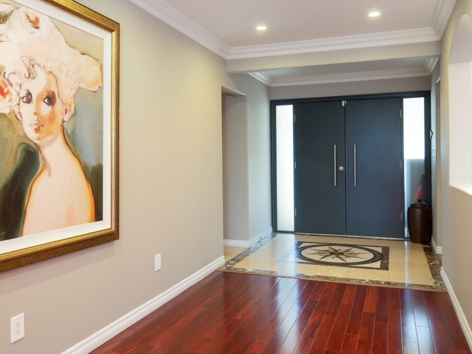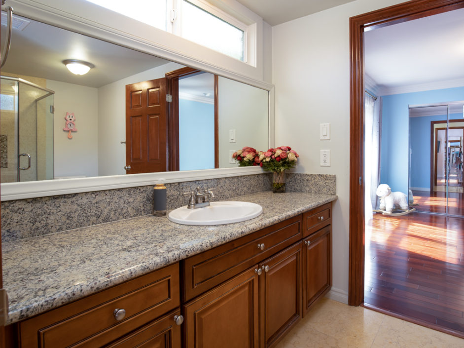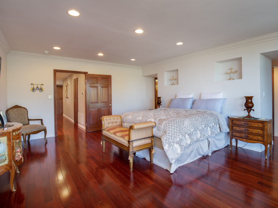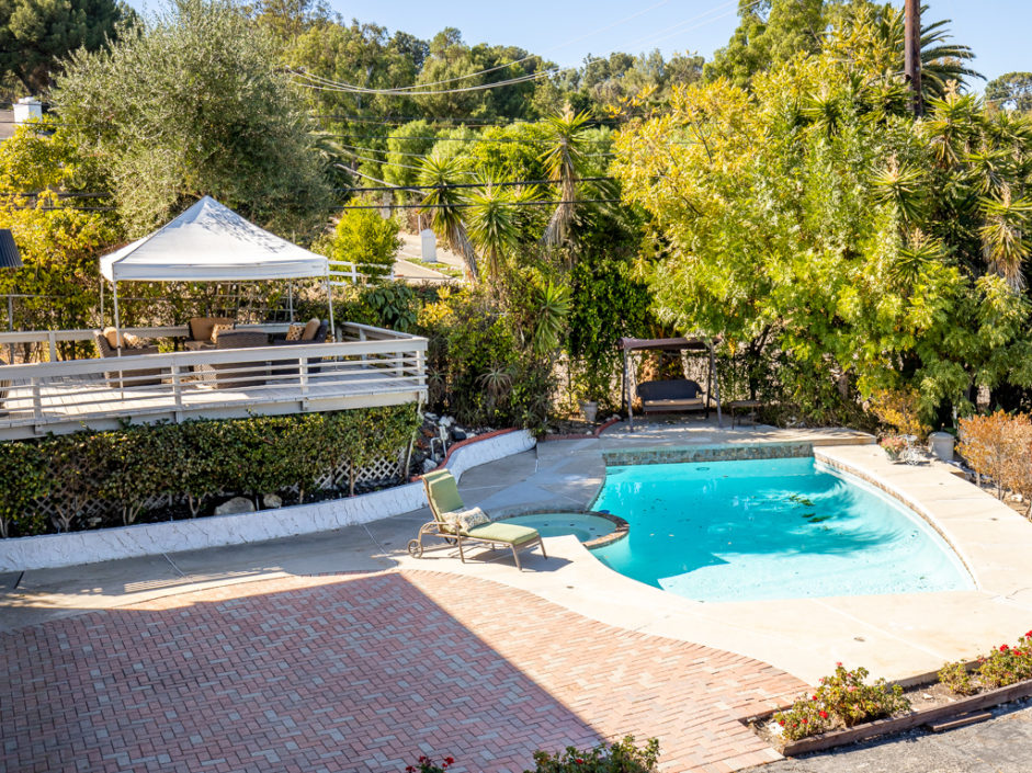 Gorgeous remodeled home with large city and mountain views and a HUGE open living space on a 3/4 acre lot! This contemporary house has floor to ceiling windows overlooking the city, mountains and private gardens. This open floor plan has a huge skylit room with high ceilings perfect for family entertaining and relaxing. Circular driveway entry and gated side driveway can be for RV parking. Huge backyard has tremendous potential to built your dream resort. All bedrooms, living room and kitchen are open, spacious and bright. All major rooms are on the main floor including the gorgeous master suite, three bedrooms, kitchen and family room. Downstairs has a huge 2nd family/play room, two additional bedrooms, a full bathroom and a big storage room. The kitchen has an open floor plan with a center island, custom cabinets and granite countertops. In addition, there is a large walk in pantry/laundry room. Beautiful cherry wood flooring throughout the house and marble flooring in the kitchen, all bathrooms and second family room downstairs. This home is extensively remodeled in and out, equipped with recessed lighting, crown moldings, air conditioning, granite and custom cabinets throughout.
