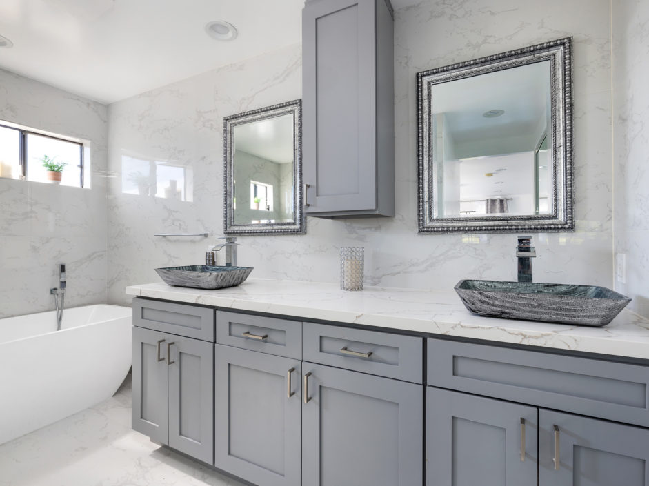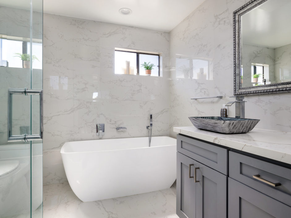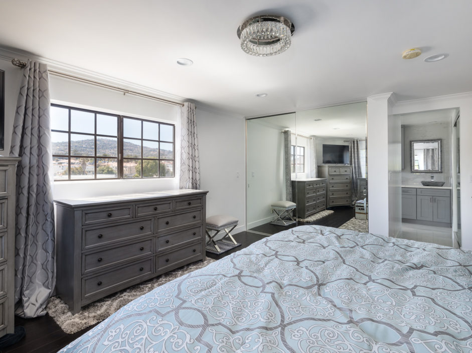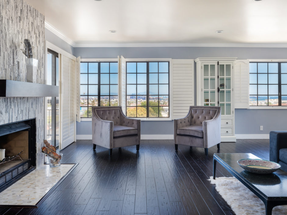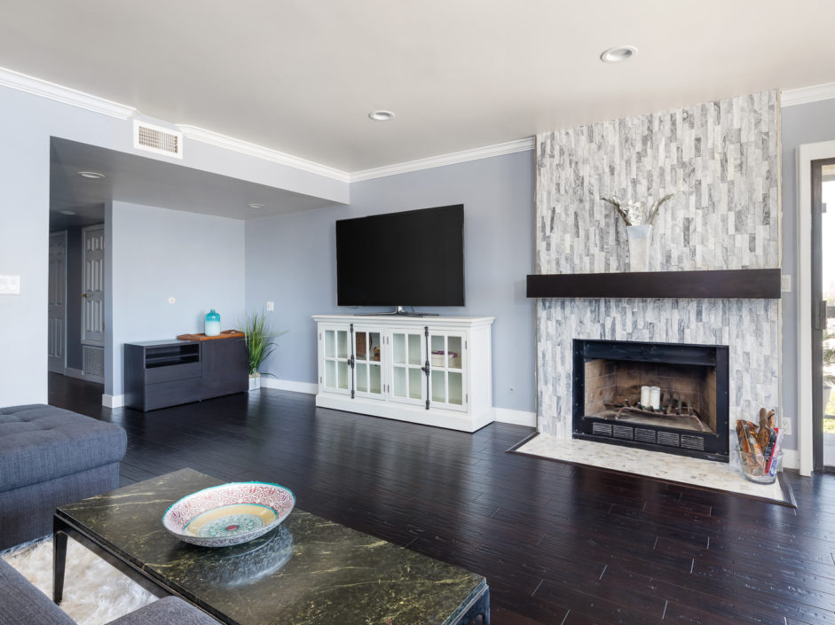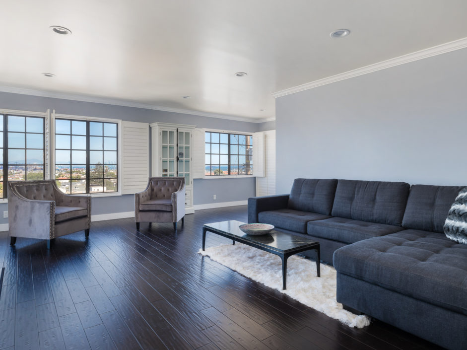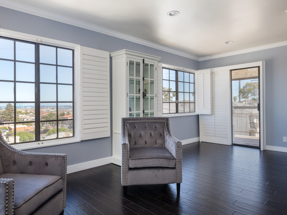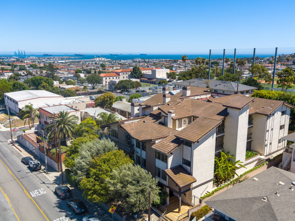 Beautifully upgraded single level penthouse with amazing views of the ocean, harbor and beyond. Absolutely no expense spared in this rare top floor corner unit. The sought after 3 bedroom floor plan with 1,841 sqft is located in the heart of San Pedro. This well-maintained property features rustic hardwood floors and a spacious layout and generous living area that is warm and inviting. The bright and airy kitchen has been upgraded with new soft touch auto closing white cabinetry, granite countertops, stainless steel appliances, designer marble counter to ceiling back splash, and farmers sink. The dining area opens up to a crystal stone fireplace with warm stone hearth. This well-designed balcony wraps around the property affording amazing views. The bedrooms are oversized and enjoy crown molding and designer colors. The guest bath is out of Architectural Digest with auto closing cabinet, backlit mirror, huge shower with multi colored lights and body and rain shower enhancements sure to leave a lasting impression on all of your guests The spacious en suite master bedroom retreat is the perfect way to wind down your day. The bathroom is a spa day in the making just walk in and enjoy the separate soaking tub and stone infused shower to the double elevated sinks creating the ultimate first impression. Exquisite tiles and flooring. The owner has made a number of high-quality upgrades intended for owners, including wood laminated flooring throughout. Private 2 car parking with additional storage space and washer/dryer hookups. Additional features include AC, plantation shutters, exotic stone foyer entrance, led lighting…. Homes like this don’t come up everyday.