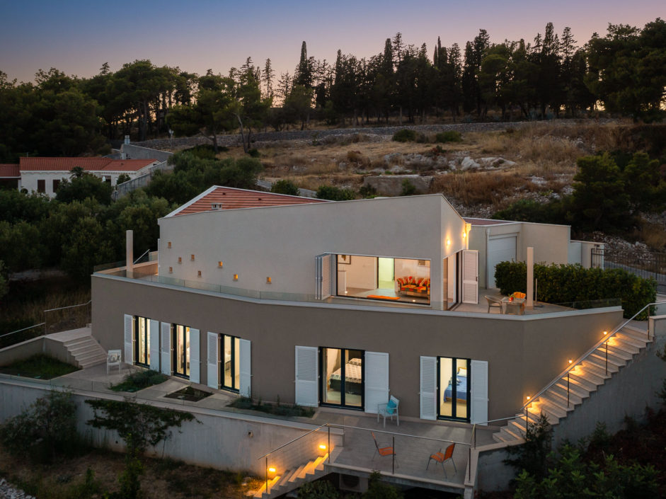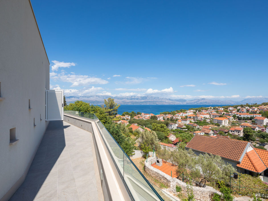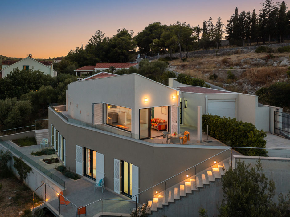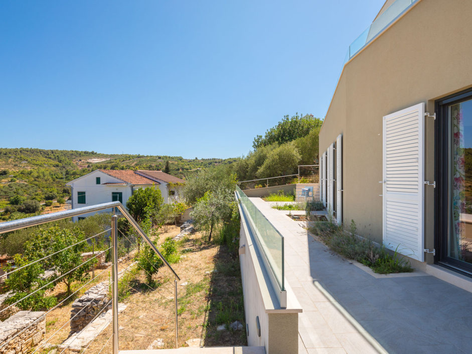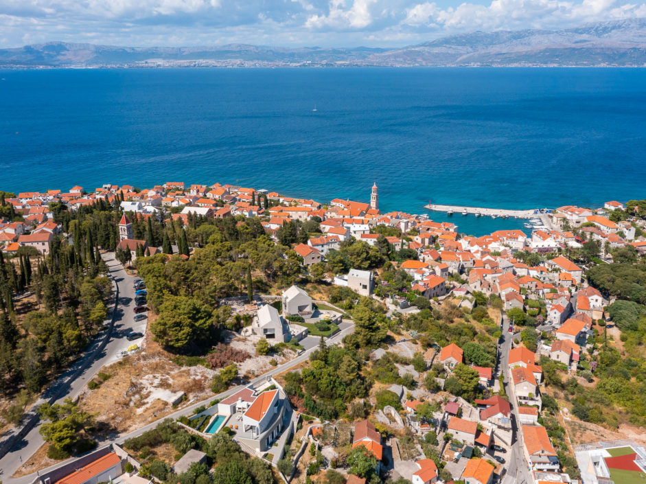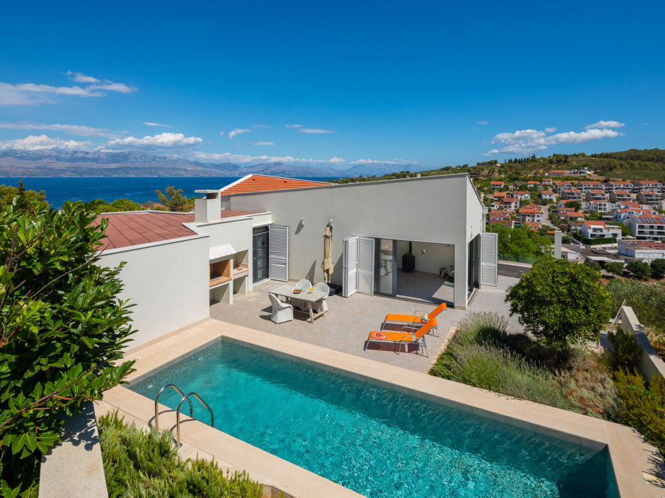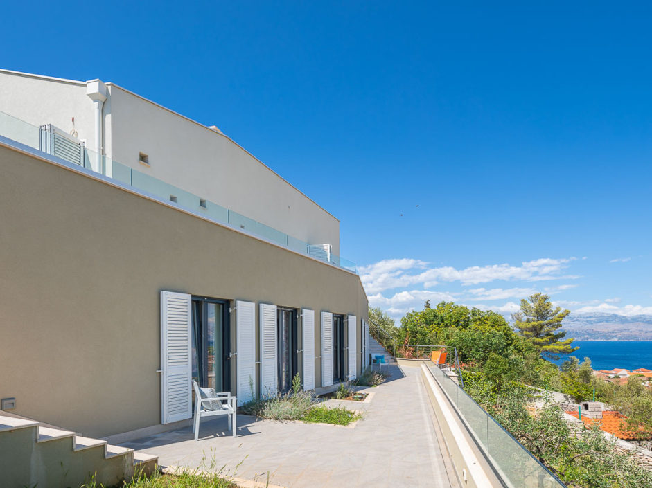 Ideally located high above the hill in the magical town of Sutivan, this home marries panoramic views and the serenity of life by the sea. The newly built gated villa boasts an open floor plan with living space opening to an outdoor oasis, including Pool, Shower, huge patio, dining area and outdoor kitchen. Inside a wall of glass opens to amazing views of the sea allowing the exterior to engulf the home creating the ultimate first impression. The home enjoys three additional bedrooms and two additional bathrooms. Additional features include a master retreat with walk in shower, panorama movable sliding doors, multiple viewing balconies, rooftop deck, one car garage, air conditioning, lushly landscaped grounds and only a six minute walk to the beach. This is considered the best of Adriatic coastal living.