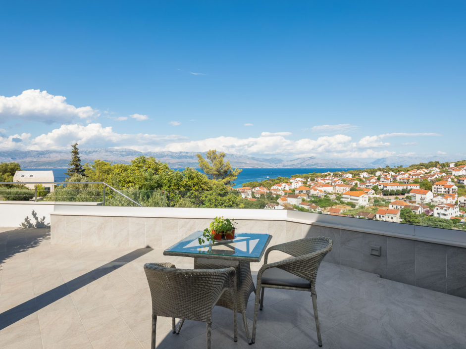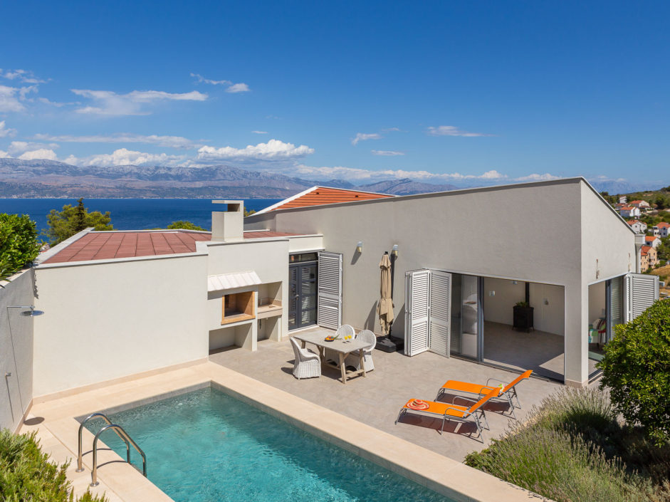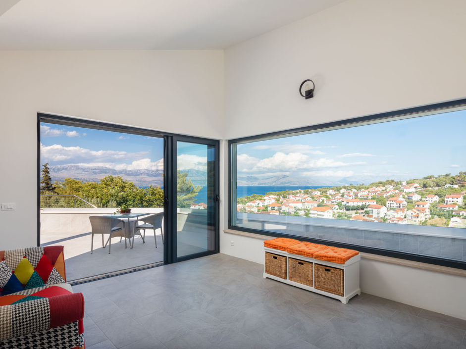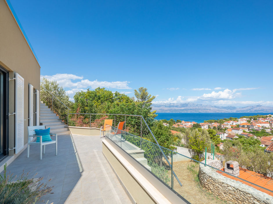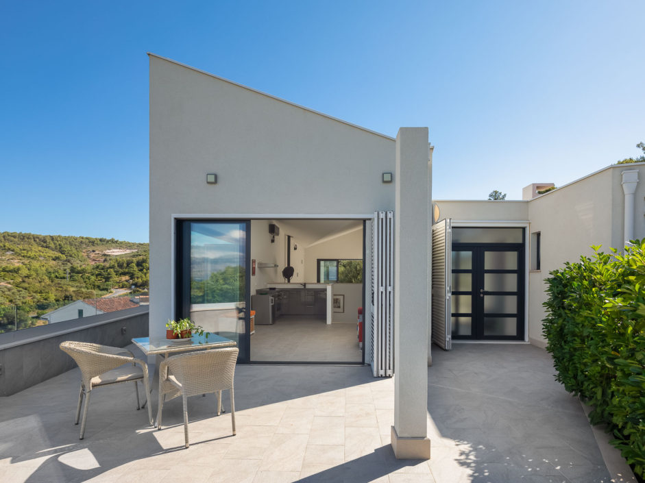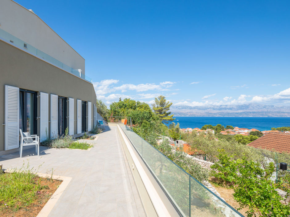 Ideally located high above the hill in the magical town of Sutivan, this home marries panoramic views and the serenity of life by the sea. The newly built gated villa boasts an open floor plan with living space opening to an outdoor oasis, including Pool, Shower, huge patio, dining area and outdoor kitchen. Inside a wall of glass opens to amazing views of the sea allowing the exterior to engulf the home creating the ultimate first impression. The home enjoys three additional bedrooms and two additional bathrooms. Additional features include a master retreat with walk in shower, panorama movable sliding doors, multiple viewing balconies, rooftop deck, one car garage, air conditioning, lushly landscaped grounds and only a six minute walk to the beach. This is considered the best of Adriatic coastal living.
