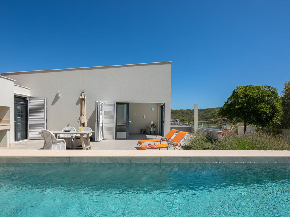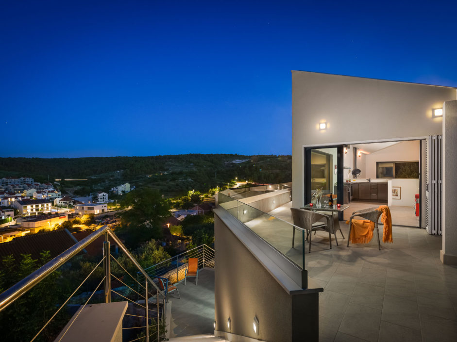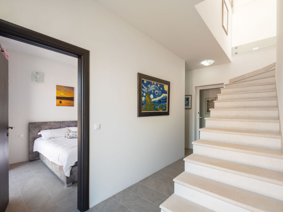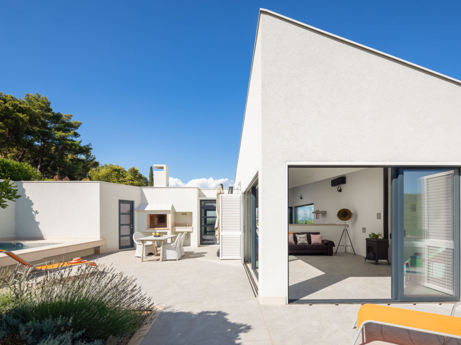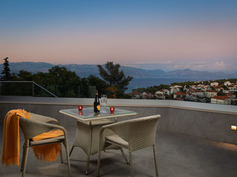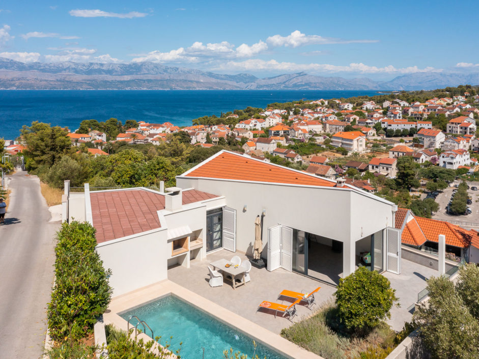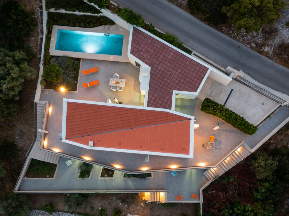 Ideally located high above the hill in the magical town of Sutivan, this home marries panoramic views and the serenity of life by the sea. The newly built gated villa boasts an open floor plan with living space opening to an outdoor oasis, including Pool, Shower, huge patio, dining area and outdoor kitchen. Inside a wall of glass opens to amazing views of the sea allowing the exterior to engulf the home creating the ultimate first impression. The home enjoys three additional bedrooms and two additional bathrooms. Additional features include a master retreat with walk in shower, panorama movable sliding doors, multiple viewing balconies, rooftop deck, one car garage, air conditioning, lushly landscaped grounds and only a six minute walk to the beach. This is considered the best of Adriatic coastal living.